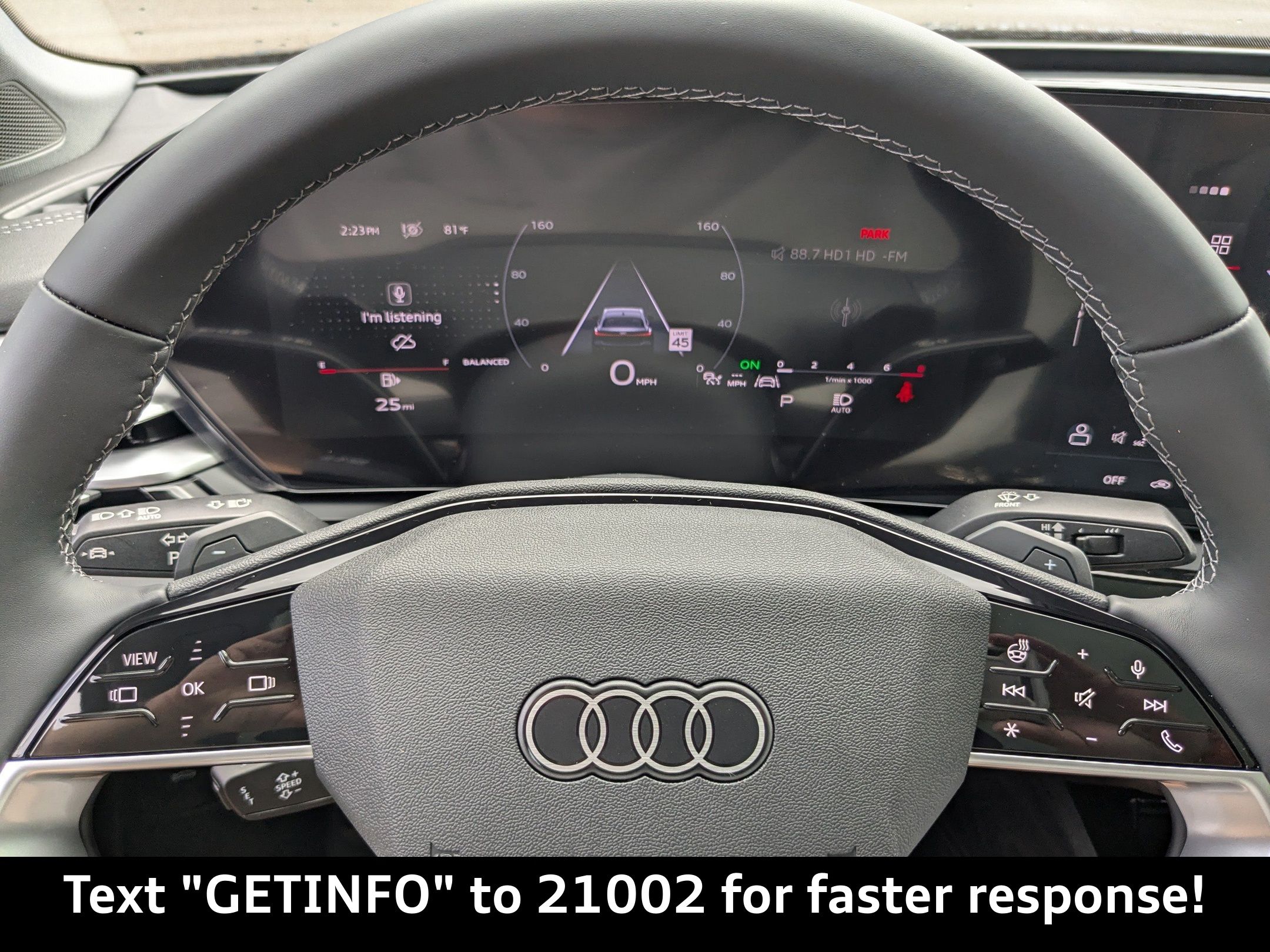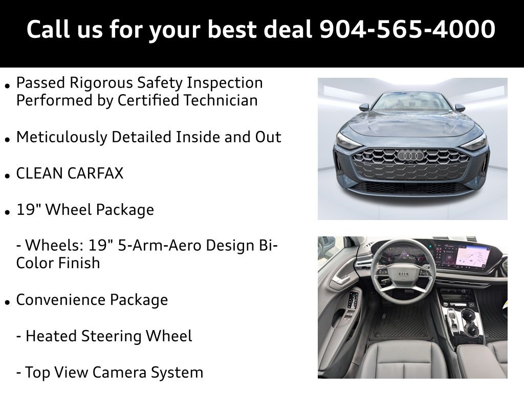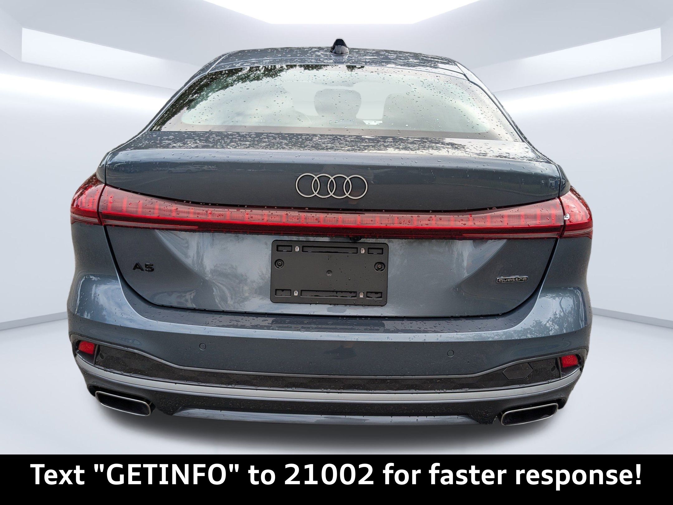 Horizon Blue Metallic 2025 Audi A5 Premium quattro quattro 7-Speed Automatic S tronic 2.0L 4-Cylinder TFSI Passed Rigorous Safety Inspection Performed by Certified Technician, Meticulously Detailed Inside and Out, CLEAN CARFAX, 19"" Wheel Package, Convenience Package, Heated Steering Wheel, Top View Camera System, Wheels: 19"" 5-Arm-Aero Design Bi-Color Finish, 10 Speakers, 21"" Alloy wheels, 4-Wheel Disc Brakes, ABS brakes, Air Conditioning, Anti-whiplash front head restraints, Auto High-beam Headlights, Auto-dimming door mirrors, Auto-dimming Rear-View mirror, Automatic temperature control, Brake assist, Bumpers: body-color, Compass, Delay-off headlights, Driver door bin, Driver vanity mirror, Dual front impact airbags, Dual front side impact airbags, Electronic Stability Control, Emergency communication system: Audi connect CARE, Exterior Parking Camera Rear, Four wheel independent suspension, Front anti-roll bar, Front Bucket Seats, Front Center Armrest, Front dual zone A/C, Front fog lights, Front reading lights, Garage door transmitter: HomeLink, Genuine wood dashboard insert, Genuine wood door panel insert, Heated door mirrors, Heated Front Bucket Seats, Heated front seats, Illuminated entry, Knee airbag, Leather Seating Surfaces, Leather steering wheel, Low tire pressure warning, Memory seat, Navigation system: MMI Navigation plus, Occupant sensing airbag, Outside temperature display, Overhead airbag, Overhead console, Panic alarm, Passenger door bin, Passenger vanity mirror, Power adjustable front head restraints, Power door mirrors, Power driver seat, Power Liftgate, Power passenger seat, Power steering, Power windows, Radio data system, Radio: Audi Sound System, Rain sensing wipers, Rear air conditioning, Rear anti-roll bar, Rear reading lights, Rear seat center armrest, Rear window defroster, Remote keyless entry, Security system, Speed control, Speed-sensing steering, Speed-Sensitive Wipers, Split folding rear seat, Steering wheel mounted audio controls, Tachometer, Telescoping steering wheel, Tilt steering wheel, Traction control, Trip computer, Turn signal indicator mirrors, Variably intermittent wipers, Wheels: 18"" 5-Arm-Twist Design, 19"" Wheel Package, Convenience Package, Heated Steering Wheel, Top View Camera System, Wheels: 19"" 5-Arm-Aero Design Bi-Color Finish.22/31 City/Highway MPG