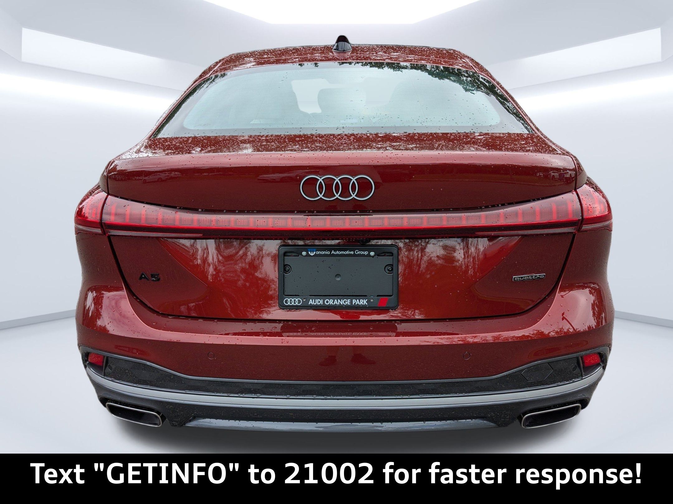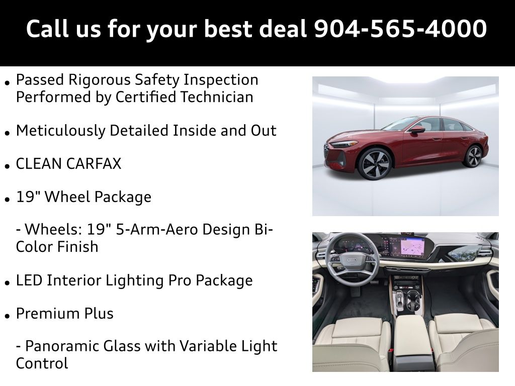 Grenadine Red Metallic 2025 Audi A5 Premium Plus quattro quattro 7-Speed Automatic S tronic 2.0L 4-Cylinder TFSI Passed Rigorous Safety Inspection Performed by Certified Technician, Meticulously Detailed Inside and Out, CLEAN CARFAX, 19"" Wheel Package, Adaptive Cruise Assist, Beige Warm Weather Package, Brown Applewood Natural Wood Inlays, Dynamic Interaction Light, Head-Up Display, LED Interior Lighting Pro Package, Manual Rear Side Window Sunshades, Park Assist Plus, Premium Plus, Top View Camera System, Wheels: 19"" 5-Arm-Aero Design Bi-Color Finish, 10 Speakers, 21"" Alloy wheels, 4-Wheel Disc Brakes, ABS brakes, Air Conditioning, Anti-whiplash front head restraints, Auto High-beam Headlights, Auto-dimming door mirrors, Auto-dimming Rear-View mirror, Automatic temperature control, Brake assist, Bumpers: body-color, Compass, Delay-off headlights, Driver door bin, Driver vanity mirror, Dual front impact airbags, Dual front side impact airbags, Electronic Stability Control, Emergency communication system: Audi connect CARE, Exterior Parking Camera Rear, Four wheel independent suspension, Front anti-roll bar, Front Bucket Seats, Front Center Armrest, Front dual zone A/C, Front fog lights, Front reading lights, Garage door transmitter: HomeLink, Genuine wood dashboard insert, Genuine wood door panel insert, Heated door mirrors, Heated Front Bucket Seats, Heated front seats, Illuminated entry, Knee airbag, Leather Seating Surfaces, Leather steering wheel, Low tire pressure warning, Memory seat, Navigation system: MMI Navigation plus, Occupant sensing airbag, Outside temperature display, Overhead airbag, Overhead console, Panic alarm, Passenger door bin, Passenger vanity mirror, Power adjustable front head restraints, Power door mirrors, Power driver seat, Power Liftgate, Power passenger seat, Power steering, Power windows, Radio data system, Radio: Audi Sound System, Rain sensing wipers, Rear air conditioning, Rear anti-roll bar, Rear reading lights, Rear seat center armrest, Rear window defroster, Remote keyless entry, Security system, Speed control, Speed-sensing steering, Speed-Sensitive Wipers, Split folding rear seat, Steering wheel mounted audio controls, Tachometer, Telescoping steering wheel, Tilt steering wheel, Traction control, Trip computer, Turn signal indicator mirrors, Variably intermittent wipers, Wheels: 18"" 5-Arm-Twist Design, 19"" Wheel Package, Adaptive Cruise Assist, Beige Warm Weather Package, Brown Applewood Natural Wood Inlays, Dynamic Interaction Light, Head-Up Display, LED Interior Lighting Pro Package, Manual Rear Side Window Sunshades, Park Assist Plus, Premium Plus, Top View Camera System, Wheels: 19"" 5-Arm-Aero Design Bi-Color Finish.22/31 City/Highway MPG