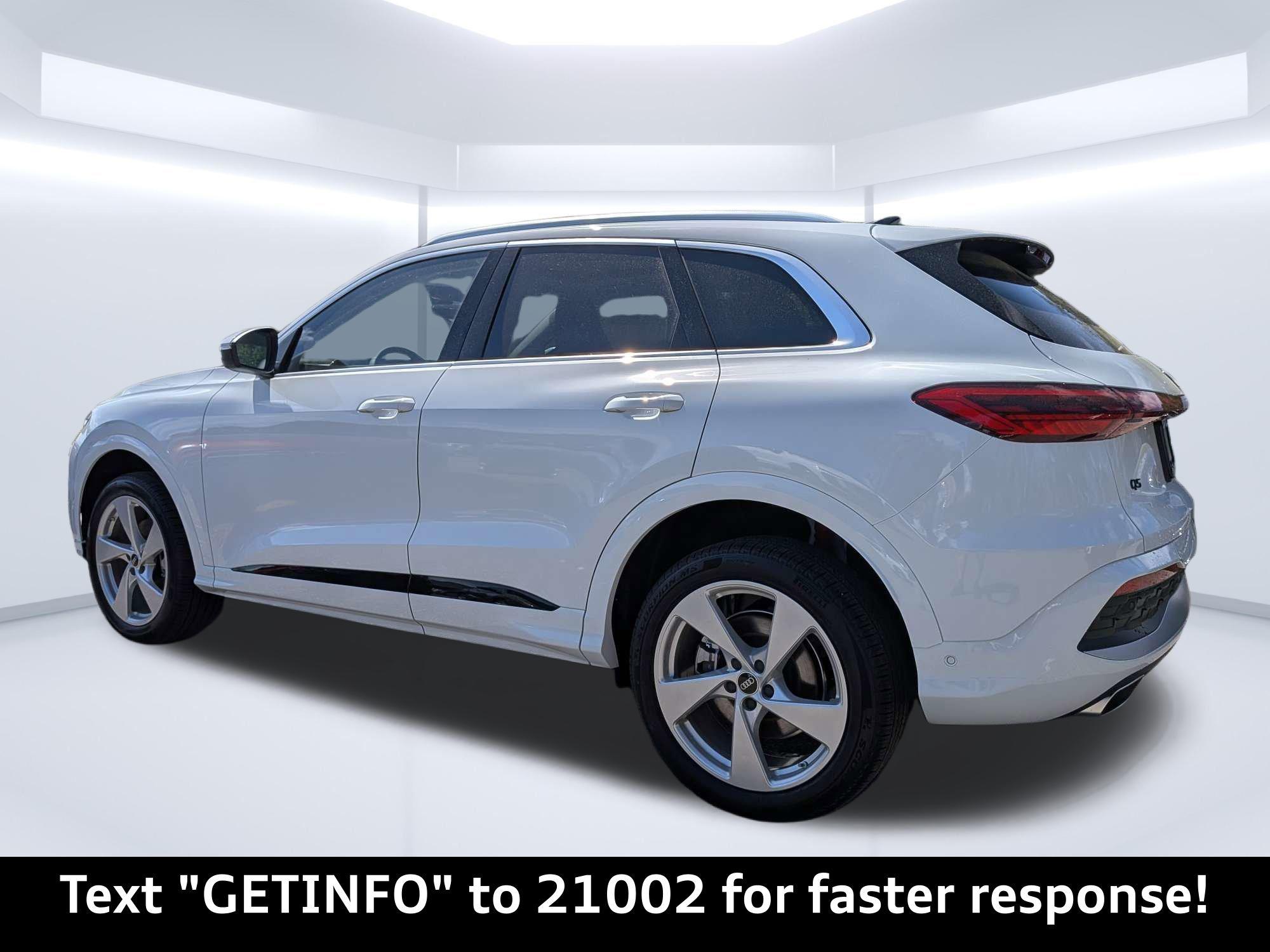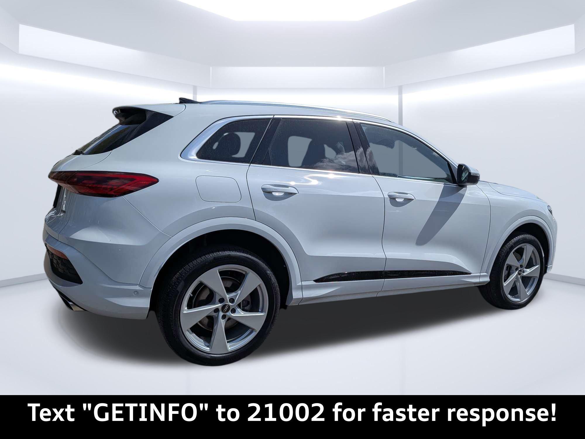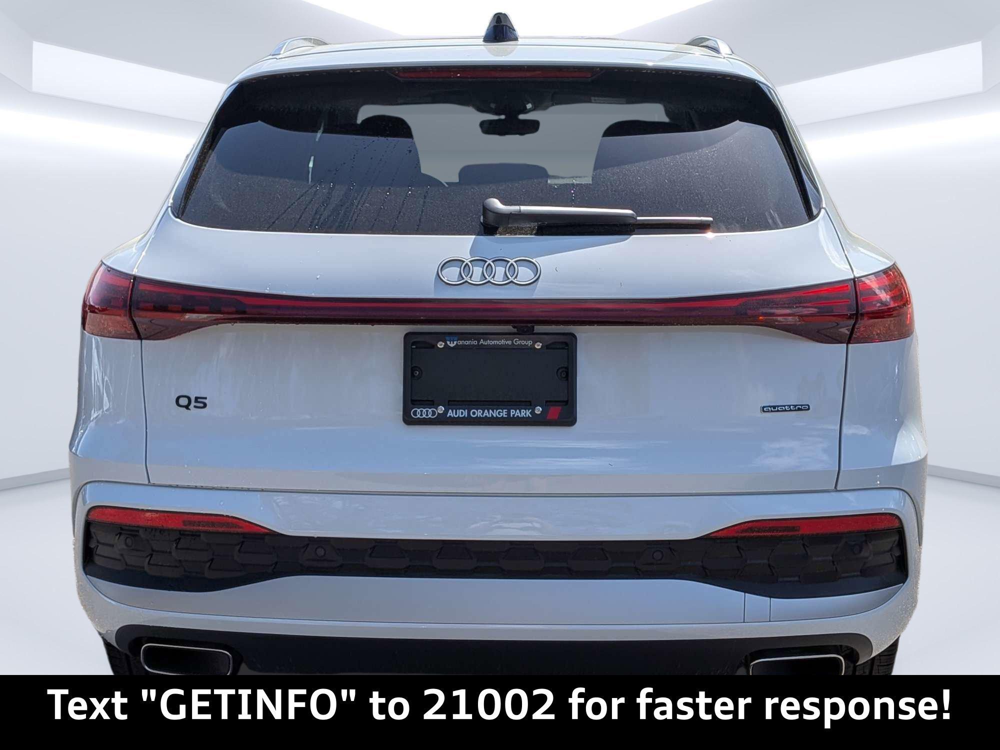 Glacier White 2025 Audi Q5 Premium Plus quattro quattro 7-Speed Automatic S tronic 2.0L 4-Cylinder TFSI Passed Rigorous Safety Inspection Performed by Certified Technician, Meticulously Detailed Inside and Out, CLEAN CARFAX, 10 Speakers, 21"" Alloy wheels, 4-Wheel Disc Brakes, ABS brakes, Air Conditioning, AM/FM radio: SiriusXM w/360L, Auto High-beam Headlights, Auto tilt-away steering wheel, Auto-dimming door mirrors, Auto-dimming Rear-View mirror, Automatic temperature control, Brake assist, Bumpers: body-color, Compass, Delay-off headlights, Driver door bin, Driver vanity mirror, Dual front impact airbags, Dual front side impact airbags, Electronic Stability Control, Emergency communication system: Audi connect CARE, Exterior Parking Camera Rear, Four wheel independent suspension, Front anti-roll bar, Front Bucket Seats, Front Center Armrest, Front dual zone A/C, Front fog lights, Front reading lights, Garage door transmitter: HomeLink, Genuine wood console insert, Genuine wood dashboard insert, Genuine wood door panel insert, Heated door mirrors, Heated Front Bucket Seats, Heated front seats, Illuminated entry, Leather Seating Surfaces, Leather steering wheel, Low tire pressure warning, Memory seat, Navigation system: Audi Navigation Plus, Occupant sensing airbag, Outside temperature display, Overhead airbag, Overhead console, Panic alarm, Passenger door bin, Passenger vanity mirror, Power door mirrors, Power driver seat, Power Liftgate, Power passenger seat, Power steering, Power windows, Radio data system, Radio: MMI Navigation Plus, Rain sensing wipers, Rear air conditioning, Rear anti-roll bar, Rear fog lights, Rear reading lights, Rear seat center armrest, Rear window defroster, Rear window wiper, Remote keyless entry, Roof rack, Security system, Speed control, Speed-sensing steering, Speed-Sensitive Wipers, Split folding rear seat, Spoiler, Steering wheel mounted audio controls, Tachometer, Telescoping steering wheel, Tilt steering wheel, Traction control, Trip computer, Turn signal indicator mirrors, Variably intermittent wipers, Wheels: 18"" 5-Arm-Twist Design.22/30 City/Highway MPG