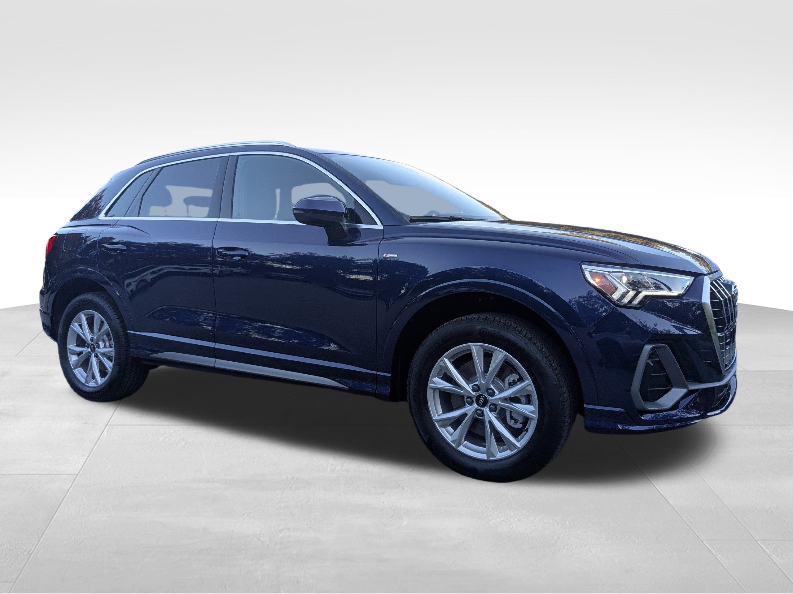 Navarra Blue Metallic 2025 Audi Q3 S line Premium S Line quattro quattro 8-Speed Automatic with Tiptronic 2.0L 4-Cylinder TFSI Passed Rigorous Safety Inspection Performed by Certified Technician, Meticulously Detailed Inside and Out, Audi Advanced Key, Auto-Dimming Power-Folding Exterior Mirrors, Auto-Dimming Rear-View Mirror, Convenience Package, Driver Seat Memory, Garage Door Opener (HomeLink), LED Interior Lighting Package, Wireless Phone Charging Pad, 10 Speakers, 21"" Alloy wheels, 4-Wheel Disc Brakes, ABS brakes, Air Conditioning, AM/FM radio, Audi smartphone interface (Apple CarPlay/Android Auto), Auto High-beam Headlights, Automatic temperature control, Brake assist, Bumpers: body-color, Delay-off headlights, Driver door bin, Driver vanity mirror, Dual front impact airbags, Dual front side impact airbags, Electronic Stability Control, Emergency communication system: Audi connect CARE, Exterior Parking Camera Rear, Four wheel independent suspension, Front anti-roll bar, Front Bucket Seats, Front Center Armrest, Front dual zone A/C, Front fog lights, Front reading lights, Fully automatic headlights, Heated door mirrors, Heated Front Bucket Seats, Heated front seats, Illuminated entry, Knee airbag, Leather Seating Surfaces, Leather Shift Knob, Leather steering wheel, Low tire pressure warning, Occupant sensing airbag, Outside temperature display, Overhead airbag, Overhead console, Panic alarm, Passenger door bin, Passenger vanity mirror, Power door mirrors, Power driver seat, Power Liftgate, Power moonroof: Panoramic, Power passenger seat, Power steering, Power windows, Radio data system, Radio: Audi Sound System, Rain sensing wipers, Rear air conditioning, Rear anti-roll bar, Rear reading lights, Rear seat center armrest, Rear window defroster, Rear window wiper, Remote keyless entry, Speed control, Speed-sensing steering, Split folding rear seat, Spoiler, Steering wheel mounted audio controls, Tachometer, Telescoping steering wheel, Tilt steering wheel, Traction control, Trip computer, Turn signal indicator mirrors, Variably intermittent wipers, Wheels: 18"" 5-V-Spoke-S Design, CLEAN CARFAX, Audi Advanced Key, Auto-Dimming Power-Folding Exterior Mirrors, Auto-Dimming Rear-View Mirror, Convenience Package, Driver Seat Memory, Garage Door Opener (HomeLink), LED Interior Lighting Package, Wireless Phone Charging Pad.20/28 City/Highway MPG