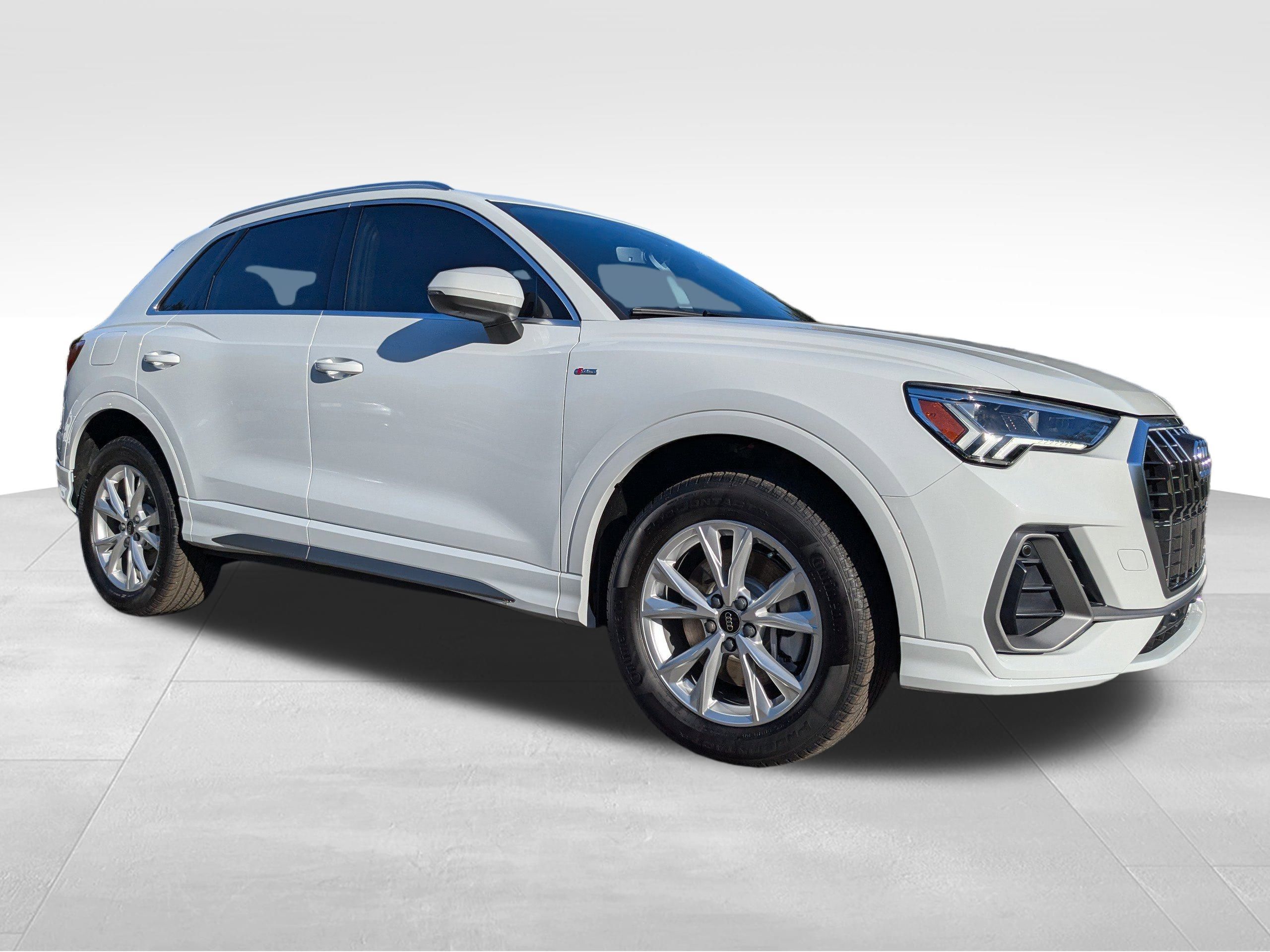 Glacier White Metallic 2025 Audi Q3 S line Premium Plus S Line quattro quattro 8-Speed Automatic with Tiptronic 2.0L 4-Cylinder TFSI Passed Rigorous Safety Inspection Performed by Certified Technician, Meticulously Detailed Inside and Out, Audi Advanced Key, Auto-Dimming Power-Folding Exterior Mirrors, Auto-Dimming Rear-View Mirror, Convenience Package, Driver Seat Memory, Garage Door Opener (HomeLink), LED Interior Lighting Package, LED Interior Lighting Plus Package, Premium Plus Package, Top View Camera System, Wireless Phone Charging Pad, 10 Speakers, 21"" Alloy wheels, 4-Wheel Disc Brakes, ABS brakes, Air Conditioning, AM/FM radio, Audi smartphone interface (Apple CarPlay/Android Auto), Auto High-beam Headlights, Automatic temperature control, Brake assist, Bumpers: body-color, Delay-off headlights, Driver door bin, Driver vanity mirror, Dual front impact airbags, Dual front side impact airbags, Electronic Stability Control, Emergency communication system: Audi connect CARE, Exterior Parking Camera Rear, Four wheel independent suspension, Front anti-roll bar, Front Bucket Seats, Front Center Armrest, Front dual zone A/C, Front fog lights, Front reading lights, Fully automatic headlights, Heated door mirrors, Heated Front Bucket Seats, Heated front seats, Illuminated entry, Knee airbag, Leather Seating Surfaces, Leather Shift Knob, Leather steering wheel, Low tire pressure warning, Occupant sensing airbag, Outside temperature display, Overhead airbag, Overhead console, Panic alarm, Passenger door bin, Passenger vanity mirror, Power door mirrors, Power driver seat, Power Liftgate, Power moonroof: Panoramic, Power passenger seat, Power steering, Power windows, Radio data system, Radio: Audi Sound System, Rain sensing wipers, Rear air conditioning, Rear anti-roll bar, Rear reading lights, Rear seat center armrest, Rear window defroster, Rear window wiper, Remote keyless entry, Speed control, Speed-sensing steering, Split folding rear seat, Spoiler, Steering wheel mounted audio controls, Tachometer, Telescoping steering wheel, Tilt steering wheel, Traction control, Trip computer, Turn signal indicator mirrors, Variably intermittent wipers, Wheels: 18"" 5-V-Spoke-S Design, CLEAN CARFAX, Audi Advanced Key, Auto-Dimming Power-Folding Exterior Mirrors, Auto-Dimming Rear-View Mirror, Convenience Package, Driver Seat Memory, Garage Door Opener (HomeLink), LED Interior Lighting Package, LED Interior Lighting Plus Package, Premium Plus Package, Top View Camera System, Wireless Phone Charging Pad.20/28 City/Highway MPG
