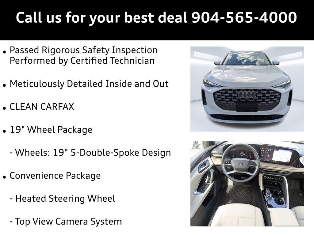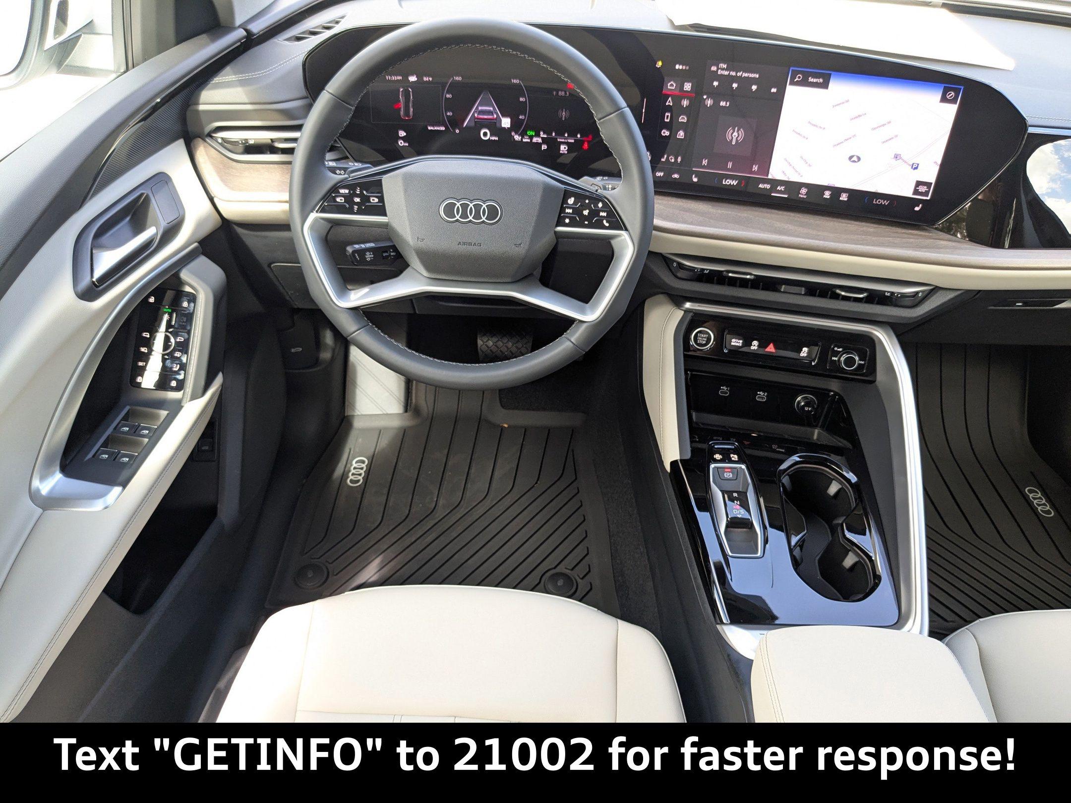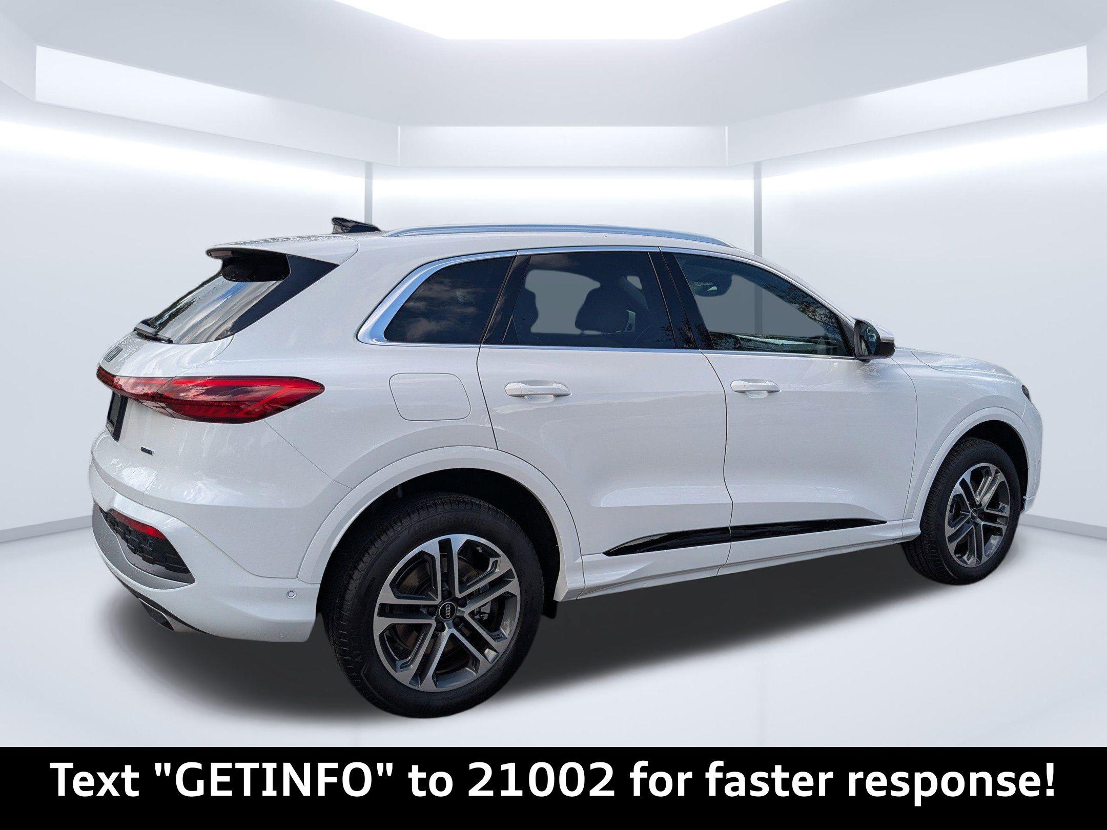 Arkona White 2025 Audi Q5 Premium quattro quattro 7-Speed Automatic S tronic 2.0L 4-Cylinder TFSI Passed Rigorous Safety Inspection Performed by Certified Technician, Meticulously Detailed Inside and Out, CLEAN CARFAX, 10 Speakers, 21"" Alloy wheels, 4-Wheel Disc Brakes, ABS brakes, Air Conditioning, AM/FM radio: SiriusXM w/360L, Auto High-beam Headlights, Auto tilt-away steering wheel, Auto-dimming door mirrors, Auto-dimming Rear-View mirror, Automatic temperature control, Brake assist, Bumpers: body-color, Compass, Delay-off headlights, Driver door bin, Driver vanity mirror, Dual front impact airbags, Dual front side impact airbags, Electronic Stability Control, Emergency communication system: Audi connect CARE, Exterior Parking Camera Rear, Four wheel independent suspension, Front anti-roll bar, Front Bucket Seats, Front Center Armrest, Front dual zone A/C, Front fog lights, Front reading lights, Garage door transmitter: HomeLink, Genuine wood console insert, Genuine wood dashboard insert, Genuine wood door panel insert, Heated door mirrors, Heated Front Bucket Seats, Heated front seats, Illuminated entry, Leather Seating Surfaces, Leather steering wheel, Low tire pressure warning, Memory seat, Navigation system: Audi Navigation Plus, Occupant sensing airbag, Outside temperature display, Overhead airbag, Overhead console, Panic alarm, Passenger door bin, Passenger vanity mirror, Power door mirrors, Power driver seat, Power Liftgate, Power passenger seat, Power steering, Power windows, Radio data system, Radio: MMI Navigation Plus, Rain sensing wipers, Rear air conditioning, Rear anti-roll bar, Rear fog lights, Rear reading lights, Rear seat center armrest, Rear window defroster, Rear window wiper, Remote keyless entry, Roof rack, Security system, Speed control, Speed-sensing steering, Speed-Sensitive Wipers, Split folding rear seat, Spoiler, Steering wheel mounted audio controls, Tachometer, Telescoping steering wheel, Tilt steering wheel, Traction control, Trip computer, Turn signal indicator mirrors, Variably intermittent wipers, Wheels: 18"" 5-Arm-Twist Design.22/30 City/Highway MPG