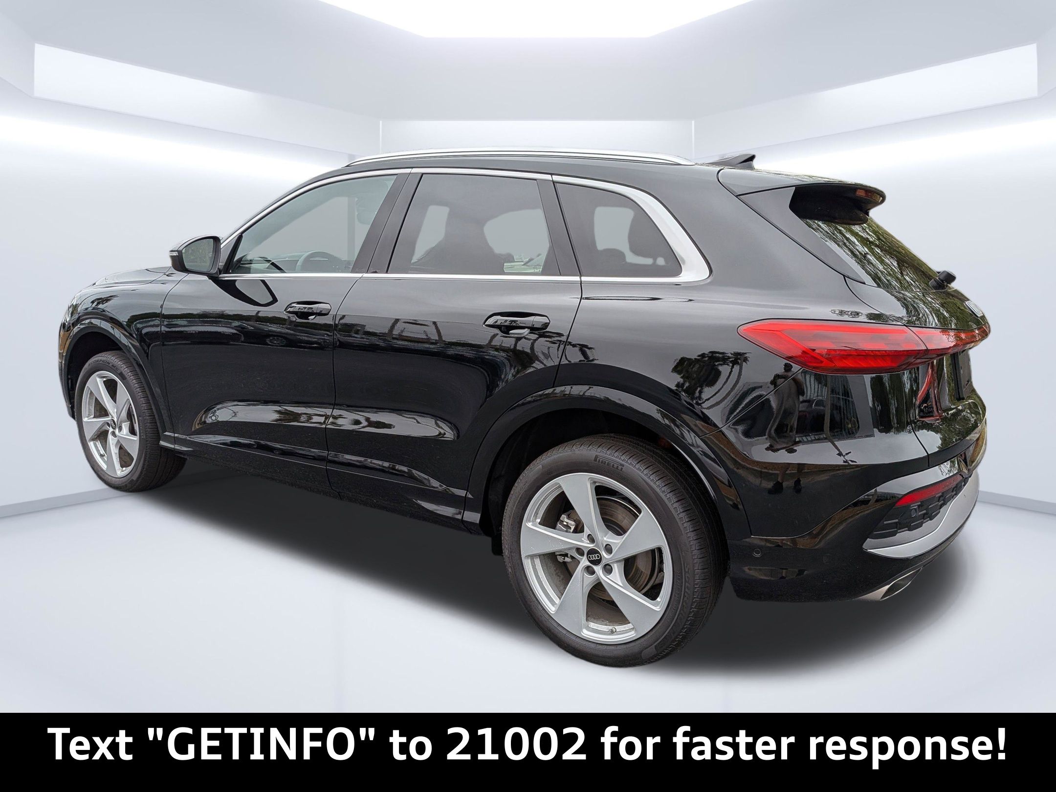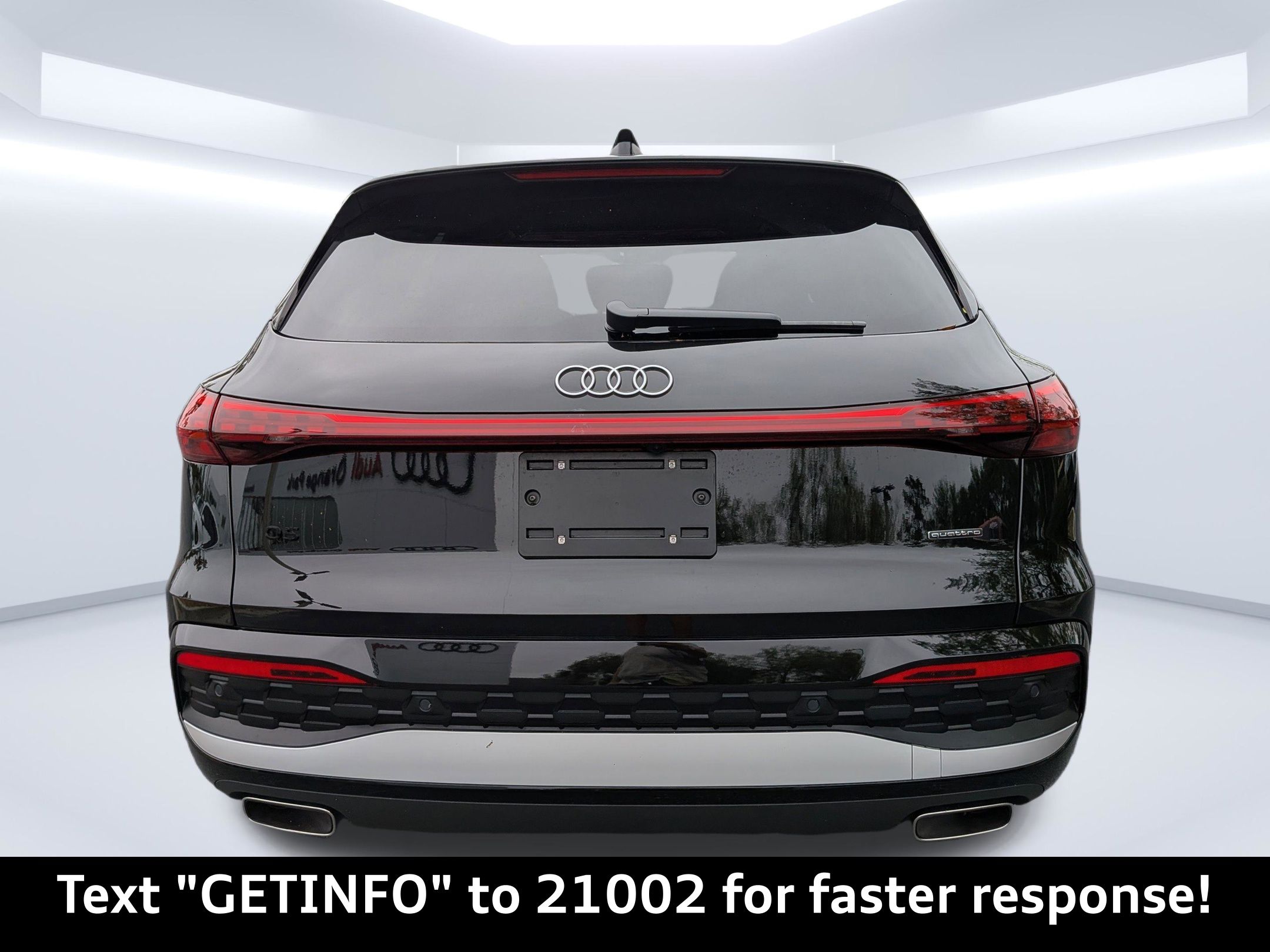 Black 2025 Audi Q5 Premium Plus quattro quattro 7-Speed Automatic S tronic 2.0L 4-Cylinder TFSI Passed Rigorous Safety Inspection Performed by Certified Technician, Meticulously Detailed Inside and Out, CLEAN CARFAX, 10 Speakers, 21"" Alloy wheels, 4-Wheel Disc Brakes, ABS brakes, Air Conditioning, AM/FM radio: SiriusXM w/360L, Auto High-beam Headlights, Auto tilt-away steering wheel, Auto-dimming door mirrors, Auto-dimming Rear-View mirror, Automatic temperature control, Brake assist, Bumpers: body-color, Compass, Delay-off headlights, Driver door bin, Driver vanity mirror, Dual front impact airbags, Dual front side impact airbags, Electronic Stability Control, Emergency communication system: Audi connect CARE, Exterior Parking Camera Rear, Four wheel independent suspension, Front anti-roll bar, Front Bucket Seats, Front Center Armrest, Front dual zone A/C, Front fog lights, Front reading lights, Garage door transmitter: HomeLink, Genuine wood console insert, Genuine wood dashboard insert, Genuine wood door panel insert, Heated door mirrors, Heated Front Bucket Seats, Heated front seats, Illuminated entry, Leather Seating Surfaces, Leather steering wheel, Low tire pressure warning, Memory seat, Navigation system: Audi Navigation Plus, Occupant sensing airbag, Outside temperature display, Overhead airbag, Overhead console, Panic alarm, Passenger door bin, Passenger vanity mirror, Power door mirrors, Power driver seat, Power Liftgate, Power passenger seat, Power steering, Power windows, Radio data system, Radio: MMI Navigation Plus, Rain sensing wipers, Rear air conditioning, Rear anti-roll bar, Rear fog lights, Rear reading lights, Rear seat center armrest, Rear window defroster, Rear window wiper, Remote keyless entry, Roof rack, Security system, Speed control, Speed-sensing steering, Speed-Sensitive Wipers, Split folding rear seat, Spoiler, Steering wheel mounted audio controls, Tachometer, Telescoping steering wheel, Tilt steering wheel, Traction control, Trip computer, Turn signal indicator mirrors, Variably intermittent wipers, Wheels: 18"" 5-Arm-Twist Design.22/30 City/Highway MPG