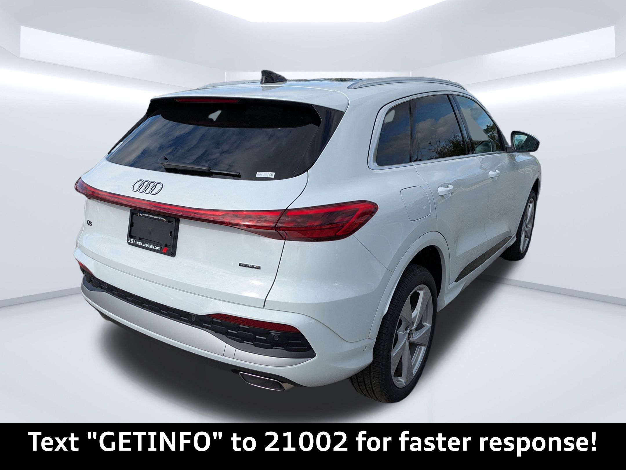 Glacier White Metallic 2025 Audi Q5 Premium Plus quattro quattro 7-Speed Automatic S tronic 2.0L 4-Cylinder TFSI Passed Rigorous Safety Inspection Performed by Certified Technician, Meticulously Detailed Inside and Out, CLEAN CARFAX, 10 Speakers, 21"" Alloy wheels, 4-Wheel Disc Brakes, ABS brakes, Air Conditioning, AM/FM radio: SiriusXM w/360L, Auto High-beam Headlights, Auto tilt-away steering wheel, Auto-dimming door mirrors, Auto-dimming Rear-View mirror, Automatic temperature control, Brake assist, Bumpers: body-color, Compass, Delay-off headlights, Driver door bin, Driver vanity mirror, Dual front impact airbags, Dual front side impact airbags, Electronic Stability Control, Emergency communication system: Audi connect CARE, Exterior Parking Camera Rear, Four wheel independent suspension, Front anti-roll bar, Front Bucket Seats, Front Center Armrest, Front dual zone A/C, Front fog lights, Front reading lights, Garage door transmitter: HomeLink, Genuine wood console insert, Genuine wood dashboard insert, Genuine wood door panel insert, Heated door mirrors, Heated Front Bucket Seats, Heated front seats, Illuminated entry, Leather Seating Surfaces, Leather steering wheel, Low tire pressure warning, Memory seat, Navigation system: Audi Navigation Plus, Occupant sensing airbag, Outside temperature display, Overhead airbag, Overhead console, Panic alarm, Passenger door bin, Passenger vanity mirror, Power door mirrors, Power driver seat, Power Liftgate, Power passenger seat, Power steering, Power windows, Radio data system, Radio: MMI Navigation Plus, Rain sensing wipers, Rear air conditioning, Rear anti-roll bar, Rear fog lights, Rear reading lights, Rear seat center armrest, Rear window defroster, Rear window wiper, Remote keyless entry, Roof rack, Security system, Speed control, Speed-sensing steering, Speed-Sensitive Wipers, Split folding rear seat, Spoiler, Steering wheel mounted audio controls, Tachometer, Telescoping steering wheel, Tilt steering wheel, Traction control, Trip computer, Turn signal indicator mirrors, Variably intermittent wipers, Wheels: 18"" 5-Arm-Twist Design.22/30 City/Highway MPG