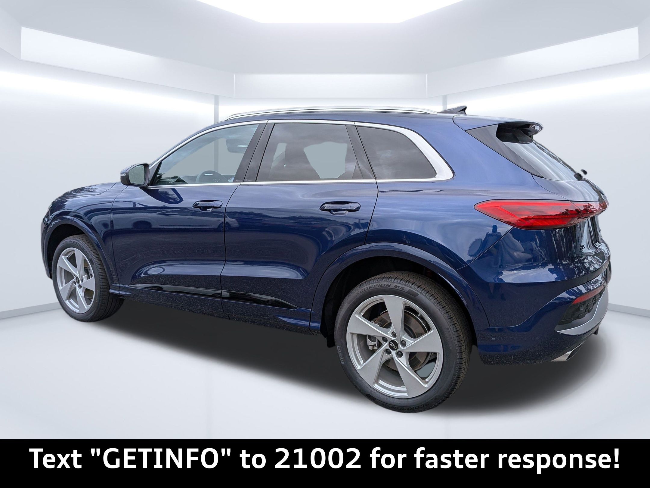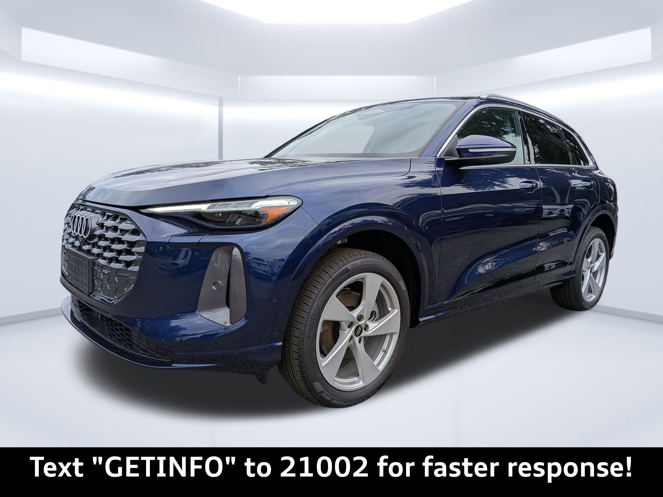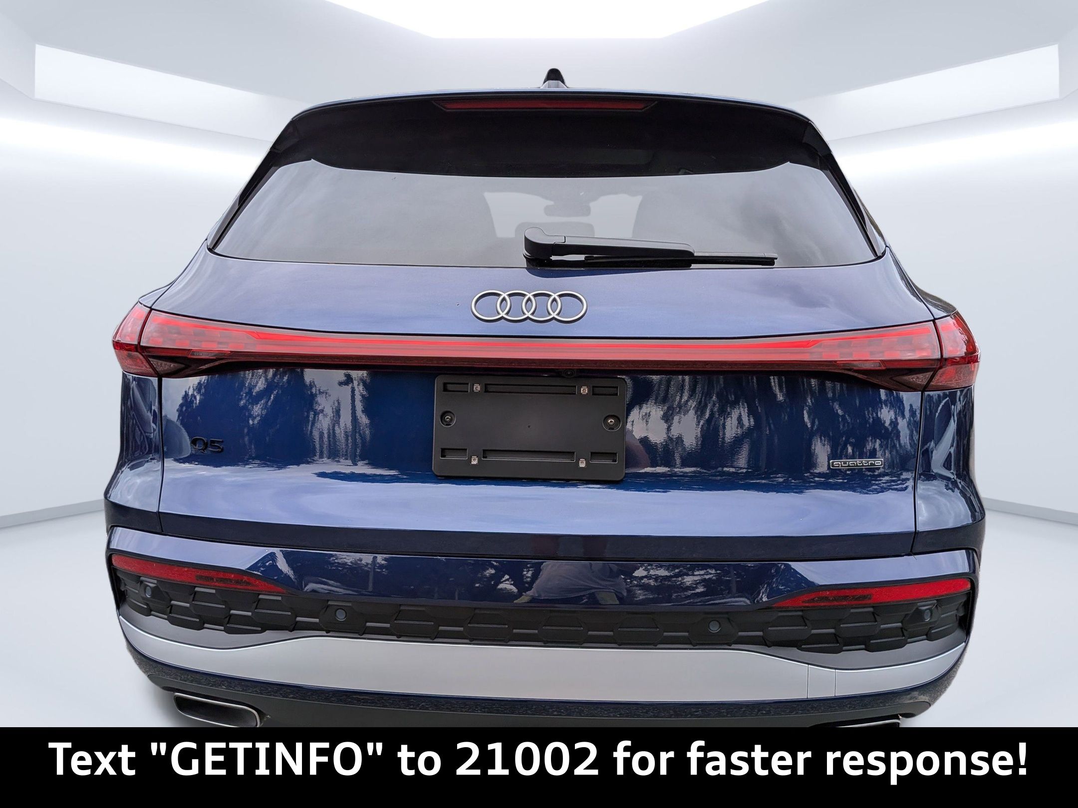 Navarra Blue Metallic 2025 Audi Q5 Premium Plus quattro quattro 7-Speed Automatic S tronic 2.0L 4-Cylinder TFSI Passed Rigorous Safety Inspection Performed by Certified Technician, Meticulously Detailed Inside and Out, CLEAN CARFAX, 10 Speakers, 21"" Alloy wheels, 4-Wheel Disc Brakes, ABS brakes, Air Conditioning, AM/FM radio: SiriusXM w/360L, Auto High-beam Headlights, Auto tilt-away steering wheel, Auto-dimming door mirrors, Auto-dimming Rear-View mirror, Automatic temperature control, Brake assist, Bumpers: body-color, Compass, Delay-off headlights, Driver door bin, Driver vanity mirror, Dual front impact airbags, Dual front side impact airbags, Electronic Stability Control, Emergency communication system: Audi connect CARE, Exterior Parking Camera Rear, Four wheel independent suspension, Front anti-roll bar, Front Bucket Seats, Front Center Armrest, Front dual zone A/C, Front fog lights, Front reading lights, Garage door transmitter: HomeLink, Genuine wood console insert, Genuine wood dashboard insert, Genuine wood door panel insert, Heated door mirrors, Heated Front Bucket Seats, Heated front seats, Illuminated entry, Leather Seating Surfaces, Leather steering wheel, Low tire pressure warning, Memory seat, Navigation system: Audi Navigation Plus, Occupant sensing airbag, Outside temperature display, Overhead airbag, Overhead console, Panic alarm, Passenger door bin, Passenger vanity mirror, Power door mirrors, Power driver seat, Power Liftgate, Power passenger seat, Power steering, Power windows, Radio data system, Radio: MMI Navigation Plus, Rain sensing wipers, Rear air conditioning, Rear anti-roll bar, Rear fog lights, Rear reading lights, Rear seat center armrest, Rear window defroster, Rear window wiper, Remote keyless entry, Roof rack, Security system, Speed control, Speed-sensing steering, Speed-Sensitive Wipers, Split folding rear seat, Spoiler, Steering wheel mounted audio controls, Tachometer, Telescoping steering wheel, Tilt steering wheel, Traction control, Trip computer, Turn signal indicator mirrors, Variably intermittent wipers, Wheels: 18"" 5-Arm-Twist Design.22/30 City/Highway MPG