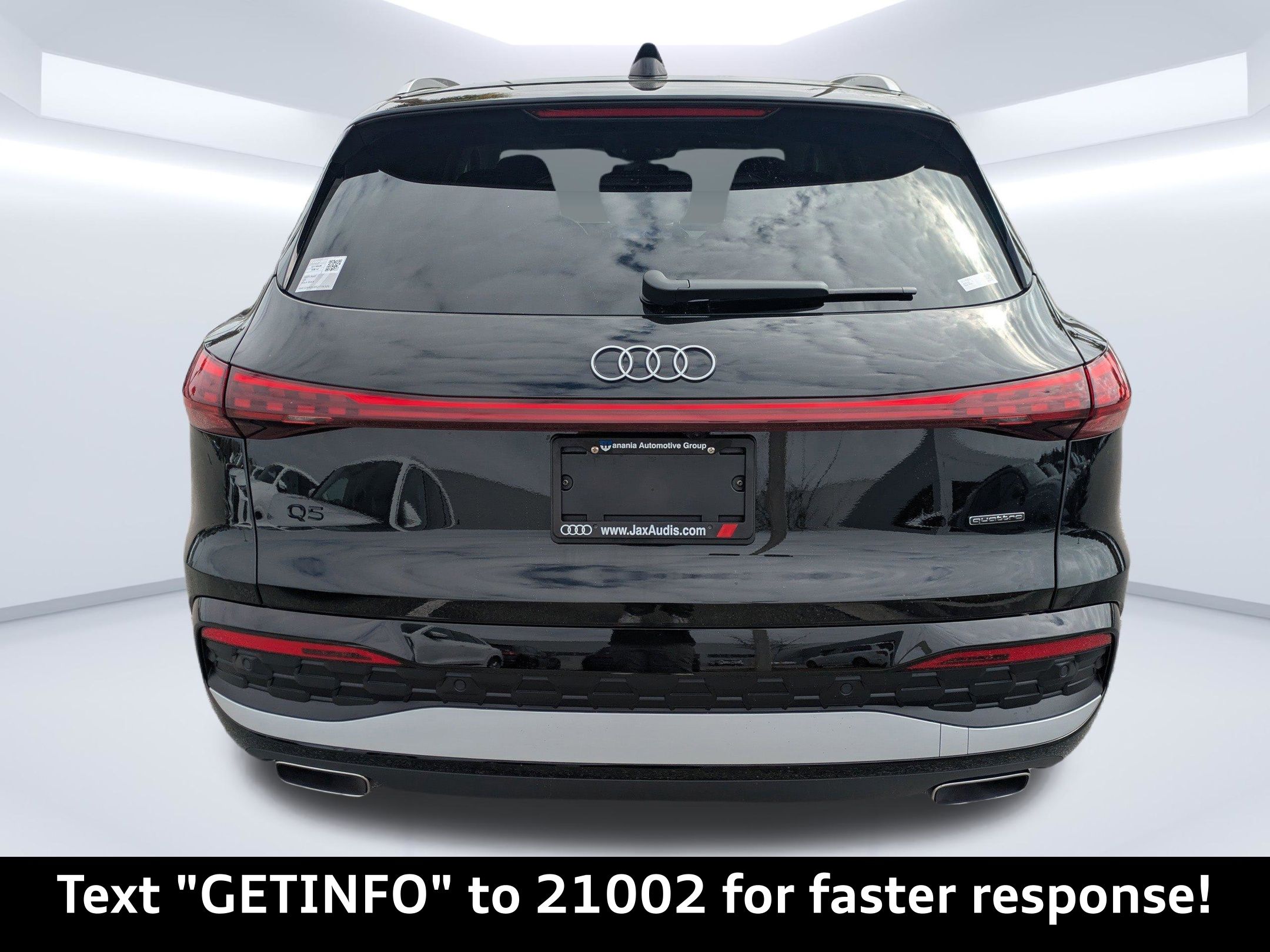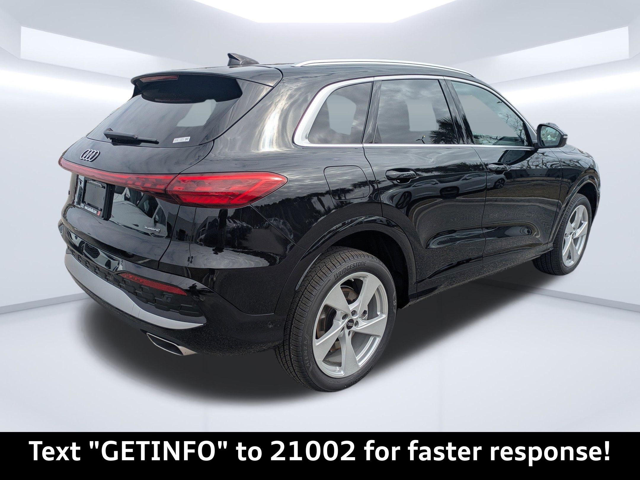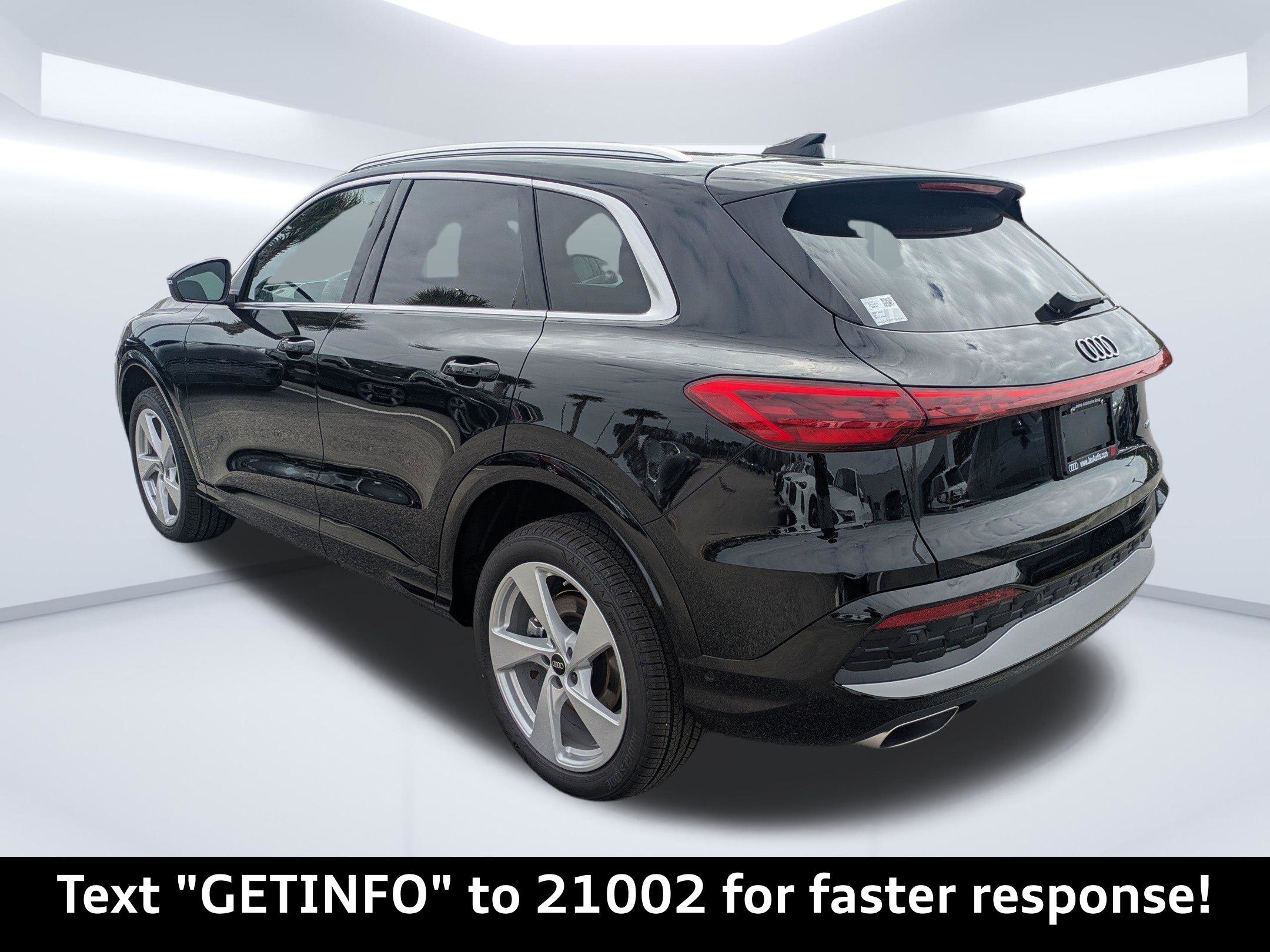 Mythos Black Metallic 2025 Audi Q5 Premium Plus quattro quattro 7-Speed Automatic S tronic 2.0L 4-Cylinder TFSI Passed Rigorous Safety Inspection Performed by Certified Technician, Meticulously Detailed Inside and Out, CLEAN CARFAX, 10 Speakers, 21"" Alloy wheels, 4-Wheel Disc Brakes, ABS brakes, Air Conditioning, AM/FM radio: SiriusXM w/360L, Auto High-beam Headlights, Auto tilt-away steering wheel, Auto-dimming door mirrors, Auto-dimming Rear-View mirror, Automatic temperature control, Brake assist, Bumpers: body-color, Compass, Delay-off headlights, Driver door bin, Driver vanity mirror, Dual front impact airbags, Dual front side impact airbags, Electronic Stability Control, Emergency communication system: Audi connect CARE, Exterior Parking Camera Rear, Four wheel independent suspension, Front anti-roll bar, Front Bucket Seats, Front Center Armrest, Front dual zone A/C, Front fog lights, Front reading lights, Garage door transmitter: HomeLink, Genuine wood console insert, Genuine wood dashboard insert, Genuine wood door panel insert, Heated door mirrors, Heated Front Bucket Seats, Heated front seats, Illuminated entry, Leather Seating Surfaces, Leather steering wheel, Low tire pressure warning, Memory seat, Navigation system: Audi Navigation Plus, Occupant sensing airbag, Outside temperature display, Overhead airbag, Overhead console, Panic alarm, Passenger door bin, Passenger vanity mirror, Power door mirrors, Power driver seat, Power Liftgate, Power passenger seat, Power steering, Power windows, Radio data system, Radio: MMI Navigation Plus, Rain sensing wipers, Rear air conditioning, Rear anti-roll bar, Rear fog lights, Rear reading lights, Rear seat center armrest, Rear window defroster, Rear window wiper, Remote keyless entry, Roof rack, Security system, Speed control, Speed-sensing steering, Speed-Sensitive Wipers, Split folding rear seat, Spoiler, Steering wheel mounted audio controls, Tachometer, Telescoping steering wheel, Tilt steering wheel, Traction control, Trip computer, Turn signal indicator mirrors, Variably intermittent wipers, Wheels: 18"" 5-Arm-Twist Design.22/30 City/Highway MPG