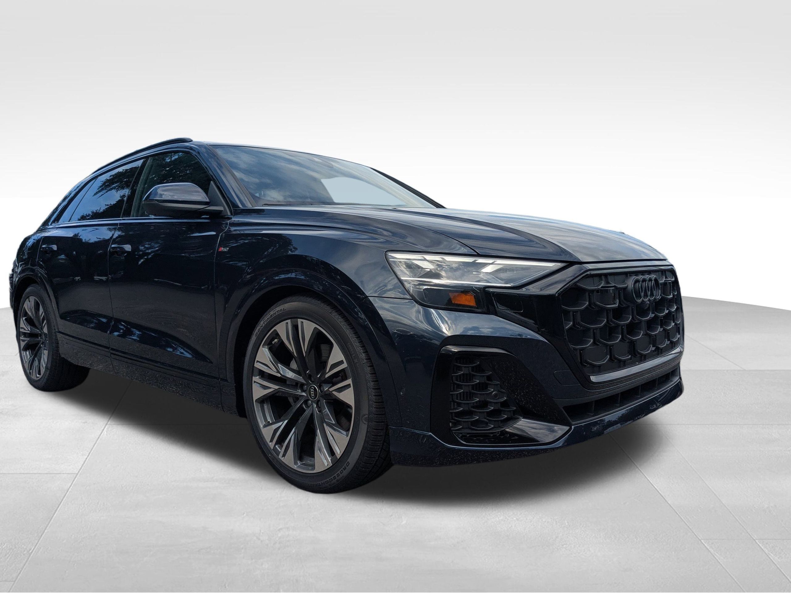 Blue Metallic 2025 Audi Q8 Premium Plus quattro quattro 8-Speed Automatic with Tiptronic 3.0L V6 Turbocharged DOHC 24V LEV3-ULEV70 335hp Passed Rigorous Safety Inspection Performed by Certified Technician, Meticulously Detailed Inside and Out, 10 Speakers, 21"" Alloy wheels, 4-Wheel Disc Brakes, 4-Zone Automatic Climate Control, 7-Pin Adapter, ABS brakes, Adaptive suspension, Air Conditioning, AM/FM radio: SiriusXM w/360L, Anthracite Gray Audi Rings, Audi Guard Protection Kit, Audi Guard Wheel Lock Kit, Auto High-beam Headlights, Auto-dimming door mirrors, Auto-dimming Rear-View mirror, Automatic temperature control, Bang & Olufsen 3D Premium Sound System, Black Exterior Trim, Black Optic Package, Brake assist, Bumpers: body-color, Comfort Adaptive Air Suspension, Compass, Control Buttons in Gloss Black with Haptic Feedback, Convenience Package, Dark Chrome Exhaust Tips, Delay-off headlights, Driver door bin, Driver vanity mirror, Dual front impact airbags, Dual front side impact airbags, Dual-Pane Acoustic Glass For Side Windows, Electronic Stability Control, Emergency communication system: Audi connect CARE, Executive Plus Package, Exterior Parking Camera Rear, Four wheel independent suspension, Front and Rear Doors Audi Beam-Rings, Front anti-roll bar, Front Bucket Seats, Front Center Armrest, Front dual zone A/C, Front fog lights, Front reading lights, Front Seats with Ventilation, Fully automatic headlights, Garage door transmitter: HomeLink, Genuine wood door panel insert, Headlight cleaning, Heated door mirrors, Heated Front Bucket Seats, Heated front seats, Heated Rear Seats, Heated Steering Wheel, Illuminated Door Sills, Illuminated entry, Leather Seating Surfaces, Leather Shift Knob, Leather steering wheel, LED Interior Lighting Plus Package, Low tire pressure warning, Memory seat, Navigation system: Audi MMI Navigation with Touch Response, Occupant sensing airbag, Outside temperature display, Overhead airbag, Overhead console, Panic alarm, Passenger door bin, Passenger vanity mirror, Power door mirrors, Power driver seat, Power Liftgate, Power moonroof: Panoramic, Power passenger seat, Power Rear Side Windows, Power Soft-Closing Doors, Power steering, Power windows, Premium Plus Package, Radio data system, Radio: Audi MMI Navigation Plus with MMI Touch Response, Rain sensing wipers, Rear air conditioning, Rear anti-roll bar, Rear fog lights, Rear reading lights, Rear seat center armrest, Rear side impact airbag, Rear window defroster, Rear window wiper, Remote keyless entry, S Line Exterior, S Line Illuminated Door Sills, S Line Style Package, Security system, Speed control, Speed-sensing steering, Split folding rear seat, Spoiler, Steering wheel memory, Steering wheel mounted audio controls, Tachometer, Telescoping steering wheel, Tilt steering wheel, Top View Camera System with Virtual 360 View, Traction control, Trailer Hitch, Trip computer, Turn signal indicator mirrors, Variably intermittent wipers, Wheels: 21"" 5-W-Spoke-Design Bicolor Finish, Wheels: 22"" 5-Double-Arm Design Bicolor Finish, Wireless Phone Charging Pad, Wireless Phone Charging Pad Delete, CLEAN CARFAX.