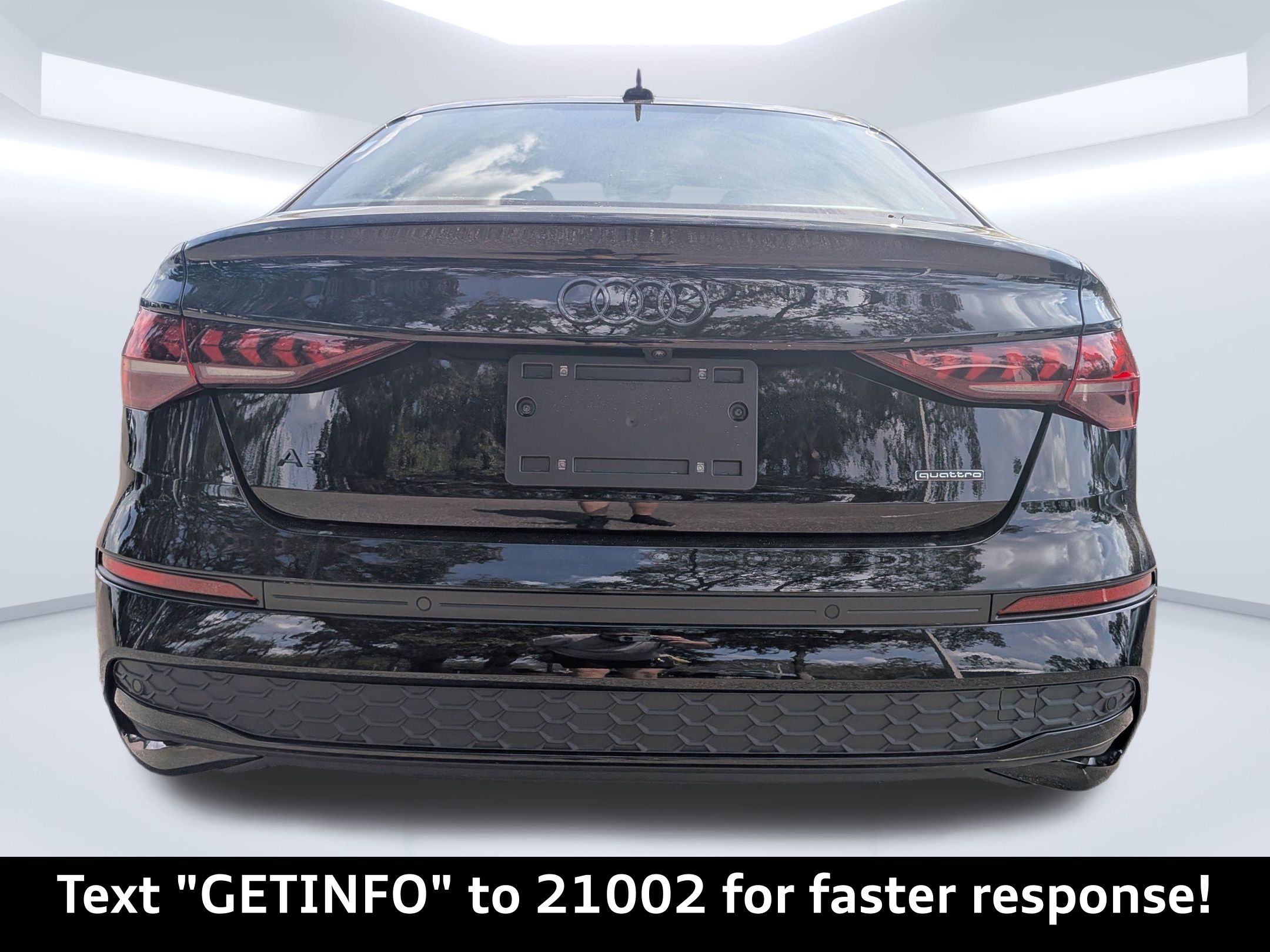 Black 2026 Audi A3 Premium Plus quattro quattro 7-Speed Automatic S tronic 2.0L 4-Cylinder TFSI Passed Rigorous Safety Inspection Performed by Certified Technician, Meticulously Detailed Inside and Out, CLEAN CARFAX, 10 Speakers, 190 Watt 10 Speaker Audi Sound System, 21"" Alloy wheels, 4-Wheel Disc Brakes, ABS brakes, Air Conditioning, AM/FM radio, Audi Connect CARE, Audi Connect NAV and PLUS, Auto High-beam Headlights, Automatic temperature control, Brake assist, Bumpers: body-color, Delay-off headlights, Driver door bin, Driver vanity mirror, Dual front impact airbags, Dual front side impact airbags, Electronic Stability Control, Emergency communication system: Audi connect CARE, Exterior Parking Camera Rear, Four wheel independent suspension, Front anti-roll bar, Front Bucket Seats, Front Center Armrest, Front dual zone A/C, Front reading lights, Fully automatic headlights, Genuine wood dashboard insert, Heated door mirrors, Heated Front Bucket Seats, Heated front seats, Illuminated entry, Knee airbag, Leather Seating Surfaces, Leather steering wheel, Low tire pressure warning, Navigation system: Audi MMI Navigation with Touch Response, Occupant sensing airbag, Outside temperature display, Overhead airbag, Overhead console, Panic alarm, Passenger door bin, Passenger vanity mirror, Power door mirrors, Power driver seat, Power moonroof, Power passenger seat, Power steering, Power windows, Radio data system, Radio: MMI Touch Display with 10.1"" Touchscreen, Rain sensing wipers, Rear air conditioning, Rear anti-roll bar, Rear fog lights, Rear reading lights, Rear seat center armrest, Rear side impact airbag, Rear window defroster, Remote keyless entry, Security system, Speed control, Speed-sensing steering, Speed-Sensitive Wipers, Split folding rear seat, Steering wheel mounted audio controls, Tachometer, Telescoping steering wheel, Tilt steering wheel, Traction control, Trip computer, Turn signal indicator mirrors, Variably intermittent wipers, Wheels: 17"" 5-V-Spoke Design.24/34 City/Highway MPG