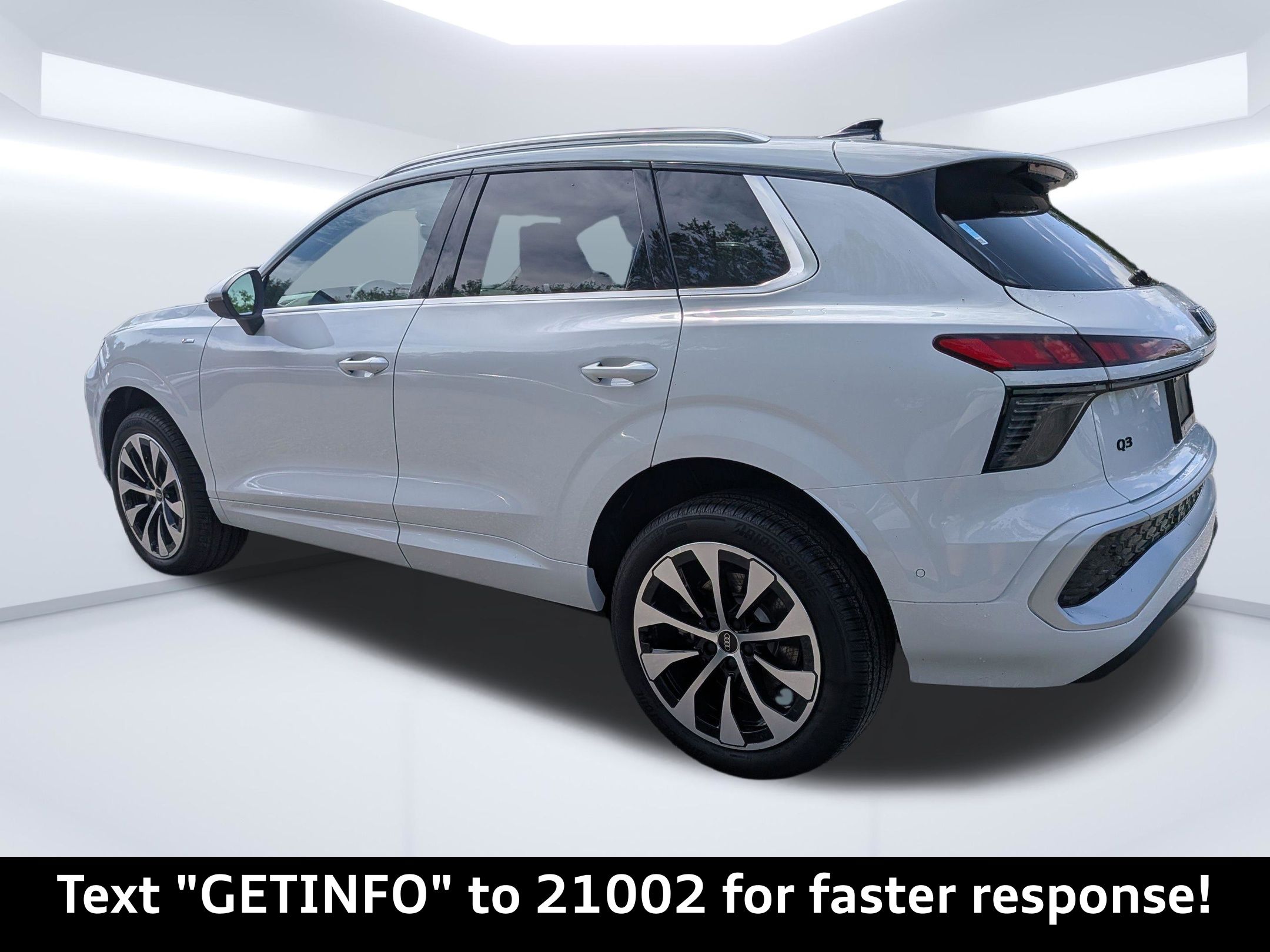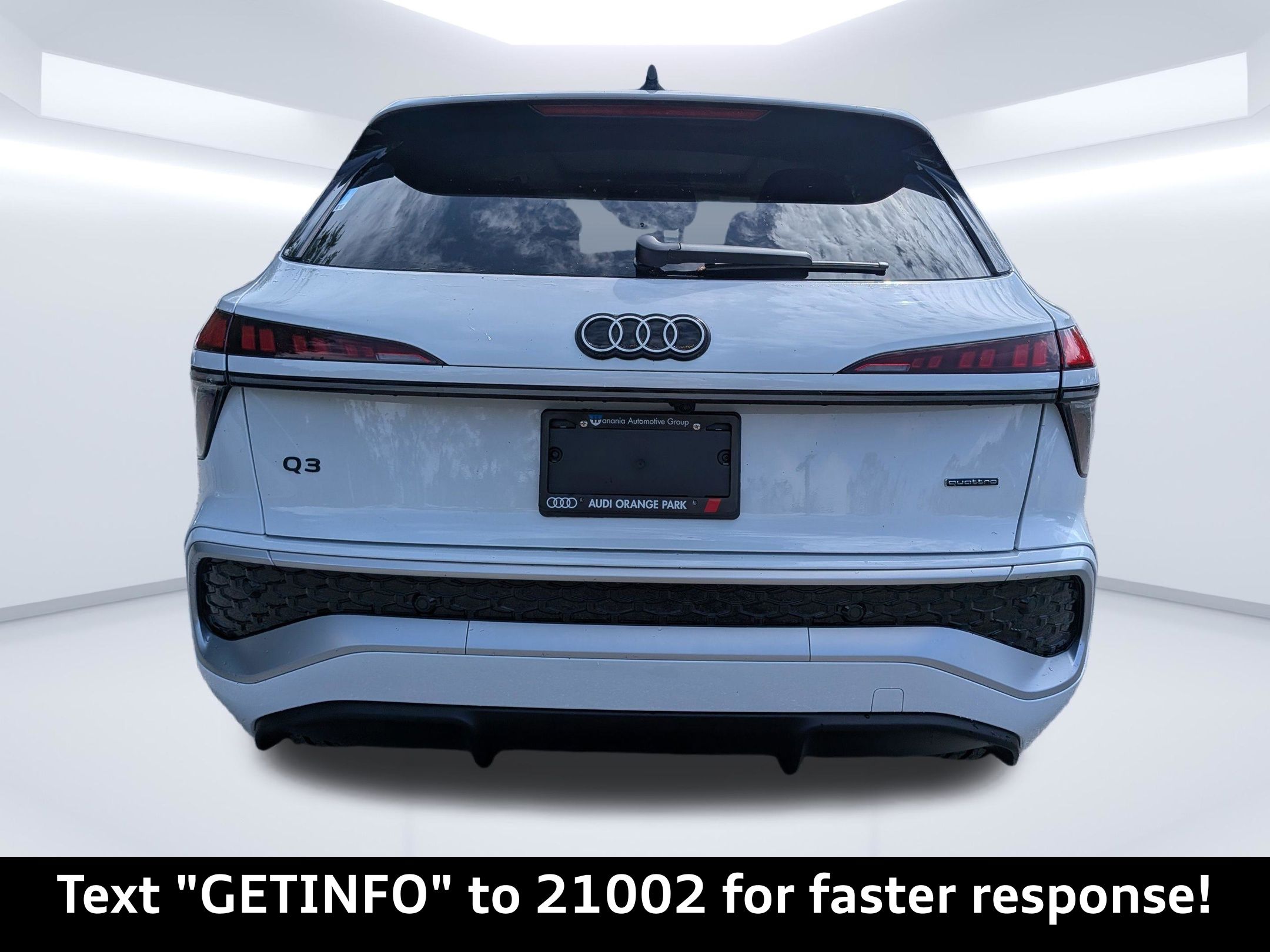 Glacier White 2026 Audi Q3 S line quattro quattro 7-Speed Automatic S tronic 2.0L 4-Cylinder Passed Rigorous Safety Inspection Performed by Certified Technician, Meticulously Detailed Inside and Out, CLEAN CARFAX, 10 Speakers, 21"" Alloy wheels, 4-Wheel Disc Brakes, ABS brakes, Air Conditioning, AM/FM radio, Auto High-beam Headlights, Auto-dimming door mirrors, Auto-dimming Rear-View mirror, Automatic temperature control, Brake assist, Bumpers: body-color, Compass, Delay-off headlights, Driver door bin, Driver vanity mirror, Dual front impact airbags, Dual front side impact airbags, Electronic Stability Control, Emergency communication system: Audi connect CARE, Exterior Parking Camera Rear, Four wheel independent suspension, Front anti-roll bar, Front Bucket Seats, Front Center Armrest, Front dual zone A/C, Front reading lights, Fully automatic headlights, Garage door transmitter: HomeLink, Genuine wood dashboard insert, Heated door mirrors, Heated Front Bucket Seats, Heated front seats, Illuminated entry, Leather Seating Surfaces, Leather steering wheel, Low tire pressure warning, Memory seat, Navigation system: MMI Navigation plus, Occupant sensing airbag, Outside temperature display, Overhead airbag, Overhead console, Panic alarm, Passenger door bin, Passenger vanity mirror, Power door mirrors, Power driver seat, Power Liftgate, Power moonroof: Panoramic, Power passenger seat, Power steering, Power windows, Radio data system, Radio: Audi Sound System, Rain sensing wipers, Rear air conditioning, Rear anti-roll bar, Rear fog lights, Rear reading lights, Rear seat center armrest, Rear window defroster, Rear window wiper, Remote keyless entry, Speed control, Speed-sensing steering, Split folding rear seat, Spoiler, Steering wheel mounted audio controls, Tachometer, Telescoping steering wheel, Tilt steering wheel, Traction control, Trip computer, Turn signal indicator mirrors, Variably intermittent wipers, Wheels: 18"" Multispoke Design.