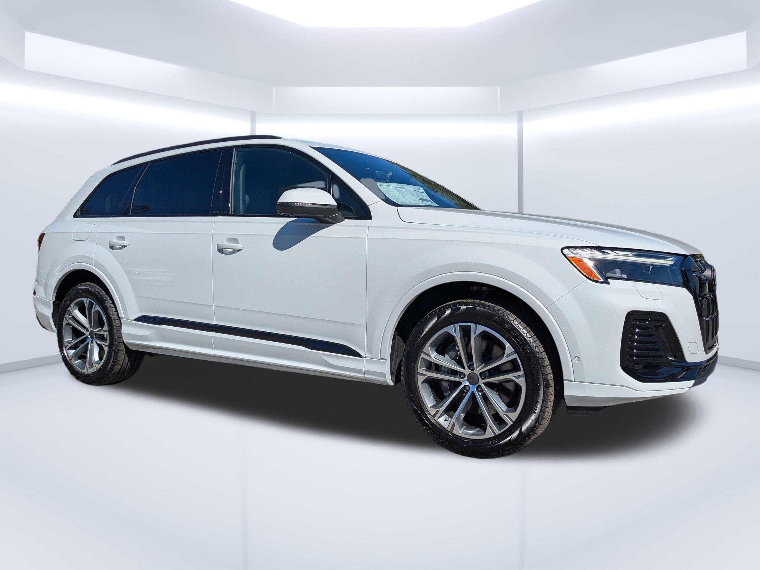 Glacier White Metallic 2026 Audi Q7 Premium Plus quattro quattro 8-Speed Automatic with Tiptronic 2.0L 4-Cylinder TFSI Passed Rigorous Safety Inspection Performed by Certified Technician, Meticulously Detailed Inside and Out, ** Premium Package Plus! **, CLEAN CARFAX, 21"" Alloy wheels, ABS brakes, Compass, Electronic Stability Control, Front dual zone A/C, Heated door mirrors, Heated Front Bucket Seats, Heated front seats, Illuminated entry, Low tire pressure warning, Power Liftgate, Remote keyless entry, Traction control, 10 Speakers, 3rd row seats: bench, 4-Wheel Disc Brakes, Air Conditioning, AM/FM radio: SiriusXM with 360L, Auto High-beam Headlights, Auto-dimming door mirrors, Auto-dimming Rear-View mirror, Automatic temperature control, Brake assist, Bumpers: body-color, Delay-off headlights, Driver door bin, Driver vanity mirror, Dual front impact airbags, Dual front side impact airbags, Emergency communication system: Audi connect CARE, Exterior Parking Camera Rear, Four wheel independent suspension, Front anti-roll bar, Front Bucket Seats, Front Center Armrest, Front fog lights, Front reading lights, Fully automatic headlights, Garage door transmitter: HomeLink, Genuine wood door panel insert, Leather Seating Surfaces, Leather Shift Knob, Leather steering wheel, Memory seat, Navigation system: Audi MMI Navigation plus with Touch Response, Occupant sensing airbag, Outside temperature display, Overhead airbag, Overhead console, Panic alarm, Passenger door bin, Passenger vanity mirror, Power door mirrors, Power driver seat, Power moonroof: Panoramic, Power passenger seat, Power steering, Power windows, Radio data system, Radio: Audi Sound System, Rain sensing wipers, Rear air conditioning, Rear anti-roll bar, Rear fog lights, Rear reading lights, Rear seat center armrest, Rear side impact airbag, Rear window defroster, Rear window wiper, Reclining 3rd row seat, Security system, Speed control, Speed-sensing steering, Split folding rear seat, Spoiler, Steering wheel memory, Steering wheel mounted audio controls, Tachometer, Telescoping steering wheel, Tilt steering wheel, Trip computer, Turn signal indicator mirrors, Variably intermittent wipers, Wheels: 19"" 5-Arm-Star Design, 21"" Alloy wheels, ABS brakes, Compass, Electronic Stability Control, Front dual zone A/C, Heated door mirrors, Heated Front Bucket Seats, Heated front seats, Illuminated entry, Low tire pressure warning, Power Liftgate, Remote keyless entry, Traction control.20/26 City/Highway MPG