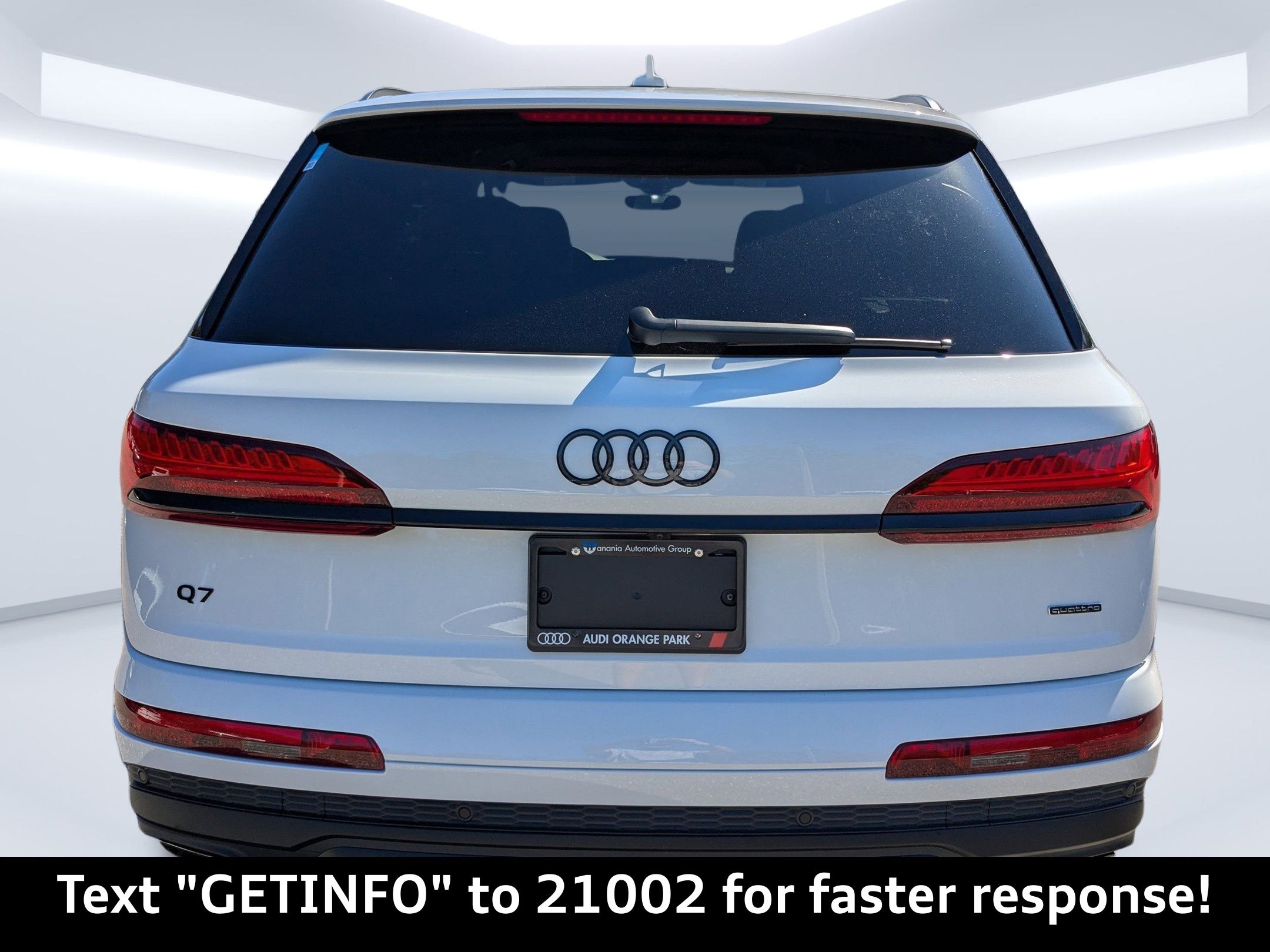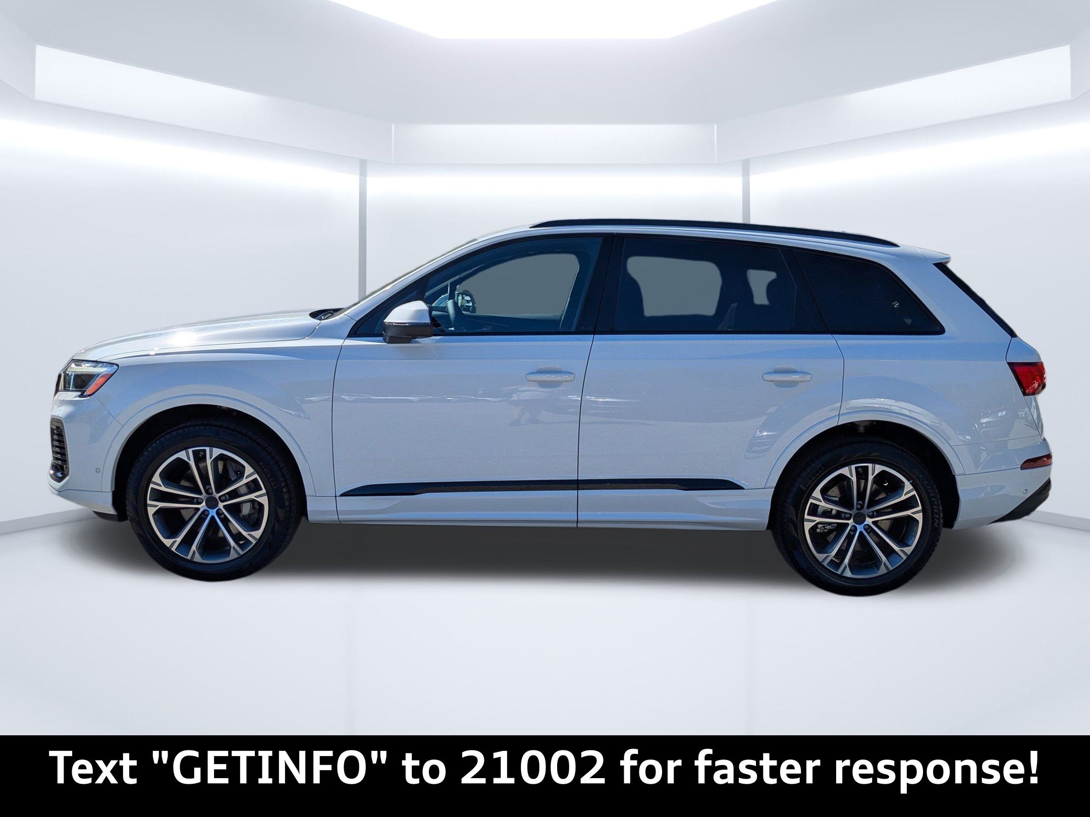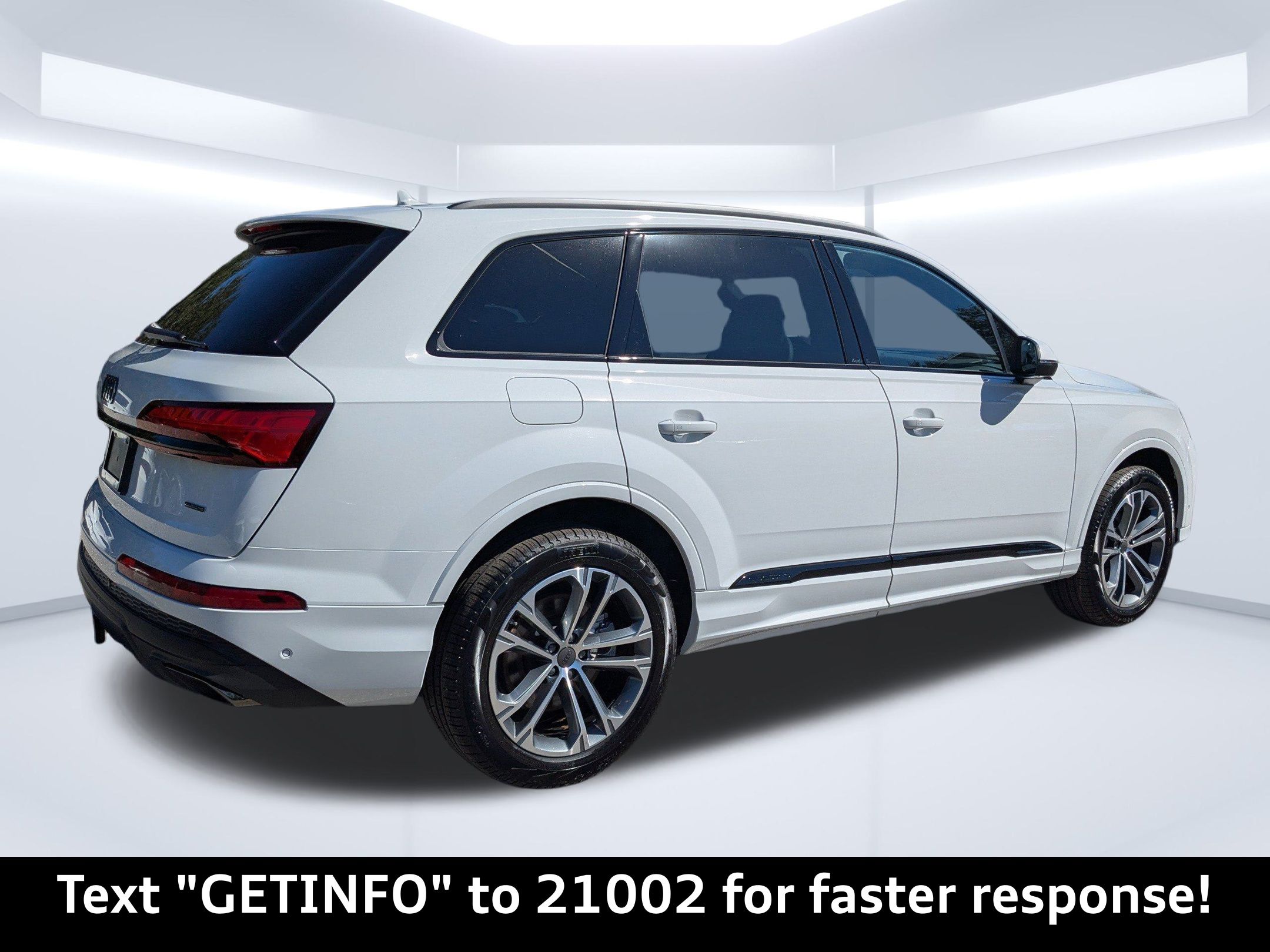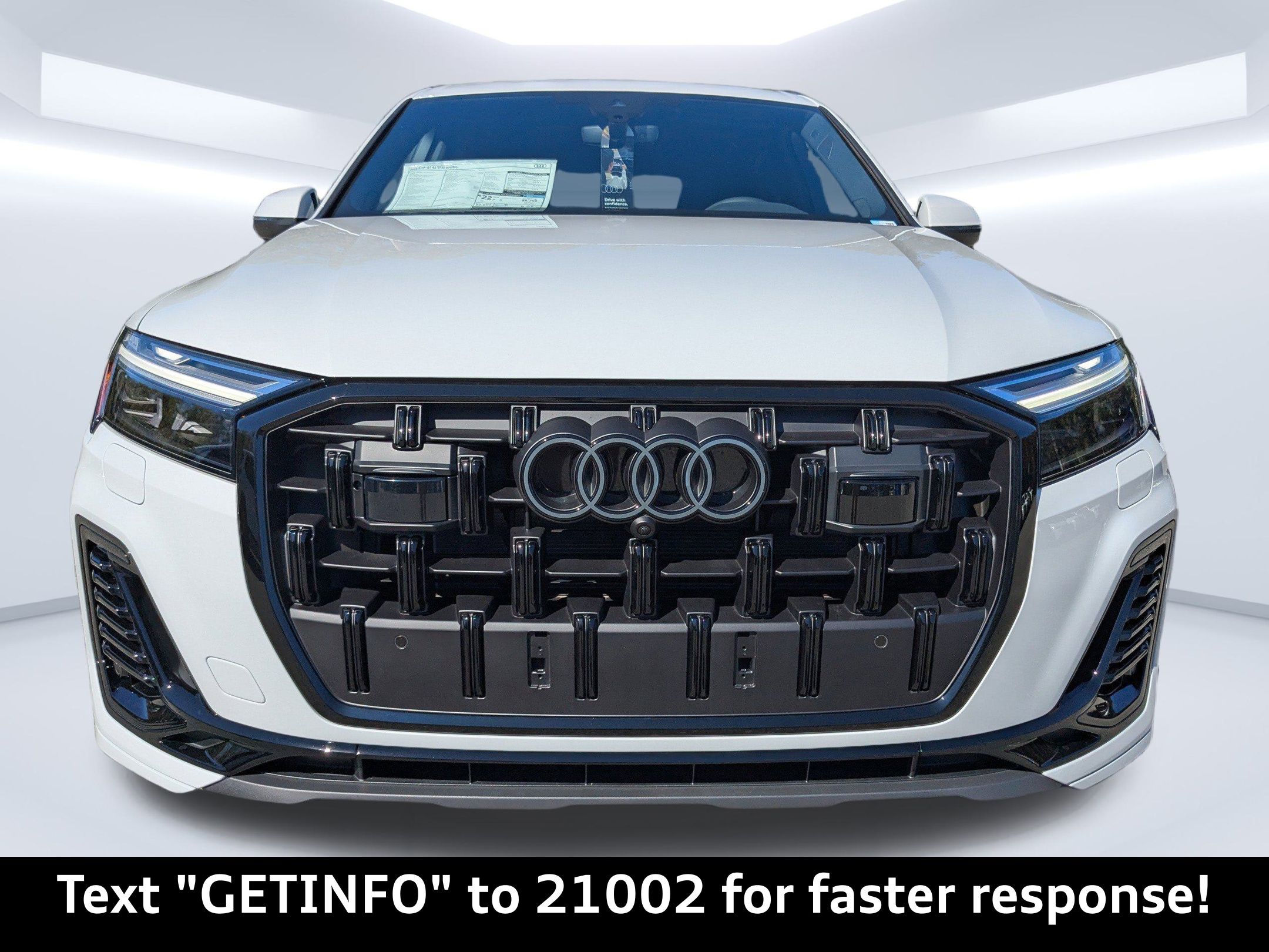 Glacier White Metallic 2026 Audi Q7 Premium Plus quattro quattro 8-Speed Automatic with Tiptronic 2.0L 4-Cylinder TFSI Passed Rigorous Safety Inspection Performed by Certified Technician, Meticulously Detailed Inside and Out, ** Premium Package Plus! **, CLEAN CARFAX, 21"" Alloy wheels, ABS brakes, Compass, Electronic Stability Control, Front dual zone A/C, Heated door mirrors, Heated Front Bucket Seats, Heated front seats, Illuminated entry, Low tire pressure warning, Power Liftgate, Remote keyless entry, Traction control, 10 Speakers, 3rd row seats: bench, 4-Wheel Disc Brakes, Air Conditioning, AM/FM radio: SiriusXM with 360L, Auto High-beam Headlights, Auto-dimming door mirrors, Auto-dimming Rear-View mirror, Automatic temperature control, Brake assist, Bumpers: body-color, Delay-off headlights, Driver door bin, Driver vanity mirror, Dual front impact airbags, Dual front side impact airbags, Emergency communication system: Audi connect CARE, Exterior Parking Camera Rear, Four wheel independent suspension, Front anti-roll bar, Front Bucket Seats, Front Center Armrest, Front fog lights, Front reading lights, Fully automatic headlights, Garage door transmitter: HomeLink, Genuine wood door panel insert, Leather Seating Surfaces, Leather Shift Knob, Leather steering wheel, Memory seat, Navigation system: Audi MMI Navigation plus with Touch Response, Occupant sensing airbag, Outside temperature display, Overhead airbag, Overhead console, Panic alarm, Passenger door bin, Passenger vanity mirror, Power door mirrors, Power driver seat, Power moonroof: Panoramic, Power passenger seat, Power steering, Power windows, Radio data system, Radio: Audi Sound System, Rain sensing wipers, Rear air conditioning, Rear anti-roll bar, Rear fog lights, Rear reading lights, Rear seat center armrest, Rear side impact airbag, Rear window defroster, Rear window wiper, Reclining 3rd row seat, Security system, Speed control, Speed-sensing steering, Split folding rear seat, Spoiler, Steering wheel memory, Steering wheel mounted audio controls, Tachometer, Telescoping steering wheel, Tilt steering wheel, Trip computer, Turn signal indicator mirrors, Variably intermittent wipers, Wheels: 19"" 5-Arm-Star Design, 21"" Alloy wheels, ABS brakes, Compass, Electronic Stability Control, Front dual zone A/C, Heated door mirrors, Heated Front Bucket Seats, Heated front seats, Illuminated entry, Low tire pressure warning, Power Liftgate, Remote keyless entry, Traction control.20/26 City/Highway MPG