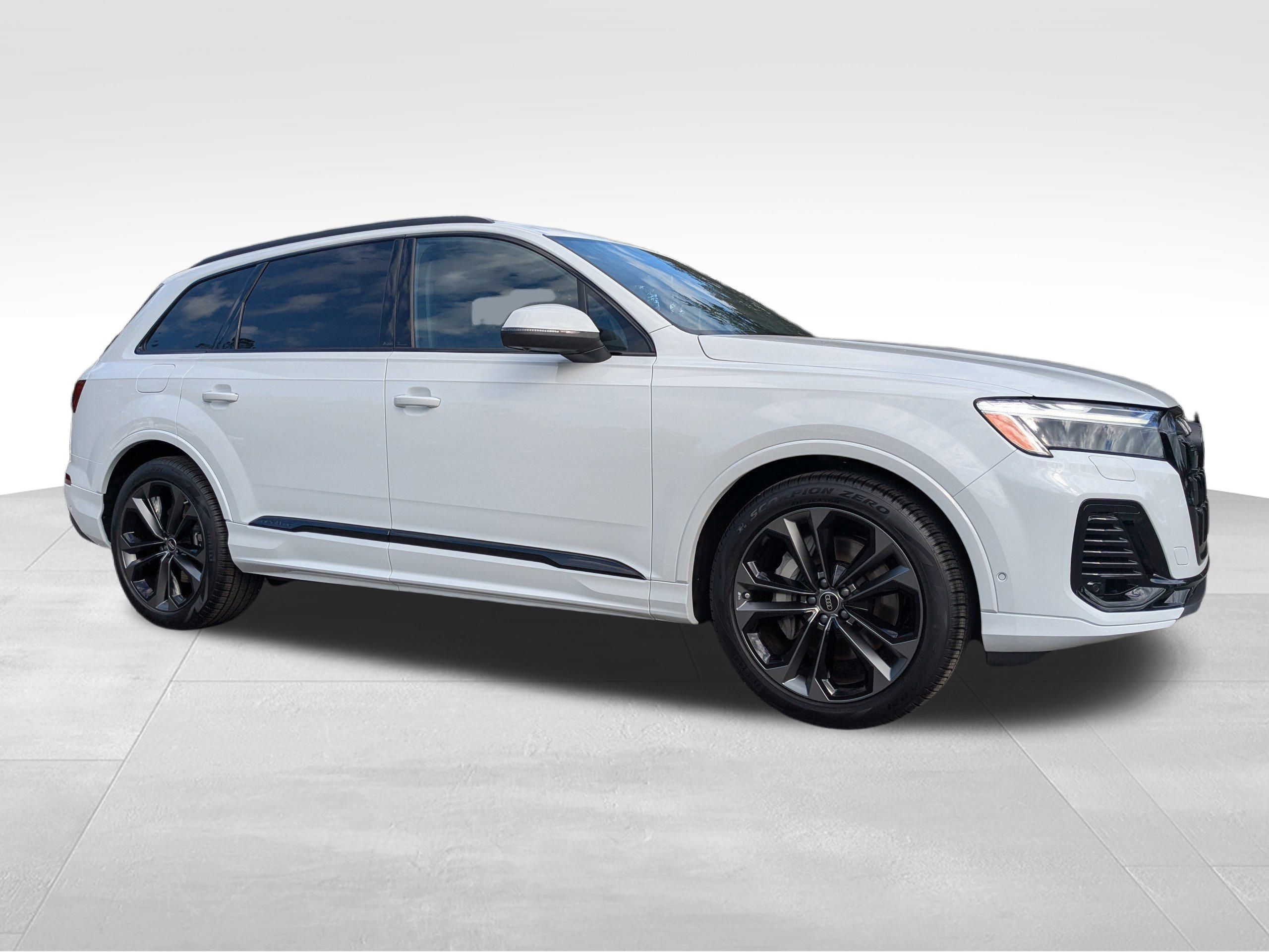 Glacier White Metallic 2026 Audi Q7 Premium Plus quattro quattro 8-Speed Automatic with Tiptronic 3.0L TFSI Passed Rigorous Safety Inspection Performed by Certified Technician, Meticulously Detailed Inside and Out, 21"" Alloy wheels, ABS brakes, Compass, Electronic Stability Control, Front dual zone A/C, Heated door mirrors, Heated Front Bucket Seats, Heated front seats, Illuminated entry, Low tire pressure warning, Power Liftgate, Remote keyless entry, Traction control, 10 Speakers, 3rd row seats: bench, 4-Wheel Disc Brakes, Air Conditioning, AM/FM radio, Auto High-beam Headlights, Auto-dimming door mirrors, Auto-dimming Rear-View mirror, Automatic temperature control, Brake assist, Bumpers: body-color, Delay-off headlights, Driver door bin, Driver vanity mirror, Dual front impact airbags, Dual front side impact airbags, Emergency communication system: Audi connect CARE, Exterior Parking Camera Rear, Four wheel independent suspension, Front anti-roll bar, Front Bucket Seats, Front Center Armrest, Front fog lights, Front reading lights, Fully automatic headlights, Garage door transmitter: HomeLink, Genuine wood door panel insert, Leather Seating Surfaces, Leather Shift Knob, Leather steering wheel, Memory seat, Navigation system: Audi MMI Navigation plus with Touch Response, Occupant sensing airbag, Outside temperature display, Overhead airbag, Overhead console, Panic alarm, Passenger door bin, Passenger vanity mirror, Power door mirrors, Power driver seat, Power moonroof: Panoramic, Power passenger seat, Power steering, Power windows, Radio data system, Radio: Audi Sound System, Rain sensing wipers, Rear air conditioning, Rear anti-roll bar, Rear fog lights, Rear reading lights, Rear seat center armrest, Rear side impact airbag, Rear window defroster, Rear window wiper, Reclining 3rd row seat, Security system, Speed control, Speed-sensing steering, Split folding rear seat, Spoiler, Steering wheel memory, Steering wheel mounted audio controls, Tachometer, Telescoping steering wheel, Tilt steering wheel, Trip computer, Turn signal indicator mirrors, Variably intermittent wipers, Wheels: 19"" 5-Arm-Star Design, CLEAN CARFAX, 21"" Alloy wheels, ABS brakes, Compass, Electronic Stability Control, Front dual zone A/C, Heated door mirrors, Heated Front Bucket Seats, Heated front seats, Illuminated entry, Low tire pressure warning, Power Liftgate, Remote keyless entry, Traction control.