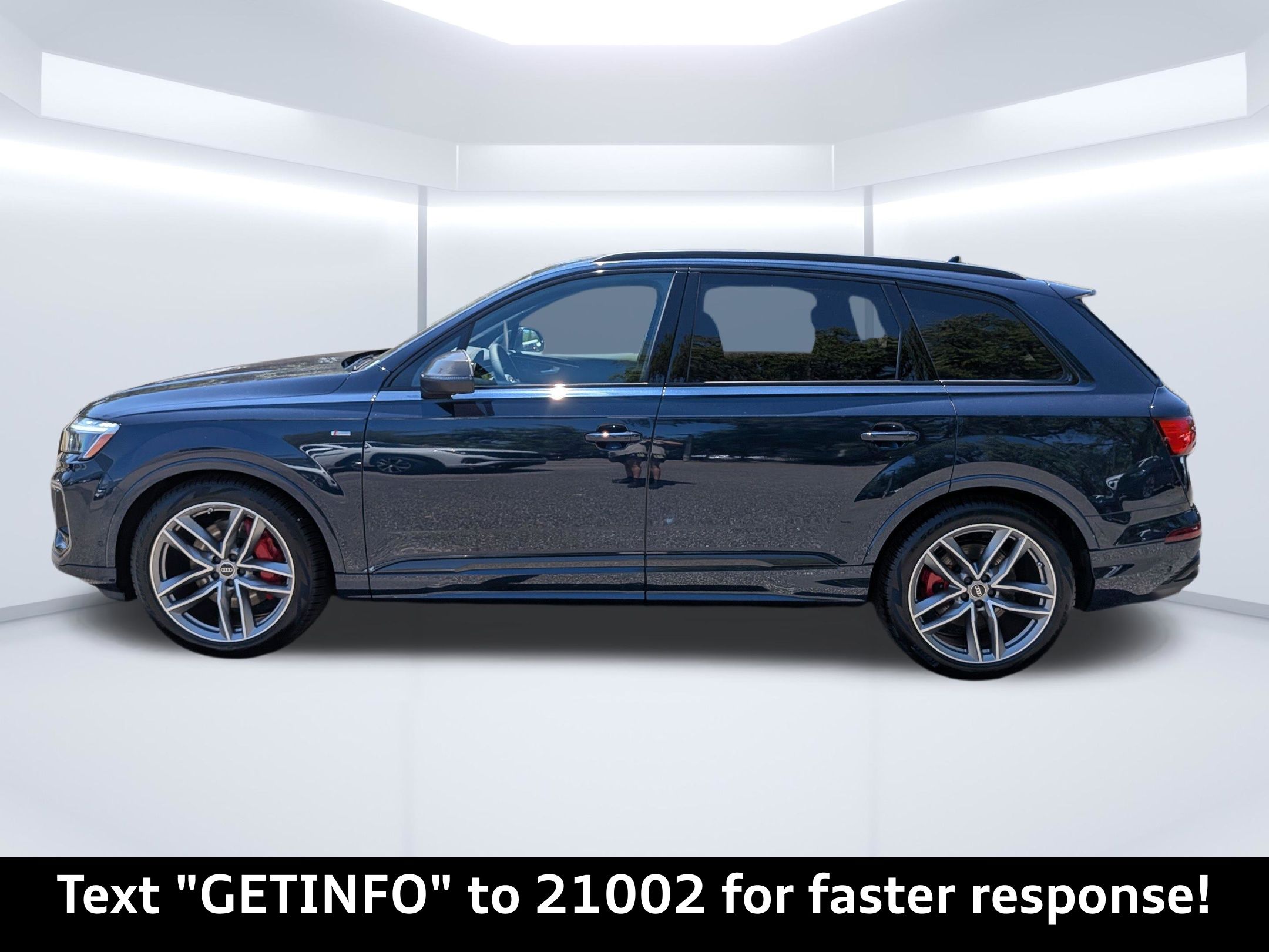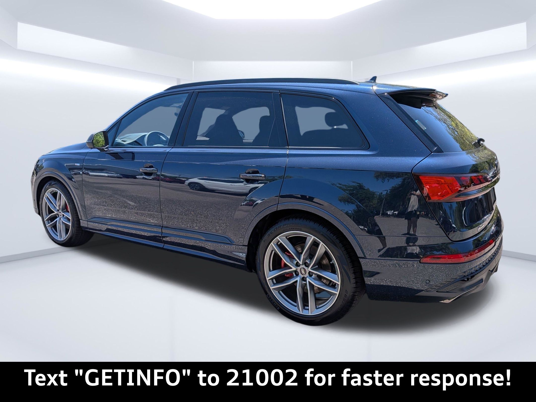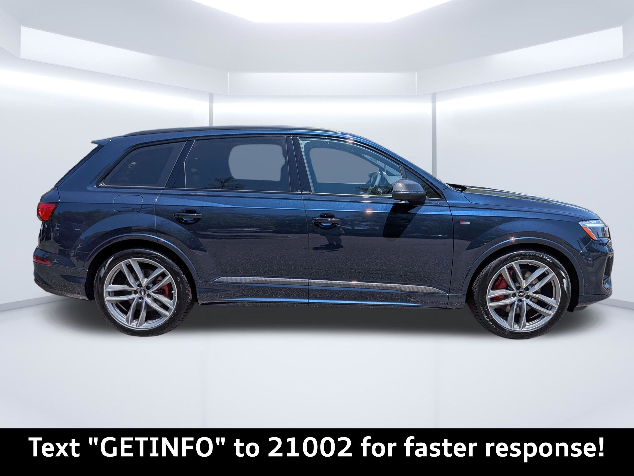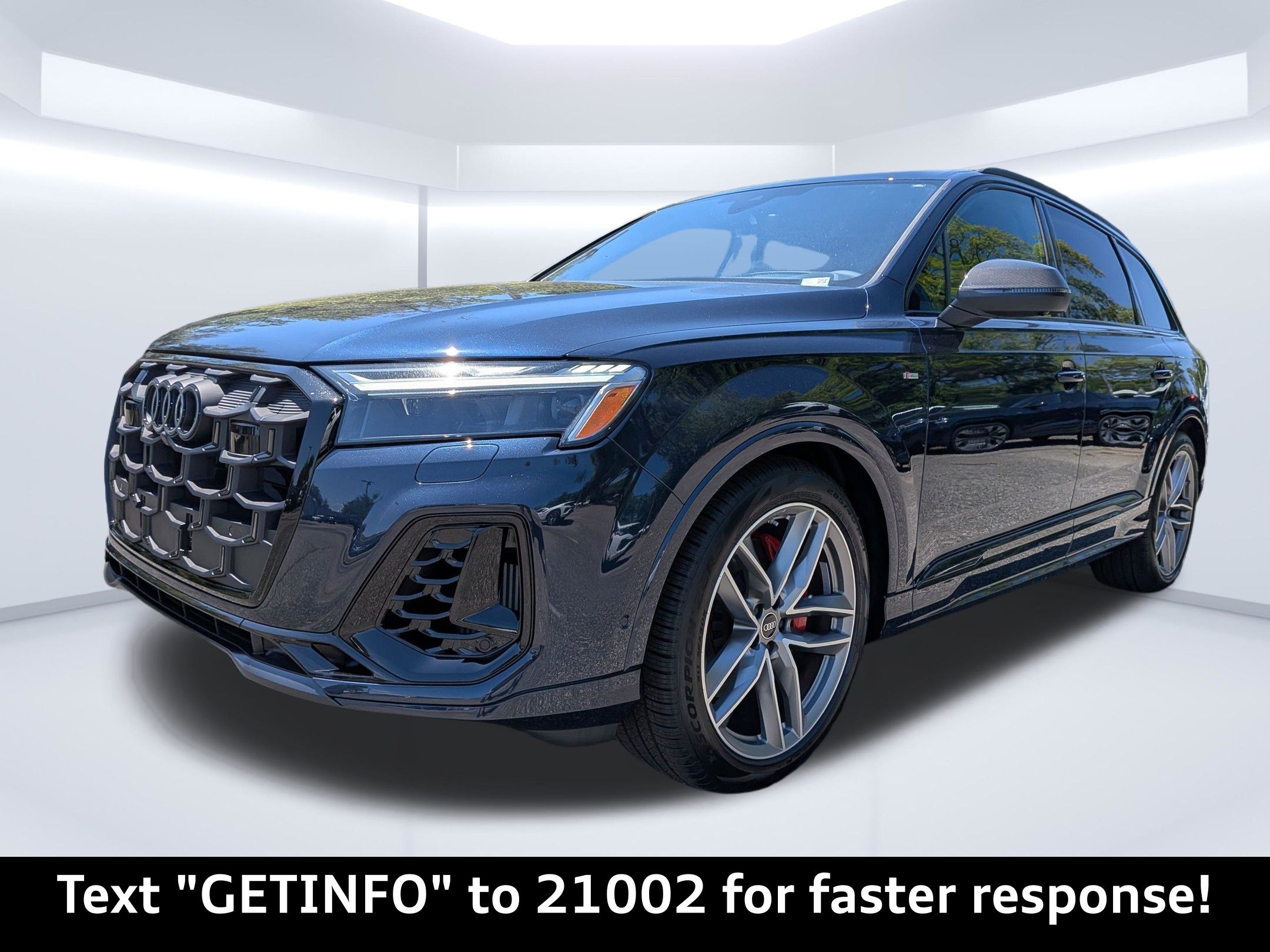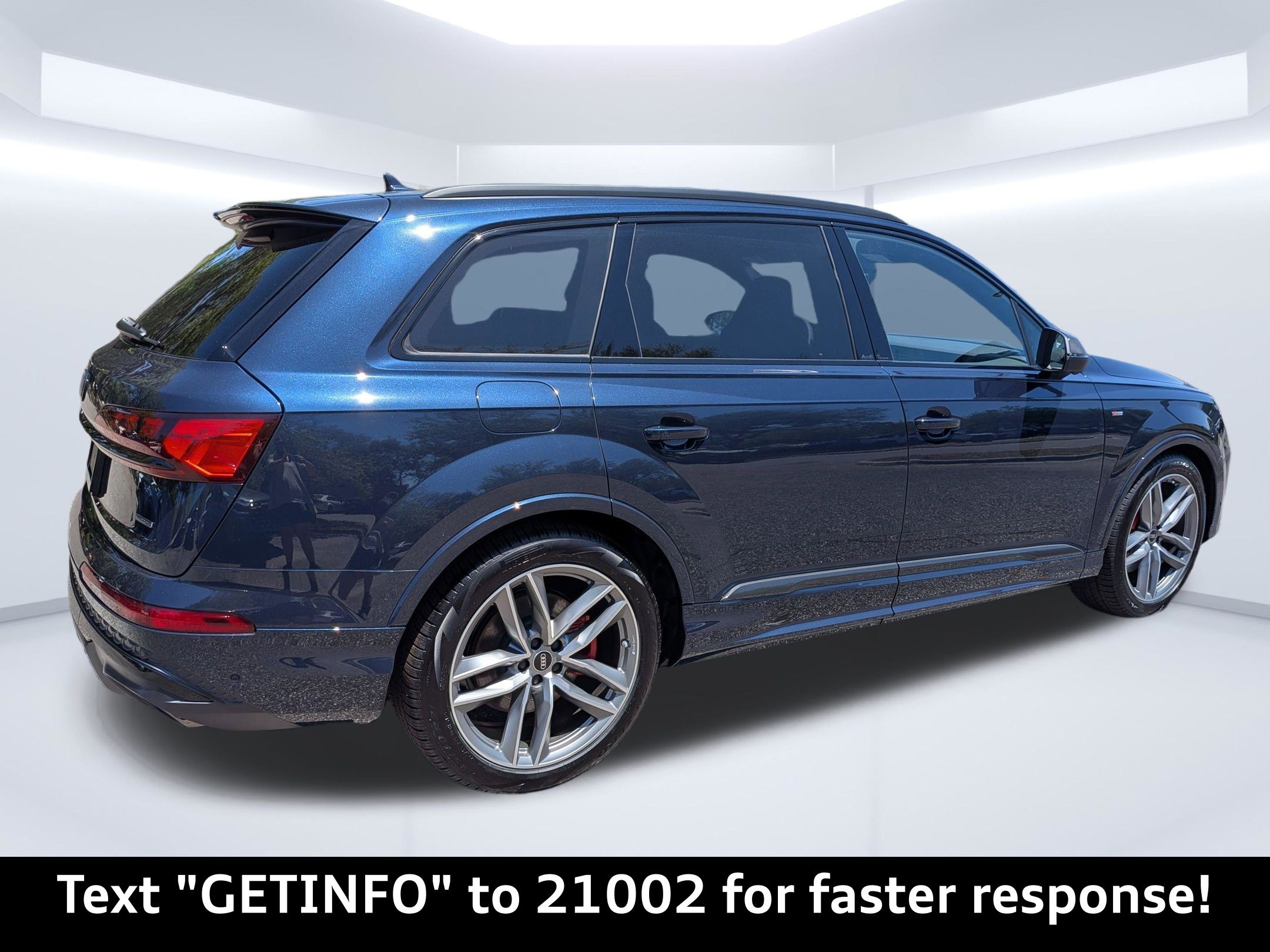 Blue 2026 Audi Q7 Prestige quattro quattro 8-Speed Automatic with Tiptronic 3.0L TFSI Passed Rigorous Safety Inspection Performed by Certified Technician, Meticulously Detailed Inside and Out, CLEAN CARFAX, 10 Speakers, 21"" Alloy wheels, 3rd row seats: bench, 4-Wheel Disc Brakes, ABS brakes, Air Conditioning, AM/FM radio: SiriusXM with 360L, Auto High-beam Headlights, Auto-dimming door mirrors, Auto-dimming Rear-View mirror, Automatic temperature control, Brake assist, Bumpers: body-color, Compass, Delay-off headlights, Driver door bin, Driver vanity mirror, Dual front impact airbags, Dual front side impact airbags, Electronic Stability Control, Emergency communication system: Audi connect CARE, Exterior Parking Camera Rear, Four wheel independent suspension, Front anti-roll bar, Front Bucket Seats, Front Center Armrest, Front dual zone A/C, Front fog lights, Front reading lights, Fully automatic headlights, Garage door transmitter: HomeLink, Genuine wood door panel insert, Heated door mirrors, Heated Front Bucket Seats, Heated front seats, Illuminated entry, Leather Seating Surfaces, Leather Shift Knob, Leather steering wheel, Low tire pressure warning, Memory seat, Navigation system: Audi MMI Navigation plus with Touch Response, Occupant sensing airbag, Outside temperature display, Overhead airbag, Overhead console, Panic alarm, Passenger door bin, Passenger vanity mirror, Power door mirrors, Power driver seat, Power Liftgate, Power moonroof: Panoramic, Power passenger seat, Power steering, Power windows, Radio data system, Radio: Audi Sound System, Rain sensing wipers, Rear air conditioning, Rear anti-roll bar, Rear fog lights, Rear reading lights, Rear seat center armrest, Rear side impact airbag, Rear window defroster, Rear window wiper, Reclining 3rd row seat, Remote keyless entry, Security system, Speed control, Speed-sensing steering, Split folding rear seat, Spoiler, Steering wheel memory, Steering wheel mounted audio controls, Tachometer, Telescoping steering wheel, Tilt steering wheel, Traction control, Trip computer, Turn signal indicator mirrors, Variably intermittent wipers, Wheels: 19"" 5-Arm-Star Design.Recent Arrival!