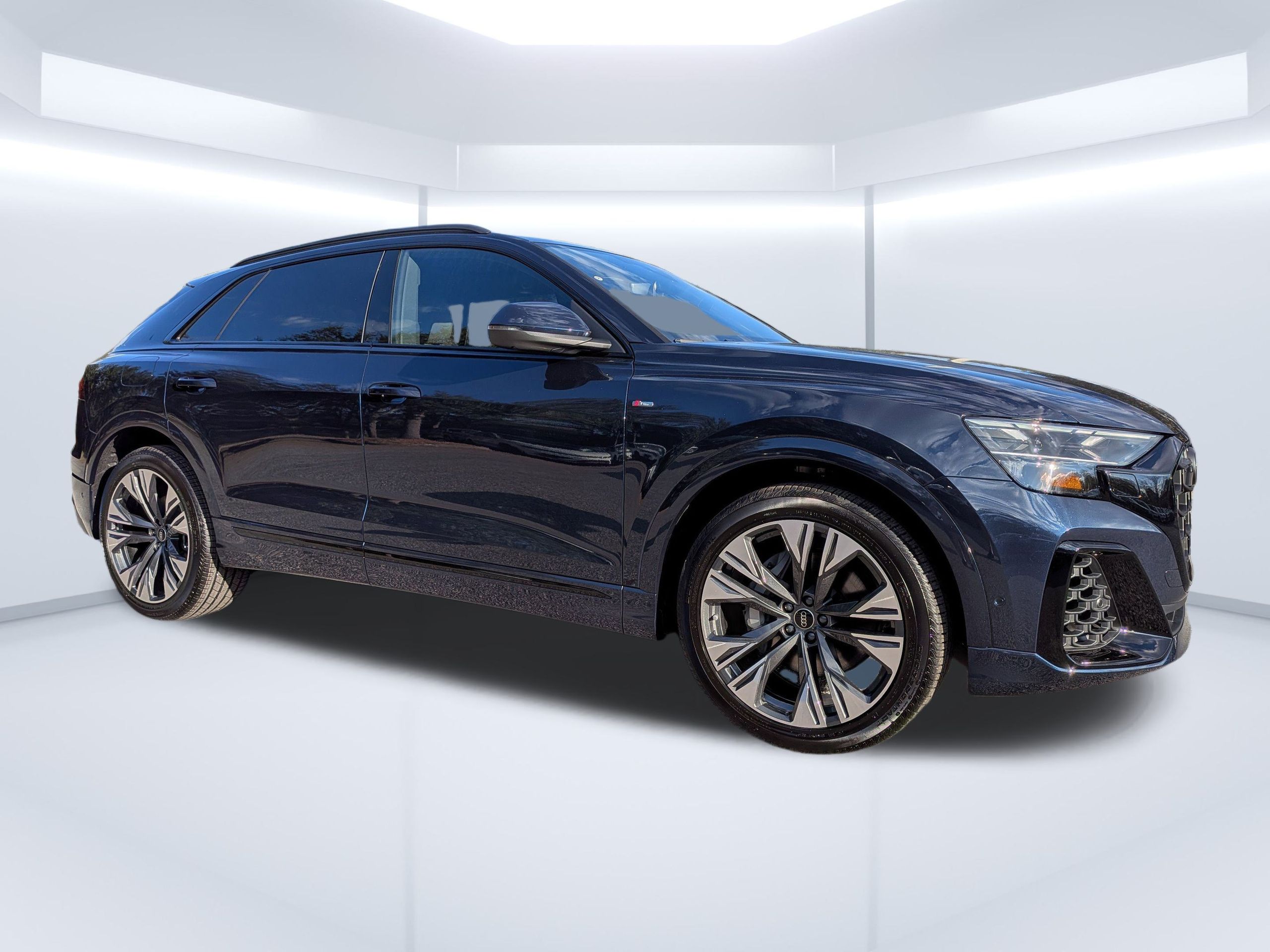 waitomo blue metallic 2026 Audi Q8 Premium Plus quattro quattro 8-Speed Automatic with Tiptronic 3.0L TFSI Passed Rigorous Safety Inspection Performed by Certified Technician, Meticulously Detailed Inside and Out, CLEAN CARFAX, 10 Speakers, 21"" Alloy wheels, 4-Wheel Disc Brakes, ABS brakes, Adaptive suspension, Air Conditioning, AM/FM radio, Audi Sound System, Auto High-beam Headlights, Auto-dimming door mirrors, Auto-dimming Rear-View mirror, Automatic temperature control, Brake assist, Bumpers: body-color, Compass, Delay-off headlights, Driver door bin, Driver vanity mirror, Dual front impact airbags, Dual front side impact airbags, Electronic Stability Control, Emergency communication system: Audi connect CARE, Exterior Parking Camera Rear, Four wheel independent suspension, Front anti-roll bar, Front Bucket Seats, Front Center Armrest, Front dual zone A/C, Front fog lights, Front reading lights, Fully automatic headlights, Garage door transmitter: HomeLink, Genuine wood door panel insert, Heated door mirrors, Heated Front Bucket Seats, Heated front seats, Illuminated entry, Leather Seating Surfaces, Leather Shift Knob, Leather steering wheel, Low tire pressure warning, Memory seat, Navigation system: Audi MMI Navigation plus with Touch Response, Occupant sensing airbag, Outside temperature display, Overhead airbag, Overhead console, Panic alarm, Passenger door bin, Passenger vanity mirror, Power door mirrors, Power driver seat, Power Liftgate, Power moonroof: Panoramic, Power passenger seat, Power steering, Power windows, Radio data system, Radio: Audi MMI Navigation Plus with MMI Touch Response, Rain sensing wipers, Rear air conditioning, Rear anti-roll bar, Rear fog lights, Rear reading lights, Rear seat center armrest, Rear side impact airbag, Rear window defroster, Rear window wiper, Remote keyless entry, Security system, Speed control, Speed-sensing steering, Split folding rear seat, Spoiler, Steering wheel memory, Steering wheel mounted audio controls, Tachometer, Telescoping steering wheel, Tilt steering wheel, Traction control, Trip computer, Turn signal indicator mirrors, Variably intermittent wipers, Wheels: 21"" 5-W-Spoke Design with Bicolor Finish.