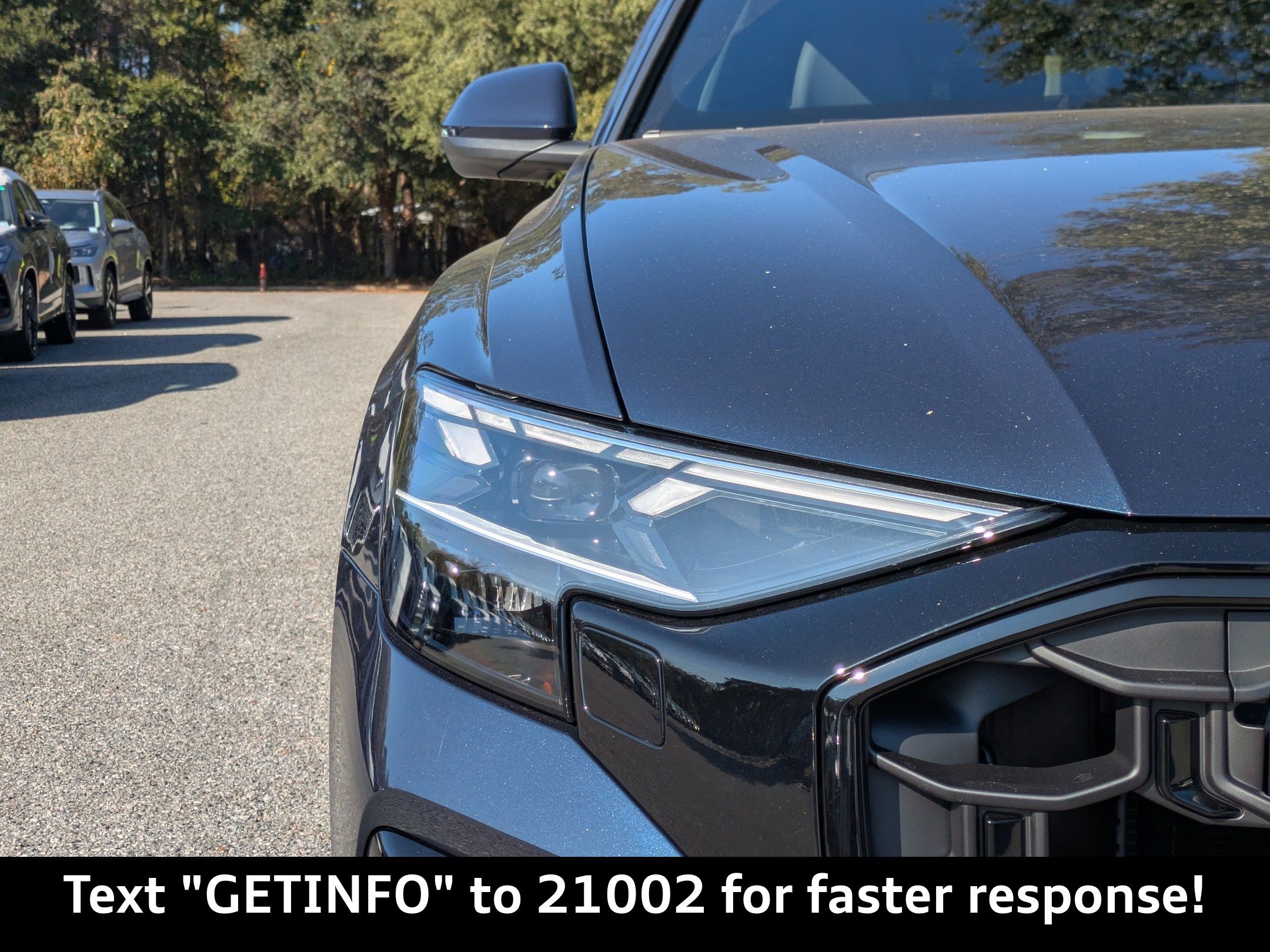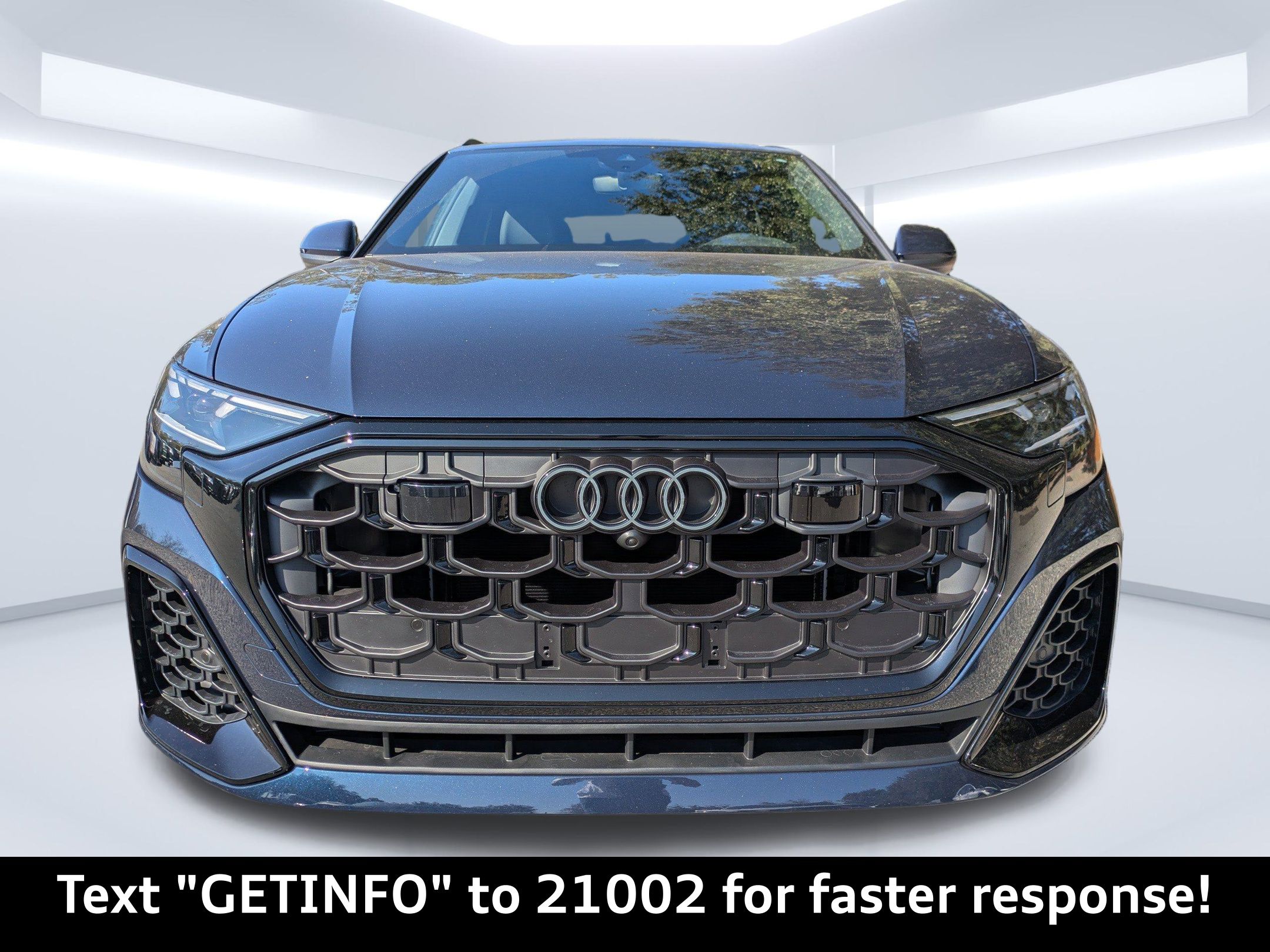 Waitomo Blue Metallic 2026 Audi Q8 Premium Plus quattro quattro 8-Speed Automatic with Tiptronic 3.0L TFSI Passed Rigorous Safety Inspection Performed by Certified Technician, Meticulously Detailed Inside and Out, CLEAN CARFAX, 10 Speakers, 21"" Alloy wheels, 4-Wheel Disc Brakes, ABS brakes, Adaptive suspension, Air Conditioning, AM/FM radio, Audi Sound System, Auto High-beam Headlights, Auto-dimming door mirrors, Auto-dimming Rear-View mirror, Automatic temperature control, Brake assist, Bumpers: body-color, Compass, Delay-off headlights, Driver door bin, Driver vanity mirror, Dual front impact airbags, Dual front side impact airbags, Electronic Stability Control, Emergency communication system: Audi connect CARE, Exterior Parking Camera Rear, Four wheel independent suspension, Front anti-roll bar, Front Bucket Seats, Front Center Armrest, Front dual zone A/C, Front fog lights, Front reading lights, Fully automatic headlights, Garage door transmitter: HomeLink, Genuine wood door panel insert, Heated door mirrors, Heated Front Bucket Seats, Heated front seats, Illuminated entry, Leather Seating Surfaces, Leather Shift Knob, Leather steering wheel, Low tire pressure warning, Memory seat, Navigation system: Audi MMI Navigation plus with Touch Response, Occupant sensing airbag, Outside temperature display, Overhead airbag, Overhead console, Panic alarm, Passenger door bin, Passenger vanity mirror, Power door mirrors, Power driver seat, Power Liftgate, Power moonroof: Panoramic, Power passenger seat, Power steering, Power windows, Radio data system, Radio: Audi MMI Navigation Plus with MMI Touch Response, Rain sensing wipers, Rear air conditioning, Rear anti-roll bar, Rear fog lights, Rear reading lights, Rear seat center armrest, Rear side impact airbag, Rear window defroster, Rear window wiper, Remote keyless entry, Security system, Speed control, Speed-sensing steering, Split folding rear seat, Spoiler, Steering wheel memory, Steering wheel mounted audio controls, Tachometer, Telescoping steering wheel, Tilt steering wheel, Traction control, Trip computer, Turn signal indicator mirrors, Variably intermittent wipers, Wheels: 21"" 5-W-Spoke Design with Bicolor Finish.