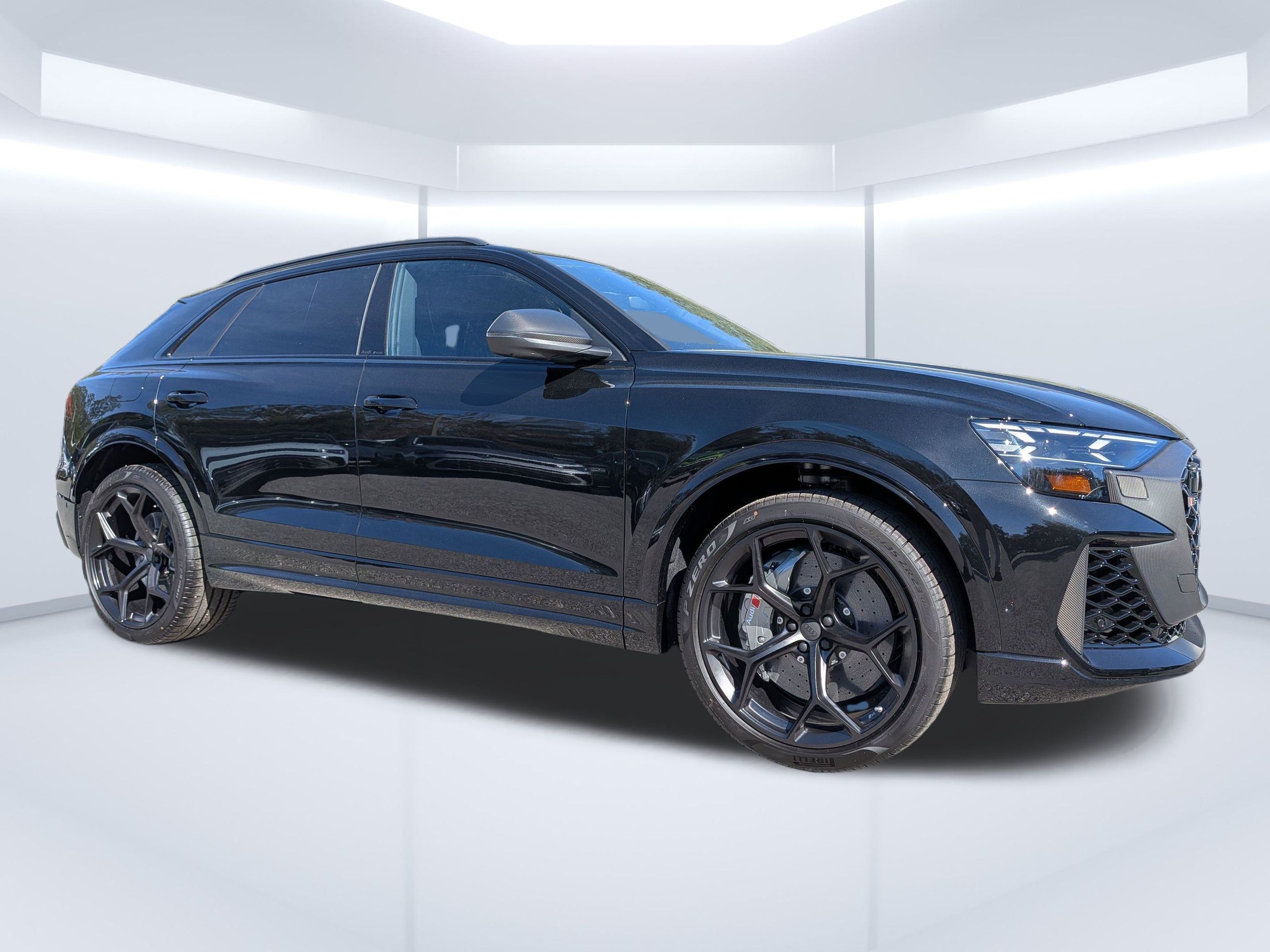 mythos black metallic 2026 Audi RS Q8 performance performance quattro quattro 8-Speed Automatic with Tiptronic 4.0L V8 Turbocharged DOHC 32V LEV3-ULEV125 631hp Passed Rigorous Safety Inspection Performed by Certified Technician, Meticulously Detailed Inside and Out, CLEAN CARFAX, 17 Speakers, 21"" Alloy wheels, 4-Wheel Disc Brakes, ABS brakes, Adaptive suspension, Air Conditioning, AM/FM radio, Auto High-beam Headlights, Auto-dimming door mirrors, Auto-dimming Rear-View mirror, Auto-leveling suspension, Automatic temperature control, Bang & Olufsen Premium Sound System with 3D Sound, Brake assist, Bumpers: body-color, Ceramic disc brakes: front and rear, Compass, Delay-off headlights, Driver door bin, Driver vanity mirror, Dual front impact airbags, Dual front side impact airbags, Electronic Stability Control, Emergency communication system: Audi connect CARE, Exterior Parking Camera Rear, Four wheel independent suspension, Front anti-roll bar, Front Bucket Seats, Front Center Armrest, Front dual zone A/C, Front fog lights, Front reading lights, Fully automatic headlights, Garage door transmitter: HomeLink, Heated and Ventilated Front Sport Seats Plus, Heated door mirrors, Heated front seats, Heated steering wheel, Illuminated entry, Leather Shift Knob, Leather steering wheel, Low tire pressure warning, Memory seat, Navigation system: Audi MMI Navigation plus with Touch Response, Occupant sensing airbag, Outside temperature display, Overhead airbag, Overhead console, Panic alarm, Passenger door bin, Passenger vanity mirror, Power door mirrors, Power driver seat, Power Liftgate, Power moonroof: Panoramic, Power passenger seat, Power steering, Power windows, Radio data system, Radio: Audi MMI Navigation Plus with MMI Touch Response, Rain sensing wipers, Rear air conditioning, Rear anti-roll bar, Rear dual zone A/C, Rear fog lights, Rear reading lights, Rear seat center armrest, Rear side impact airbag, Rear Window Blind, Rear window defroster, Rear window wiper, Remote keyless entry, Security system, Speed control, Speed-sensing steering, Split folding rear seat, Spoiler, Steering wheel memory, Steering wheel mounted audio controls, Tachometer, Telescoping steering wheel, Tilt steering wheel, Traction control, Trip computer, Turn signal indicator mirrors, Valcona Leather Seating Surfaces, Variably intermittent wipers, Ventilated front seats, Wheels: 22"" 10-Spoke Star Design.