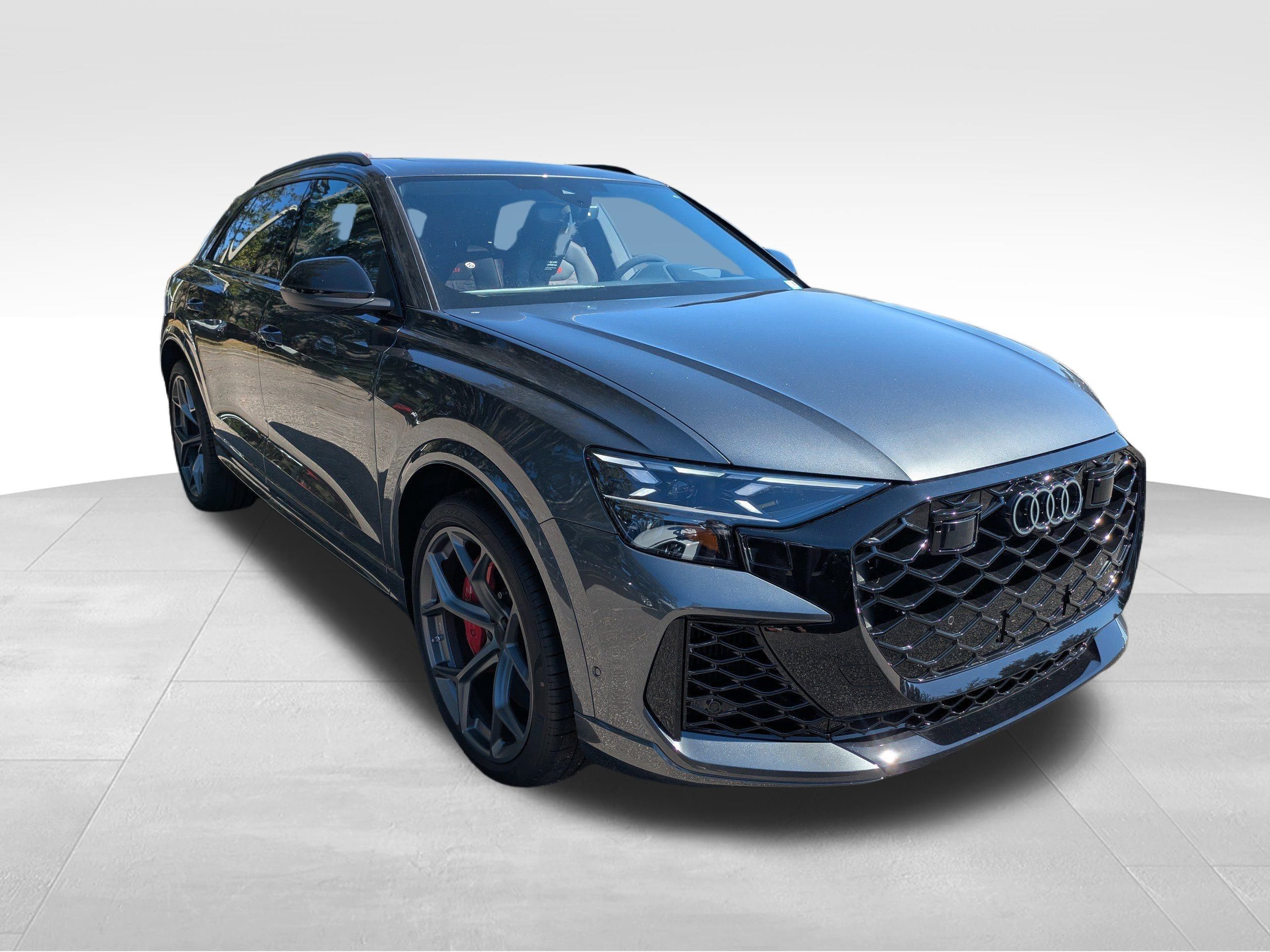 daytona gray pearl effect 2026 Audi RS Q8 performance performance quattro quattro 8-Speed Automatic with Tiptronic 4.0L V8 Turbocharged DOHC 32V LEV3-ULEV125 631hp Passed Rigorous Safety Inspection Performed by Certified Technician, Meticulously Detailed Inside and Out, ** V8 Power! - You Won't Be Able To Drive a V6 After This! **, 21"" Alloy wheels, ABS brakes, Active Cruise Control, Compass, Electronic Stability Control, Front dual zone A/C, Heated door mirrors, Heated front seats, Illuminated entry, Low tire pressure warning, Navigation System, Power Liftgate, Rear dual zone A/C, Remote keyless entry, Traction control, 17 Speakers, 4-Wheel Disc Brakes, Adaptive suspension, Air Conditioning, AM/FM radio, Auto High-beam Headlights, Auto-dimming door mirrors, Auto-dimming Rear-View mirror, Auto-leveling suspension, Automatic temperature control, Bang & Olufsen Premium Sound System with 3D Sound, Brake assist, Bumpers: body-color, Ceramic disc brakes: front and rear, Delay-off headlights, Driver door bin, Driver vanity mirror, Dual front impact airbags, Dual front side impact airbags, Emergency communication system: Audi connect CARE, Exterior Parking Camera Rear, Four wheel independent suspension, Front anti-roll bar, Front Bucket Seats, Front Center Armrest, Front fog lights, Front reading lights, Fully automatic headlights, Garage door transmitter: HomeLink, Heated and Ventilated Front Sport Seats Plus, Heated steering wheel, Leather Shift Knob, Leather steering wheel, Memory seat, Navigation system: Audi MMI Navigation plus with Touch Response, Occupant sensing airbag, Outside temperature display, Overhead airbag, Overhead console, Panic alarm, Passenger door bin, Passenger vanity mirror, Power door mirrors, Power driver seat, Power moonroof: Panoramic, Power passenger seat, Power steering, Power windows, Radio data system, Radio: Audi MMI Navigation Plus with MMI Touch Response, Rain sensing wipers, Rear air conditioning, Rear anti-roll bar, Rear fog lights, Rear reading lights, Rear seat center armrest, Rear side impact airbag, Rear Window Blind, Rear window defroster, Rear window wiper, Security system, Speed control, Speed-sensing steering, Split folding rear seat, Spoiler, Steering wheel memory, Steering wheel mounted audio controls, Tachometer, Telescoping steering wheel, Tilt steering wheel, Trip computer, Turn signal indicator mirrors, Valcona Leather Seating Surfaces, Variably intermittent wipers, Ventilated front seats, Wheels: 22"" 10-Spoke Star Design, CLEAN CARFAX, 21"" Alloy wheels, ABS brakes, Active Cruise Control, Compass, Electronic Stability Control, Front dual zone A/C, Heated door mirrors, Heated front seats, Illuminated entry, Low tire pressure warning, Navigation System, Power Liftgate, Rear dual zone A/C, Remote keyless entry, Traction control.