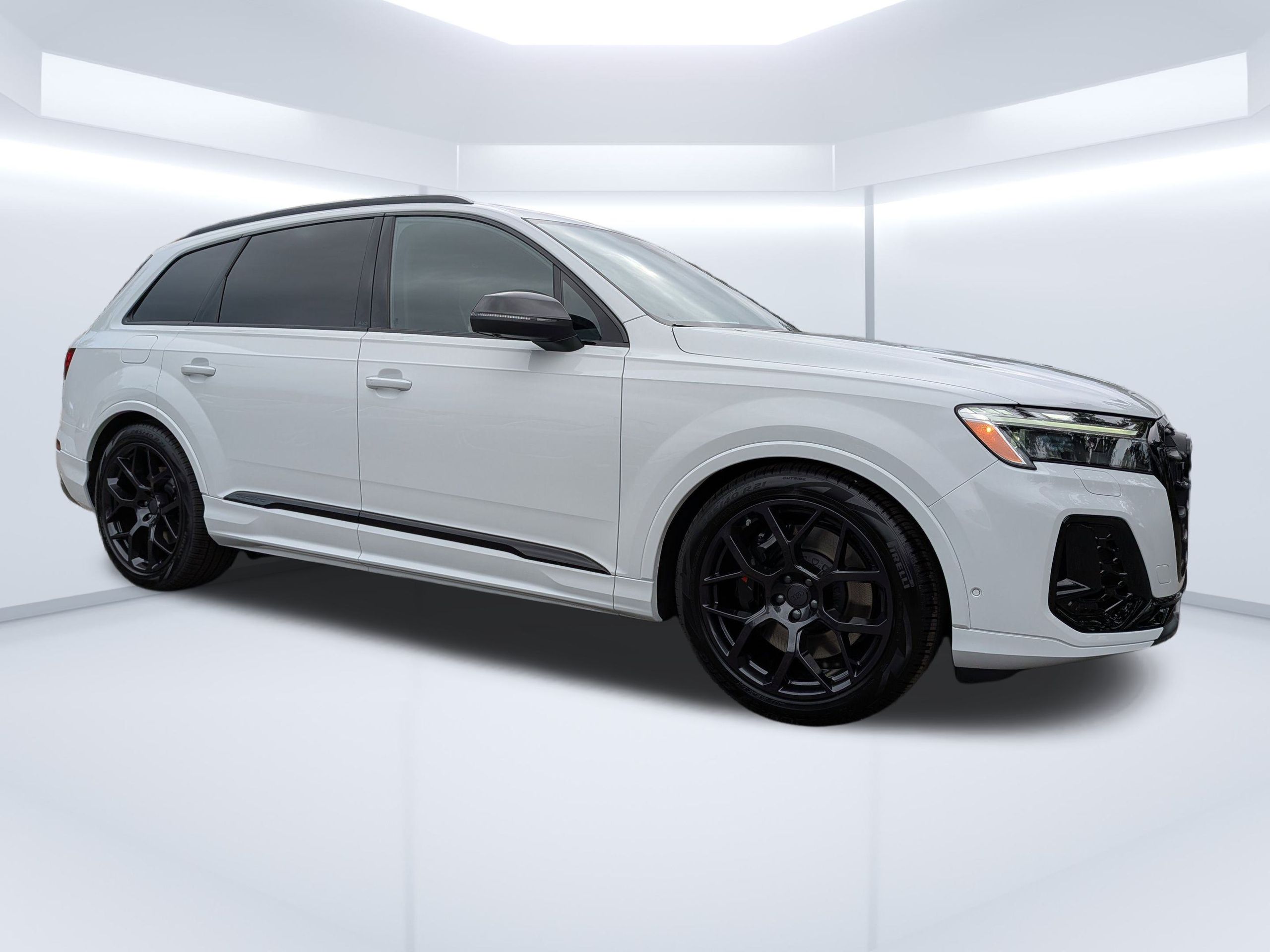 glacier white metallic 2026 Audi SQ7 Premium Plus quattro quattro 8-Speed Automatic with Tiptronic 4.0L V8 Turbocharged DOHC 32V LEV3-ULEV125 500hp Passed Rigorous Safety Inspection Performed by Certified Technician, Meticulously Detailed Inside and Out, CLEAN CARFAX, 19 Speakers, 21"" Alloy wheels, 3rd row seats: bench, 4-Wheel Disc Brakes, ABS brakes, Adaptive suspension, Air Conditioning, AM/FM radio, Auto High-beam Headlights, Auto-dimming door mirrors, Auto-dimming Rear-View mirror, Auto-leveling suspension, Automatic temperature control, Brake assist, Bumpers: body-color, Compass, Delay-off headlights, Diamond Stitched Valcona Leather Seat Trim, Driver door bin, Driver vanity mirror, Dual front impact airbags, Dual front side impact airbags, Electronic Stability Control, Emergency communication system: Audi connect CARE, Exterior Parking Camera Rear, Four wheel independent suspension, Front anti-roll bar, Front Bucket Seats, Front Center Armrest, Front dual zone A/C, Front fog lights, Front reading lights, Fully automatic headlights, Garage door transmitter: HomeLink, Heated door mirrors, Heated front seats, Heated Front Sport Seats Plus, Heated steering wheel, Illuminated entry, Leather Shift Knob, Leather steering wheel, Low tire pressure warning, Memory seat, Navigation system: Audi MMI Navigation plus with Touch Response, Occupant sensing airbag, Outside temperature display, Overhead airbag, Overhead console, Panic alarm, Passenger door bin, Passenger vanity mirror, Power door mirrors, Power driver seat, Power Liftgate, Power moonroof: Panoramic, Power passenger seat, Power steering, Power windows, Radio data system, Radio: Bang & Olufsen Premium 3D Sound System, Rain sensing wipers, Rear air conditioning, Rear anti-roll bar, Rear dual zone A/C, Rear fog lights, Rear reading lights, Rear seat center armrest, Rear side impact airbag, Rear window defroster, Rear window wiper, Reclining 3rd row seat, Remote keyless entry, Security system, Speed control, Speed-sensing steering, Split folding rear seat, Spoiler, Steering wheel memory, Steering wheel mounted audio controls, Tachometer, Telescoping steering wheel, Tilt steering wheel, Traction control, Trip computer, Turn signal indicator mirrors, Variably intermittent wipers, Wheels: 21"" 5-Double-Spoke-Design with Bicolor Finish.