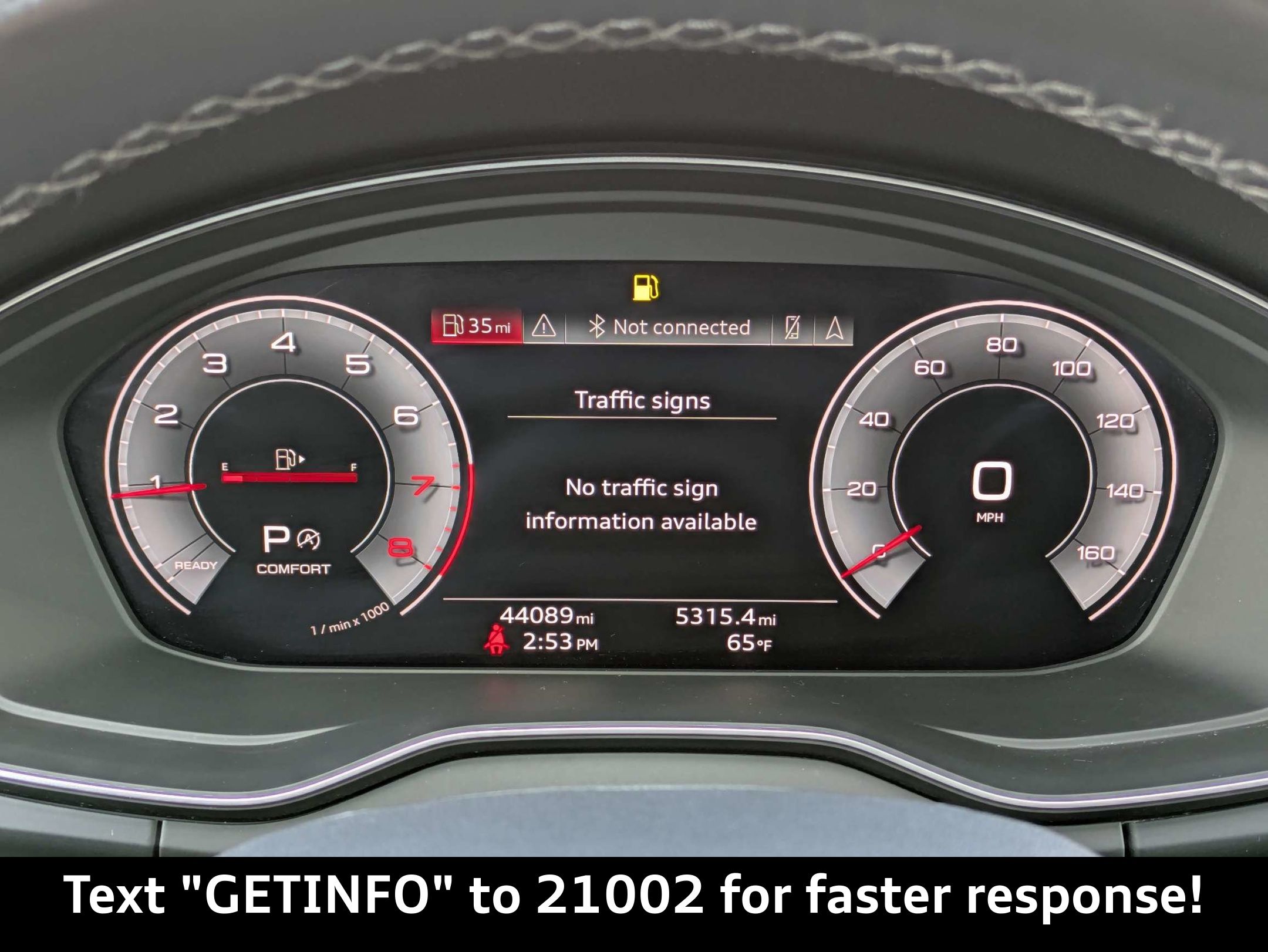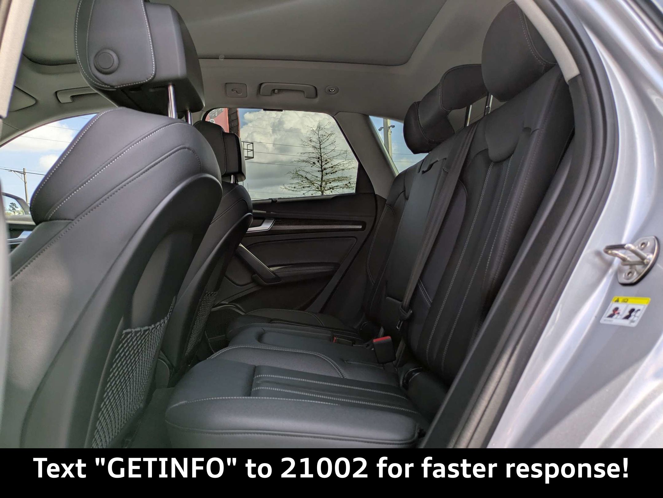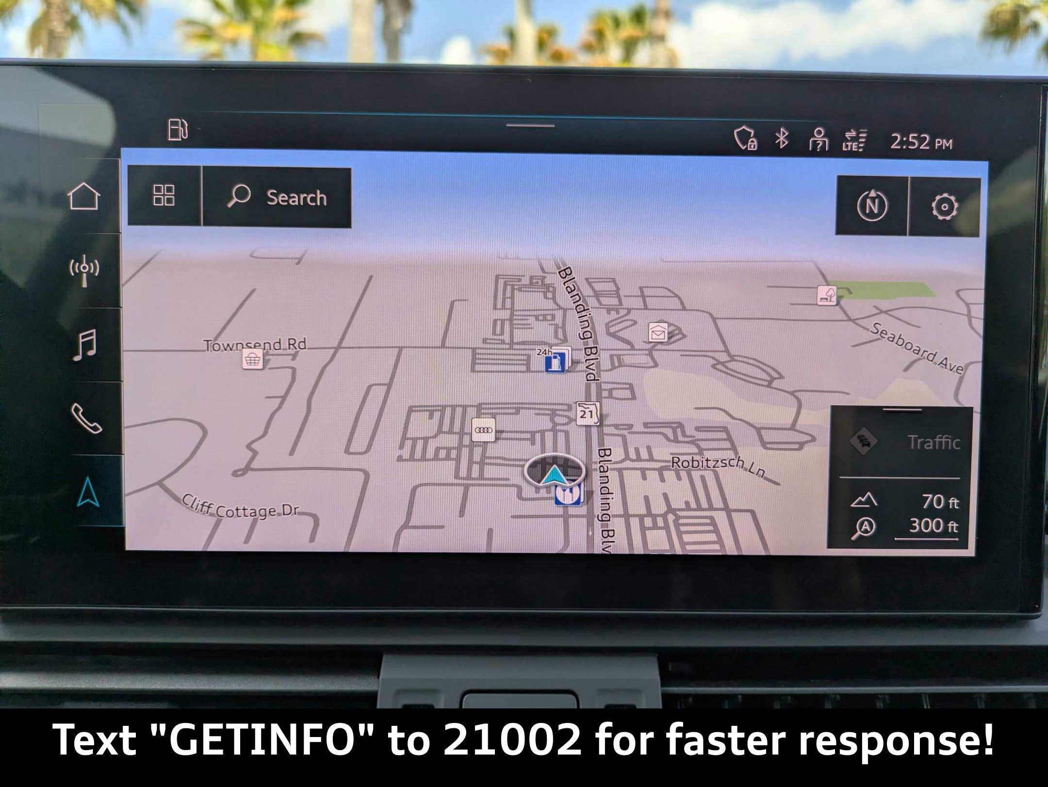 Imagine yourself gliding through the oak-lined streets of Mandarin, the sun glinting off the Florett Silver Metallic finish of your new Audi Q5. This isn't just transportation; it's a statement of refined taste and discerning choice, perfectly suited for the upscale lifestyle of Northeast Florida. The 2023 Audi Q5 Prestige is engineered for both exhilarating performance and efficient daily driving. Its 2L I-4 gasoline direct injection, DOHC, variable valve control, intercooled turbo engine delivers responsive power. The 7-Speed S Tronic Dual-Clutch Automatic Transmission provides seamless gear changes, enhancing both acceleration and fuel economy. With its All Wheel Drive system, you'll experience confident handling in various weather conditions, whether navigating a sudden downpour in Jacksonville or enjoying a weekend excursion. The Audi drive select driver selectable drivetrain mode allows you to tailor the Q5's performance to your preferences, optimizing for comfort, efficiency, or dynamic driving. Stay connected and informed with the advanced technology integrated into the 2023 Audi Q5 Prestige. The MMI Navigation Plus provides intuitive guidance to your destinations, ensuring you're always on the right path. The Audi virtual cockpit digital/analog instrumentation display offers a customizable and high-resolution view of essential vehicle information. Seamlessly integrate your smartphone with Audi smartphone interface (Apple CarPlay/Android Auto) for access to your favorite apps, music, and contacts. The Head-Up Display projects key information onto the windshield, allowing you to maintain focus on the road ahead. Enjoy crystal-clear audio through the vehicle's sound system, and keep your devices charged with the convenient wireless device charging feature. Step inside the Black leather-appointed cabin of the 2023 Audi Q5 Prestige and experience a sanctuary of comfort and sophistication. The Heated 8-Way Power Front Bucket Seats provide exceptional support and adjustability, ensuring a comfortable driving position for any journey. The Ventilated Front Sport Seats w/4-Way Power Lumbar offer personalized comfort. The Automatic climate control maintains the perfect temperature, while rear passengers benefit from dedicated Rear climate control. Convenience features like Power Liftgate and Remote keyless entry add ease to your daily routine. With the Power Adjustable Steering Column, finding your ideal driving position is effortless. The Leather Shift Knob and Leatherette Covered Center Console & Door Armrests add a touch of elegance to the interior. The 2023 Audi Q5 Prestige prioritizes your safety with a suite of advanced driver-assistance technologies. The vehicle is equipped with 4-Wheel Disc Brakes and ABS Brakes for confident stopping power. Audi active lane assist helps you stay centered in your lane, reducing the risk of unintentional lane departures. Audi pre sense city forward collision mitigation provides alerts and automatic braking in critical situations. The Exterior Parking Camera Rear offers a clear view of your surroundings when backing up, while Parking sensors assist with maneuvering in tight spaces. The 2023 Audi Q5 Prestige commands attention with its sleek lines and sophisticated design. The Florett Silver Metallic paint enhances its elegant profile. The 20' 5-Arm Design Wheels add a touch of sporty flair, while the Panoramic Sunroof fills the cabin with natural light. The Power Liftgate provides convenient access to the cargo area. The Roof rack offers additional storage options for your active lifestyle. The 2023 Audi Q5 Prestige is equipped with a range of premium features designed to elevate your driving experience: Audi Orange Park is conveniently located to serve discerning clients from Saint Johns, Fleming Island, Mandarin, and the greater Jacksonville area. We're just a short drive away at 7230 Blanding Blvd, Jacksonville, FL 32244. Visit Audi Orange Park today to experience the 2023 Audi Q5 Prestige firsthand. Call us at (904) 565-4000 to schedule a test drive or discuss financing options. You can also apply for credit online or value your trade before you arrive. We look forward to welcoming you! Get Directions to Audi Orange Park. Build Codes: WPD | DMEM | SIR3M | HSTEER | KEY | MIRROR | WPT | MATRIX | 3FU | BANG | TOPV | COLUMN | STEER | BOX | INLP | LANE | PARK | GLASS | HREAR | HCCUP | JAM | PIT | SIGN | CONSOL | HEADUP | PPZ | MSUN | NONST | 98N | NAV | APRIME | 53V | NONTR1 | 7TC | AY | STDAX | STDEN | STDGV | STDRD | STDTM2023 Audi Q5 Prestige: Experience Elevated Living