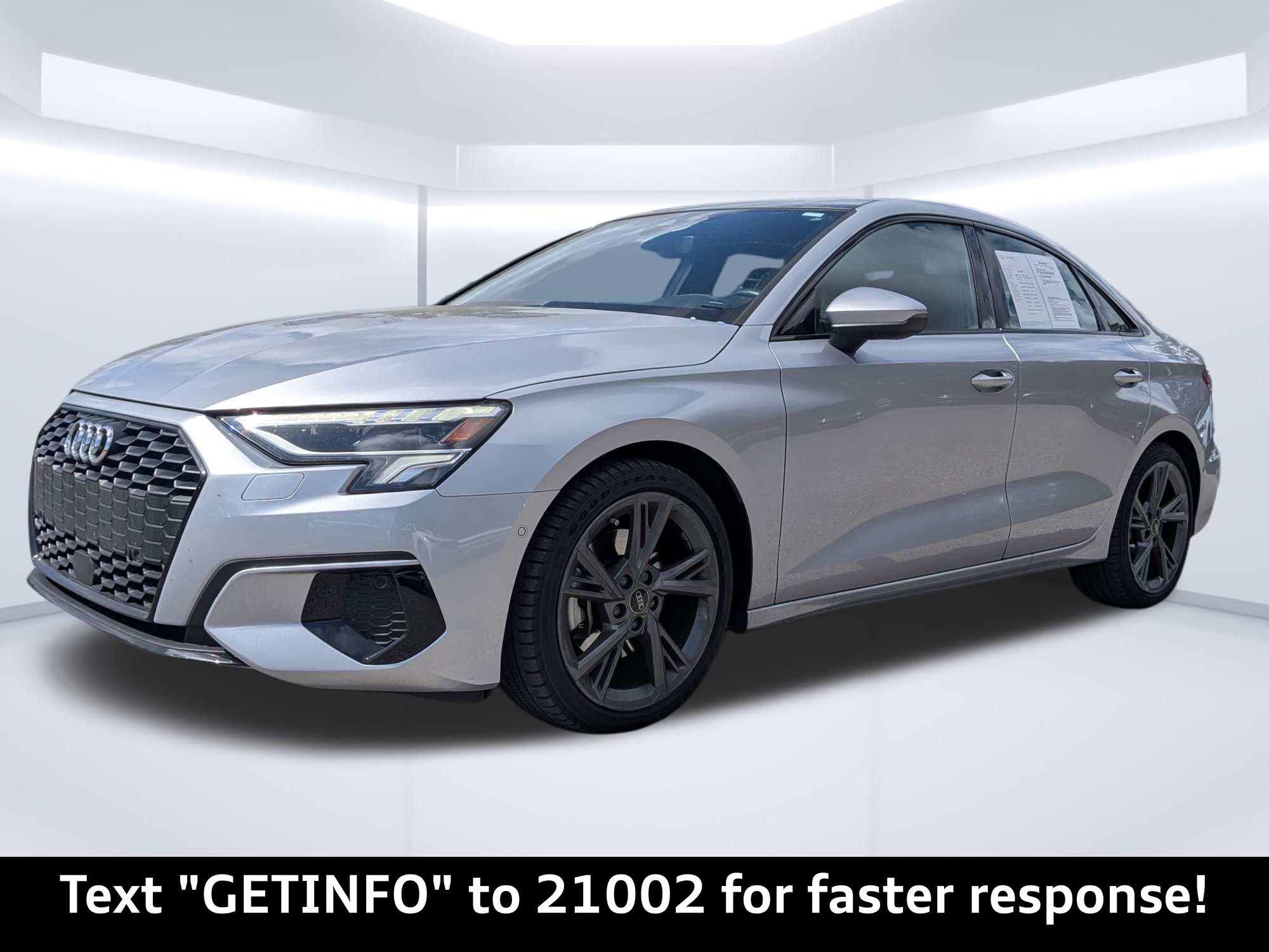 Imagine yourself cruising down the oak-lined streets of Mandarin, the sun glinting off the sleek silver metallic finish of your new Audi A3. Whether it's a quick trip to the shops or a leisurely drive along the St. Johns River, this sedan offers a refined driving experience tailored to your lifestyle. Experience the perfect blend of luxury and performance in this meticulously designed vehicle. The 2024 Audi A3 Premium Plus is engineered to deliver a dynamic and efficient driving experience. Under the hood lies a spirited 2.0L I-4 turbocharged engine, producing 201 horsepower, providing ample power for both city streets and highway cruising. Paired with a responsive 7-speed S tronic automatic transmission, gear changes are seamless and quick, enhancing the overall driving pleasure. The front-wheel-drive configuration ensures confident handling, while the Audi drive select system allows you to tailor the car's driving dynamics to your preferences, whether you're seeking maximum fuel efficiency or a more engaging ride. The Sport suspension (-15mm ride height) offers a lowered stance and enhanced handling for those who enjoy a more spirited driving experience. The start-stop engine function helps conserve fuel during city driving, making it an efficient choice for navigating Jacksonville's urban landscape. Stay connected and entertained on every journey with the advanced technology features of the Audi A3 Premium Plus. The heart of the infotainment system is the MMI w/10.1in Touchscreen Display, providing intuitive control over navigation, audio, and vehicle settings. Seamlessly integrate your smartphone with wireless Apple CarPlay and wired Android Auto, allowing you to access your favorite apps, music, and contacts on the go. The Audi phone box light with wireless charging keeps your devices powered up without the need for cables. Enjoy immersive audio through the premium sound system, and stay informed with real-time traffic updates via INRIX XD Traffic. The full gauge cluster screen offers customizable displays, providing essential driving information at a glance. Step inside the Audi A3 Premium Plus and experience a world of refined comfort and sophisticated design. The leather front seat upholstery provides a luxurious feel, while the heated front seats offer warmth and comfort during cooler mornings. The dual-zone front climate control system allows you and your passenger to set your preferred temperatures, ensuring a comfortable environment for everyone. The power moonroof brings natural light into the cabin, creating an open and airy atmosphere. With features like memory settings for the driver's seat and mirrors, you can easily find your ideal driving position. The 40-20-40 folding rear seats provide flexibility for carrying cargo, making it perfect for weekend getaways. Your safety is paramount, and the Audi A3 Premium Plus is equipped with a comprehensive suite of advanced safety and driver assistance features. The adaptive cruise assist with lane guidance helps maintain a safe following distance and keeps you centered in your lane on the highway. Audi side assist blind spot warning alerts you to vehicles in your blind spots, while the rear cross traffic assist helps prevent collisions when backing up. The exterior parking camera rear provides a clear view of your surroundings when parking, and the automatic vehicle parking system can assist with maneuvering into tight spaces. With features like automatic emergency braking and a comprehensive airbag system, you can drive with confidence knowing that you and your passengers are well-protected. The Audi A3 Premium Plus boasts a sleek and modern exterior design that exudes sophistication and style. The silver metallic paint finish highlights the car's elegant lines, while the black optic sport package adds a touch of sporty aggression. The 18-inch 5-double-spoke-V design wheels with a bi-color finish enhance the car's visual appeal. The LED headlights provide excellent visibility, while the LED daytime running lights add a distinctive touch. The power-folding, auto-dimming exterior mirrors with memory offer added convenience and functionality. The standard trunk lid provides a clean and understated look. Here are some standout features that make the 2024 Audi A3 Premium Plus a truly exceptional sedan: Audi Orange Park is conveniently located at 7230 Blanding Blvd, Jacksonville, FL 32244, easily accessible from Saint Johns, Fleming Island, and the surrounding areas. We invite you to visit our showroom to experience the 2024 Audi A3 Premium Plus firsthand. Call us at (904) 565-4000 to schedule a test drive, discuss financing options, or get a trade-in value for your current vehicle. Our friendly and knowledgeable team is here to help you find the perfect Audi to fit your lifestyle. You can also apply for credit online and explore our inventory. We look forward to welcoming you to Audi Orange Park! Build Codes: WPD | INMIRR | SIDE | MEMORY | GARAGE | SIRIUS | PHONE | EXTMIR | KEY | PARK | WPS | INLAY | LEDINT | CRUISE | 98X | BLKEXT | NONWL | SPORT | NONTR2024 Audi A3 Premium Plus 40 TFSI Front-Wheel Drive S tronic: Elevate Your Drive