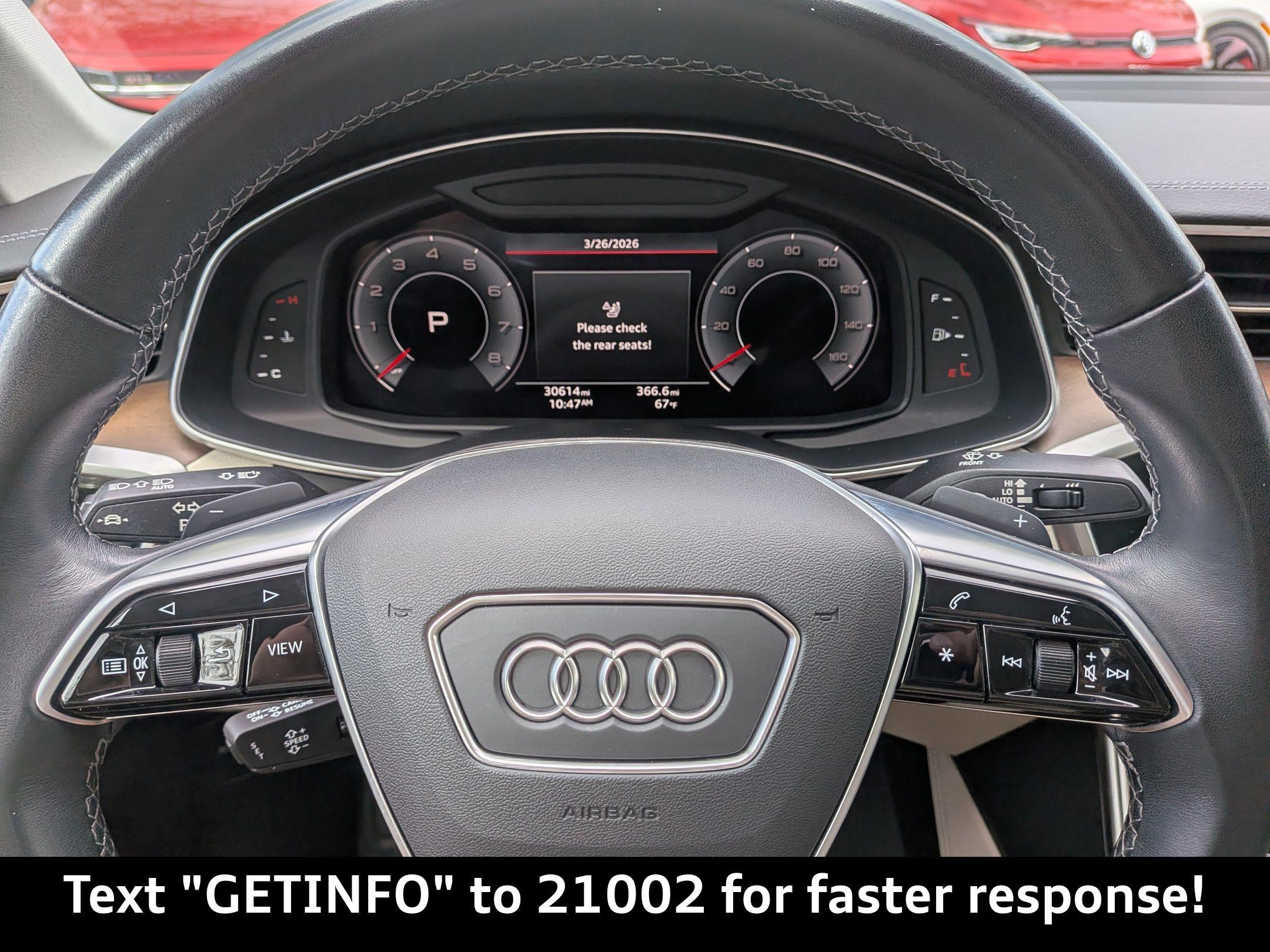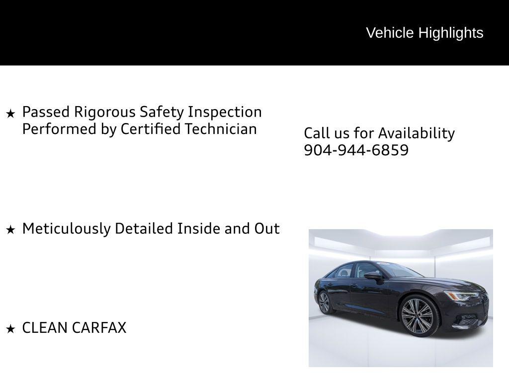 Imagine yourself cruising down the oak-lined streets of Mandarin, FL, the sun glinting off the sleek, Brown Metallic finish of your new Audi A6 Sedan. Whether you're heading to a riverside restaurant or enjoying a leisurely drive, the A6 effortlessly blends luxury and performance, making every journey a memorable experience in Jacksonville. The 2024 Audi A6 Sedan Premium Plus is engineered to deliver a refined driving experience. Its 2L I-4 gasoline direct injection engine with 261HP provides ample power for both daily commutes and weekend getaways. The 7-speed DSG auto-shift manual transmission ensures smooth and responsive gear changes, while the All Wheel Drive system offers enhanced traction and stability, perfect for navigating varied road conditions around Fleming Island, FL. The Audi drive select feature allows you to tailor the driving experience to your preferences, whether you desire a sporty feel or a more relaxed ride. The Sport Suspension (-20 mm Ride Height) enhances handling, providing a more engaging connection to the road. The Auto stop-start engine helps to improve fuel efficiency, while the Engine oil cooler and Transmission oil cooler ensure optimal performance even under demanding conditions. Stay connected and entertained with the advanced technology features of the Audi A6 Sedan. The Audi virtual cockpit plus presents critical driving information on a vibrant 12.30-inch full gauge cluster screen, allowing you to keep your eyes on the road. The MMI touch response primary monitor touchscreen offers intuitive control over vehicle functions, while the Audi connect NAV & PLUS integrated navigation system with voice activation ensures you always find the best route. Enjoy seamless smartphone integration with Audi smartphone interface w/wireless Apple CarPlay & Android Auto smart device wireless mirroring. The Wireless Phone Charging Pad keeps your devices powered up on the go, and the Bang & Olufsen Premium Sound System w/3D Sound delivers an immersive audio experience. With 4 USB ports and Bluetooth wireless audio streaming, you'll always have access to your favorite music and content. Voice commands are made easy with the Voice activated audio controls. Step inside the Audi A6 Sedan and experience a world of comfort and sophistication. The Leather front seat upholstery in Pearl Beige provides a luxurious and inviting atmosphere. The Power driver seat and Power passenger seat offer customizable support with power reclining, lumbar support, cushion tilt, fore/aft control, and height adjustable control. The Heated Front Seats and Heated steering wheel provide warmth and comfort during cooler mornings. The Automatic climate control and Rear climate control system with separate controls ensure that all passengers remain comfortable, while the Power moonroof brings in natural light and fresh air. Enjoy added convenience with features like Memory settings for the door mirrors and steering wheel, Power door locks with 2 stage unlocking, and Remote keyless entry. The Leather steering wheel and Leather Shift Knob add a touch of elegance, and the LED Interior Lighting Plus Package creates a welcoming ambiance. The Audi A6 Sedan prioritizes your safety with a comprehensive suite of advanced safety features. 4-Wheel Disc Brakes and ABS Brakes provide reliable stopping power. Audi side assist blind spot warning and Lane departure warning help you stay aware of your surroundings. The Audi adaptive cruise assist (ACA) cruise control with stop and go and Adaptive Cruise Assist w/Lane Guidance make highway driving more relaxed and confident. Audi pre sense front forward collision mitigation and Audi pre sense rear collision warning can help prevent or mitigate potential collisions. The Top View Camera System w/Virtual 360 View provides a bird's-eye view of your vehicle, making parking and maneuvering in tight spaces easier than ever. The Brown Metallic exterior of the Audi A6 Sedan exudes sophistication and style. The Wheels: 20in Bicolor Finish 5-V-Spoke-Design add a touch of sportiness, while the Matrix-Design LED Headlights provide exceptional visibility and a distinctive look. The Power moonroof enhances the open-air feel of the cabin. The Auto High-beam Headlights automatically adjust to oncoming traffic, ensuring optimal illumination. The Black grille and Black side window trim create a sleek and modern aesthetic. This 2024 Audi A6 Sedan Premium Plus offers a compelling blend of luxury, performance, and technology. Audi Orange Park is conveniently located for residents of Saint Johns, FL, Orange Park, FL and surrounding areas. We invite you to visit us at 7230 Blanding Blvd, Jacksonville, FL 32244 to experience the 2024 Audi A6 Sedan Premium Plus firsthand. Get Directions to Audi Orange Park. Our friendly and knowledgeable team is here to answer your questions and help you find the perfect vehicle to fit your lifestyle. Call us at (904) 565-4000 to schedule a test drive, or apply for credit online today. You can also Value Your Trade. We look forward to seeing you soon at Audi Orange Park! Build Codes: 98C | PHCHG | HTDSTR | CRUISE | AUDSDE | TOPCAM | WPS | AMBLGT | BANG | CNSTCH | HDLGT | 98Z | BLKEXT | NONWL | SPTSP | NONTR2024 Audi A6 Sedan Premium Plus 45 TFSI quattro S tronic: Experience Elevated Driving