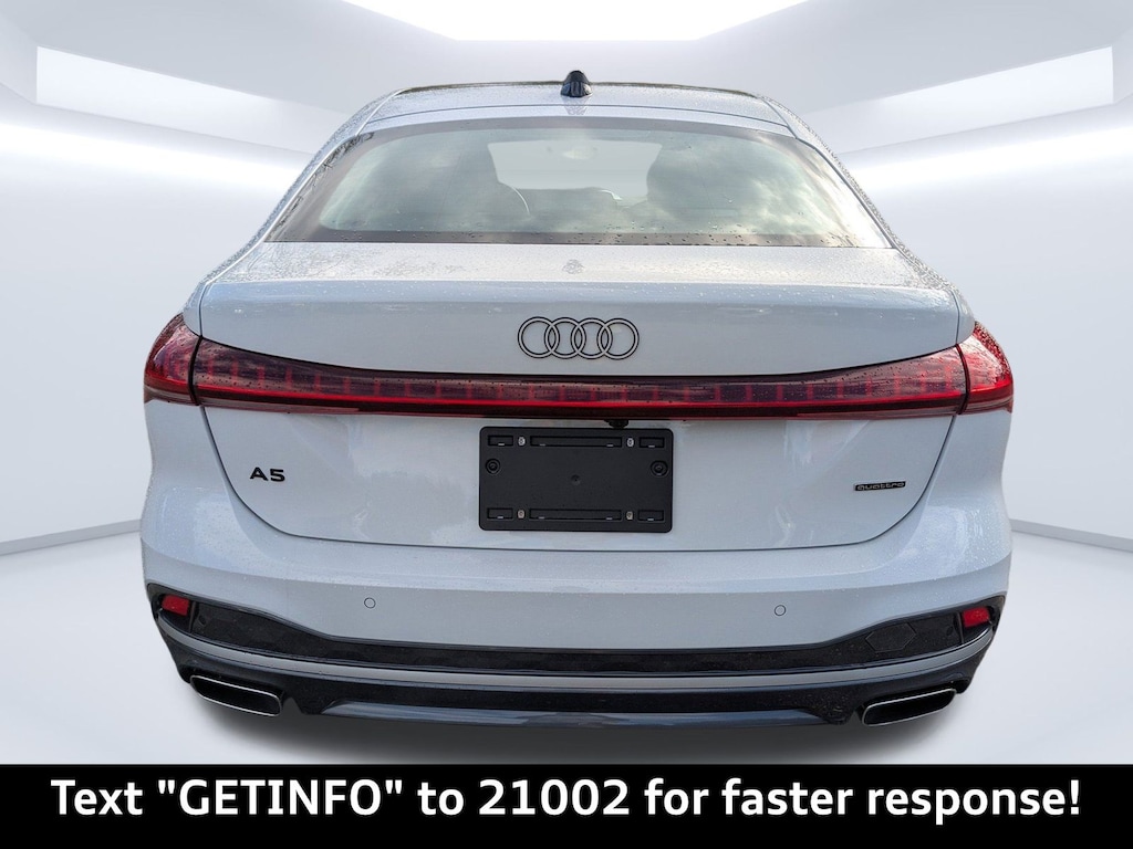 Glacier White Metallic 2025 Audi All-new A5 Premium Plus quattro quattro 7-Speed Automatic S tronic 2.0L 4-Cylinder TFSI Passed Rigorous Safety Inspection Performed by Certified Technician, Meticulously Detailed Inside and Out, 19'' Wheel Package, Adaptive Cruise Assist, Animation for Taillights, Bang & Olufsen Sound System w/3D Sound, Beige Warm Weather Package, Brown Applewood Natural Wood Inlays, Dynamic Interaction Light, Head-Up Display, Heated & Ventilated Front Sport Seats, Heated Steering Wheel w/Hands-On Detection, LED Headlights Plus w/Digital DRL, LED Interior Lighting Pro Package, Manual Rear Side Window Sunshades, Panoramic Glass Roof w/Variable Light Control, Park Assist Plus, Premium Plus, Top View Camera System, USB Power Delivery (2x60W Front & 2x100W Rear), Wheels: 19'' 5-Arm-Aero Design Bi-Color Finish, 10 Speakers, 21'' Alloy wheels, 4-Wheel Disc Brakes, ABS brakes, Air Conditioning, Anti-whiplash front head restraints, Auto High-beam Headlights, Auto-dimming door mirrors, Auto-dimming Rear-View mirror, Automatic temperature control, Brake assist, Bumpers: body-color, Compass, Delay-off headlights, Driver door bin, Driver vanity mirror, Dual front impact airbags, Dual front side impact airbags, Electronic Stability Control, Emergency communication system: Audi connect CARE, Exterior Parking Camera Rear, Four wheel independent suspension, Front anti-roll bar, Front Bucket Seats, Front Center Armrest, Front dual zone A/C, Front fog lights, Front reading lights, Garage door transmitter: HomeLink, Genuine wood dashboard insert, Genuine wood door panel insert, Heated door mirrors, Heated Front Bucket Seats, Heated front seats, Illuminated entry, Knee airbag, Leather Seating Surfaces, Leather steering wheel, Low tire pressure warning, Memory seat, Navigation system: MMI Navigation plus, Occupant sensing airbag, Outside temperature display, Overhead airbag, Overhead console, Panic alarm, Passenger door bin, Passenger vanity mirror, Power adjustable front head restraints, Power door mirrors, Power driver seat, Power Liftgate, Power passenger seat, Power steering, Power windows, Radio data system, Radio: Audi Sound System, Rain sensing wipers, Rear air conditioning, Rear anti-roll bar, Rear reading lights, Rear seat center armrest, Rear window defroster, Remote keyless entry, Security system, Speed control, Speed-sensing steering, Speed-Sensitive Wipers, Split folding rear seat, Steering wheel mounted audio controls, Tachometer, Telescoping steering wheel, Tilt steering wheel, Traction control, Trip computer, Turn signal indicator mirrors, Variably intermittent wipers, Wheels: 18'' 5-Arm-Twist Design, CLEAN CARFAX, 19'' Wheel Package, Adaptive Cruise Assist, Animation for Taillights, Bang & Olufsen Sound System w/3D Sound, Beige Warm Weather Package, Brown Applewood Natural Wood Inlays, Dynamic Interaction Light, Head-Up Display, Heated & Ventilated Front Sport Seats, Heated Steering Wheel w/Hands-On Detection, LED Headlights Plus w/Digital DRL, LED Interior Lighting Pro Package, Manual Rear Side Window Sunshades, Panoramic Glass Roof w/Variable Light Control, Park Assist Plus, Premium Plus, Top View Camera System, USB Power Delivery (2x60W Front & 2x100W Rear), Wheels: 19'' 5-Arm-Aero Design Bi-Color Finish.22/31 City/Highway MPG