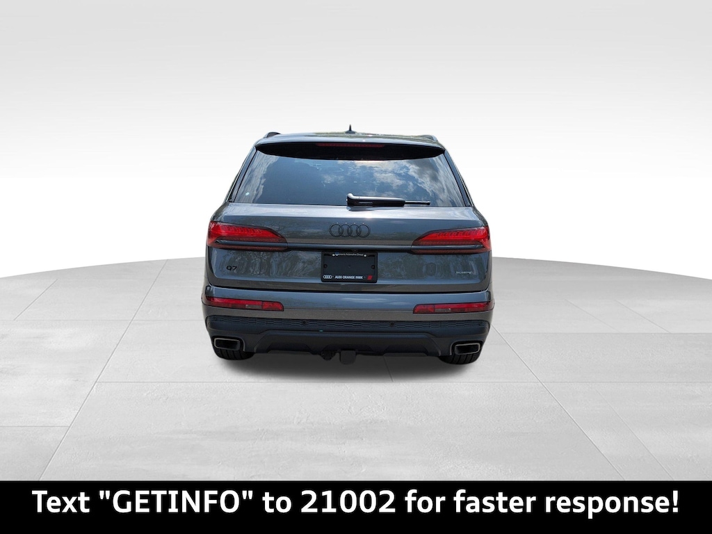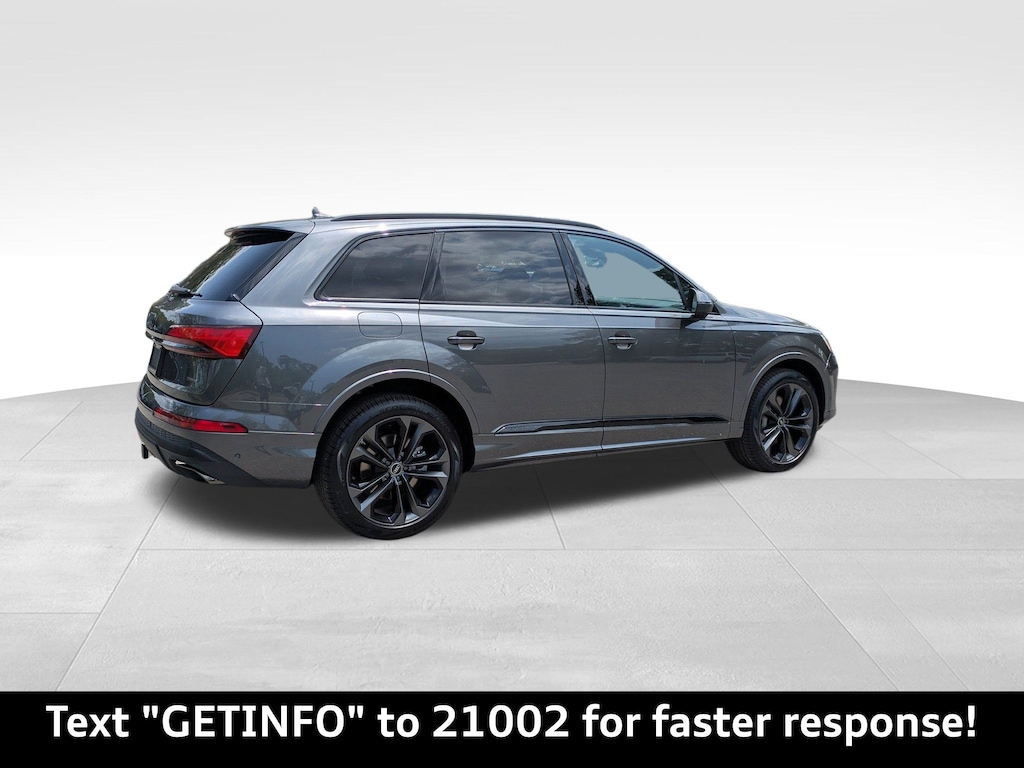 Gray 2025 Audi Q7 Premium Plus quattro quattro 8-Speed Automatic with Tiptronic 3.0L TFSI Passed Rigorous Safety Inspection Performed by Certified Technician, Meticulously Detailed Inside and Out, Navigation system: Audi MMI Navigation plus with Touch Response, Power moonroof: Panoramic, 10 Speakers, 21'' Alloy wheels, 3rd row seats: bench, 4-Wheel Disc Brakes, ABS brakes, Air Conditioning, Auto High-beam Headlights, Auto-dimming door mirrors, Auto-dimming Rear-View mirror, Automatic temperature control, Brake assist, Bumpers: body-color, Compass, Delay-off headlights, Driver door bin, Driver vanity mirror, Dual front impact airbags, Dual front side impact airbags, Electronic Stability Control, Emergency communication system: Audi connect CARE, Exterior Parking Camera Rear, Four wheel independent suspension, Front anti-roll bar, Front Bucket Seats, Front Center Armrest, Front dual zone A/C, Front fog lights, Front reading lights, Fully automatic headlights, Garage door transmitter: HomeLink, Genuine wood door panel insert, Heated door mirrors, Heated Front Bucket Seats, Heated front seats, Illuminated entry, Leather Seating Surfaces, Leather Shift Knob, Leather steering wheel, Low tire pressure warning, Memory seat, Occupant sensing airbag, Outside temperature display, Overhead airbag, Overhead console, Panic alarm, Passenger door bin, Passenger vanity mirror, Power door mirrors, Power driver seat, Power Liftgate, Power passenger seat, Power steering, Power windows, Radio data system, Radio: Audi Sound System, Rain sensing wipers, Rear air conditioning, Rear anti-roll bar, Rear fog lights, Rear reading lights, Rear seat center armrest, Rear side impact airbag, Rear window defroster, Rear window wiper, Reclining 3rd row seat, Remote keyless entry, Security system, Speed control, Speed-sensing steering, Split folding rear seat, Spoiler, Steering wheel memory, Steering wheel mounted audio controls, Tachometer, Telescoping steering wheel, Tilt steering wheel, Traction control, Trip computer, Turn signal indicator mirrors, Variably intermittent wipers, Wheels: 19'' 5-Arm-Star Design, CLEAN CARFAX, Navigation system: Audi MMI Navigation plus with Touch Response, Power moonroof: Panoramic.