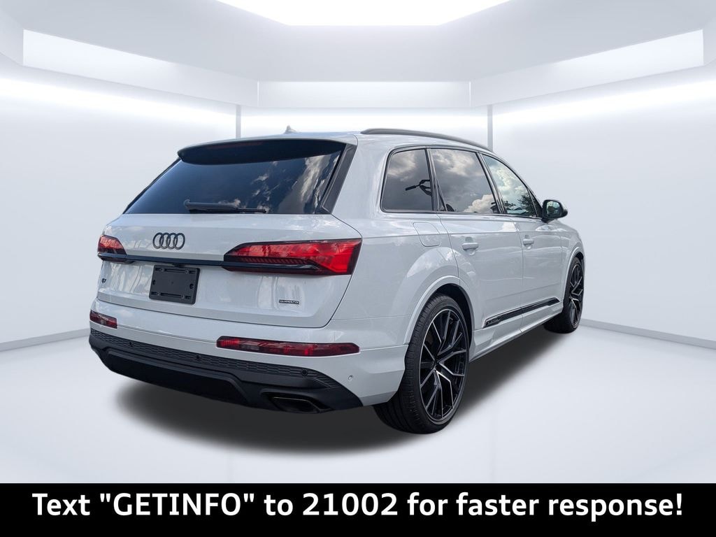 Glacier White Metallic 2025 Audi Q7 Prestige quattro quattro 8-Speed Automatic with Tiptronic 3.0L TFSI Passed Rigorous Safety Inspection Performed by Certified Technician, Meticulously Detailed Inside and Out, Animation for Headlights & Taillights, Bang & Olufsen Premium Sound System w/3D Sound, Comfort Adaptive Air Suspension, Control Buttons in Gloss Black w/Haptic Feedback, Convenience Package, Dual-Pane Acoustic Glass for Side Windows, Executive Plus Package, Four-Zone Automatic Climate Control, Front Passenger Memory Seat Function, Front Seats w/Ventilation, HD Matrix-Design LED Headlights w/Audi Laser Light, Head-Up Display, Headlight Washer System, Heated Rear Seats, Heated Steering Wheel, Illuminated Door Sills, Individual Contour Front Seats, Intersection Assist, LED Interior Lighting Package Plus, Massage Function for Front Seats, Power Soft-Closing Doors, Prestige Package, Rear Door/Side Windows & Tailgate Sunshades, Remote Park Assist Plus, Top View Camera System, Traffic Sign Recognition, Valcona/Cricket Leather Seat Trim, Wheels: 20'' 5-Double-Spoke, Wireless Phone Charging Pad, 10 Speakers, 3rd row seats: bench, 4-Wheel Disc Brakes, ABS brakes, Air Conditioning, Auto High-beam Headlights, Auto-dimming door mirrors, Auto-dimming Rear-View mirror, Automatic temperature control, Brake assist, Bumpers: body-color, Compass, Delay-off headlights, Driver door bin, Driver vanity mirror, Dual front impact airbags, Dual front side impact airbags, Electronic Stability Control, Emergency communication system: Audi connect CARE, Exterior Parking Camera Rear, Four wheel independent suspension, Front anti-roll bar, Front Bucket Seats, Front Center Armrest, Front dual zone A/C, Front fog lights, Front reading lights, Fully automatic headlights, Garage door transmitter: HomeLink, Genuine wood door panel insert, Heated door mirrors, Heated Front Bucket Seats, Heated front seats, Illuminated entry, Leather Seating Surfaces, Leather Shift Knob, Leather steering wheel, Low tire pressure warning, Memory seat, Navigation system: Audi MMI Navigation plus with Touch Response, Occupant sensing airbag, Outside temperature display, Overhead airbag, Overhead console, Panic alarm, Passenger door bin, Passenger vanity mirror, Power door mirrors, Power driver seat, Power Liftgate, Power moonroof: Panoramic, Power passenger seat, Power steering, Power windows, Radio data system, Radio: Audi Sound System, Rain sensing wipers, Rear air conditioning, Rear anti-roll bar, Rear fog lights, Rear reading lights, Rear seat center armrest, Rear side impact airbag, Rear window defroster, Rear window wiper, Reclining 3rd row seat, Remote keyless entry, Security system, Speed control, Speed-sensing steering, Split folding rear seat, Spoiler, Steering wheel memory, Steering wheel mounted audio controls, Tachometer, Telescoping steering wheel, Tilt steering wheel, Traction control, Trip computer, Turn signal indicator mirrors, Variably intermittent wipers, CLEAN CARFAX, Animation for Headlights & Taillights, Bang & Olufsen Premium Sound System w/3D Sound, Comfort Adaptive Air Suspension, Control Buttons in Gloss Black w/Haptic Feedback, Convenience Package, Dual-Pane Acoustic Glass for Side Windows, Executive Plus Package, Four-Zone Automatic Climate Control, Front Passenger Memory Seat Function, Front Seats w/Ventilation, HD Matrix-Design LED Headlights w/Audi Laser Light, Head-Up Display, Headlight Washer System, Heated Rear Seats, Heated Steering Wheel, Illuminated Door Sills, Individual Contour Front Seats, Intersection Assist, LED Interior Lighting Package Plus, Massage Function for Front Seats, Power Soft-Closing Doors, Prestige Package, Rear Door/Side Windows & Tailgate Sunshades, Remote Park Assist Plus, Top View Camera System, Traffic Sign Recognition, Valcona/Cricket Leather Seat Trim, Wheels: 20'' 5-Double-Spoke, Wireless Phone Charging Pad.