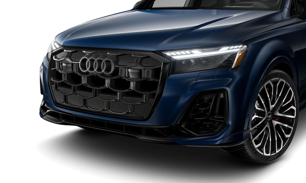 Blue 2025 Audi SQ7 Prestige quattro quattro 8-Speed Automatic with Tiptronic 4.0L V8 Turbocharged DOHC 32V LEV3-ULEV125 500hp Passed Rigorous Safety Inspection Performed by Certified Technician, Meticulously Detailed Inside and Out, 19 Speakers, 21" Alloy wheels, 3rd row seats: bench, 4-Wheel Disc Brakes, ABS brakes, Adaptive suspension, Air Conditioning, AM/FM Radio, AM/FM radio: SiriusXM w/ 360L, Auto High-beam Headlights, Auto-dimming door mirrors, Auto-dimming Rear-View mirror, Auto-leveling suspension, Automatic temperature control, Bang & Olufsen Premium Sound System, Brake assist, Bumpers: body-color, Compass, Delay-off headlights, Diamond Stitched Valcona Leather Seat Trim, Driver door bin, Driver vanity mirror, Dual front impact airbags, Dual front side impact airbags, Electronic Stability Control, Emergency communication system: Audi connect CARE, Exterior Parking Camera Rear, Four wheel independent suspension, Front anti-roll bar, Front Bucket Seats, Front Center Armrest, Front dual zone A/C, Front fog lights, Front reading lights, Fully automatic headlights, Garage door transmitter: HomeLink, Heated door mirrors, Heated front seats, Heated Front Sport Seats Plus, Heated steering wheel, Illuminated entry, Leather Shift Knob, Leather steering wheel, Low tire pressure warning, Memory seat, Navigation system: Audi MMI Navigation plus with Touch Response, Occupant sensing airbag, Outside temperature display, Overhead airbag, Overhead console, Panic alarm, Passenger door bin, Passenger vanity mirror, Power door mirrors, Power driver seat, Power Liftgate, Power moonroof: Panoramic, Power passenger seat, Power steering, Power windows, Radio data system, Rain sensing wipers, Rear air conditioning, Rear anti-roll bar, Rear dual zone A/C, Rear fog lights, Rear reading lights, Rear seat center armrest, Rear side impact airbag, Rear window defroster, Rear window wiper, Reclining 3rd row seat, Remote keyless entry, Security system, Speed control, Speed-sensing steering, Split folding rear seat, Spoiler, Steering wheel memory, Steering wheel mounted audio controls, Tachometer, Telescoping steering wheel, Tilt steering wheel, Traction control, Trip computer, Turn signal indicator mirrors, Variably intermittent wipers, Wheels: 21" 5-Double-Spoke-Design Bi-Color Finish, CLEAN CARFAX.