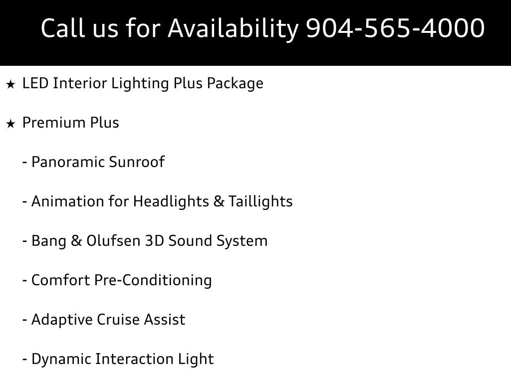 CARFAX One-Owner. Clean CARFAX. Mythos Black Metallic quattro quattro Single-Speed Automatic Electric Motor Passed Rigorous Safety Inspection Performed by Certified Technician, Meticulously Detailed Inside and Out, Adaptive Cruise Assist, Animation for Headlights & Taillights, Augmented Reality Head-Up Display, Bang & Olufsen 3D Sound System, Comfort Pre-Conditioning, Dynamic Interaction Light, Headlight Washers, Heated Rear Seats, Heated Steering Wheel, LED Headlights Plus, LED Interior Lighting Plus Package, Panoramic Sunroof, Premium Plus, Top View Camera System, USB Power Delivery (2x60W Front & 2x100W Rear), 10 Speakers, 21" Alloy wheels, 4-Wheel Disc Brakes, ABS brakes, Air Conditioning, Audi Guard Protection Kit, Auto High-beam Headlights, Auto-dimming door mirrors, Auto-dimming Rear-View mirror, Automatic temperature control, Brake assist, Bumpers: body-color, Compass, Delay-off headlights, Driver door bin, Driver vanity mirror, Dual front impact airbags, Dual front side impact airbags, Electronic Stability Control, Emergency communication system: Audi connect CARE (limited time subscription - acceptance of terms required), Exterior Parking Camera Rear, Four wheel independent suspension, Front anti-roll bar, Front Bucket Seats, Front Center Armrest, Front dual zone A/C, Front reading lights, Fully automatic headlights, Garage door transmitter: HomeLink, Genuine wood dashboard insert, Heated door mirrors, Heated Front Seats, Heated front seats, Illuminated entry, Leather Seating Surfaces, Leather steering wheel, Low tire pressure warning, Memory seat, Navigation system: MMI Navigation plus, Occupant sensing airbag, Outside temperature display, Overhead airbag, Overhead console, Panic alarm, Passenger door bin, Passenger vanity mirror, Power door mirrors, Power driver seat, Power Liftgate, Power passenger seat, Power steering, Power windows, Radio data system, Radio: Audi Sound System, Rain sensing wipers, Rear air conditioning, Rear anti-roll bar, Rear reading lights, Rear seat center armrest, Rear side impact airbag, Rear window defroster, Rear window wiper, Remote keyless entry, Security system, Speed control, Speed-sensing steering, Split folding rear seat, Spoiler, Steering wheel memory, Steering wheel mounted audio controls, Telescoping steering wheel, Tilt steering wheel, Traction control, Trip computer, Turn signal indicator mirrors, Variably intermittent wipers, Wheels: 19" 5-Double-Spoke Dynamic Design, CLEAN CARFAX, Adaptive Cruise Assist, Animation for Headlights & Taillights, Augmented Reality Head-Up Display, Bang & Olufsen 3D Sound System, Comfort Pre-Conditioning, Dynamic Interaction Light, Headlight Washers, Heated Rear Seats, Heated Steering Wheel, LED Headlights Plus, LED Interior Lighting Plus Package, Panoramic Sunroof, Premium Plus, Top View Camera System, USB Power Delivery (2x60W Front & 2x100W Rear).